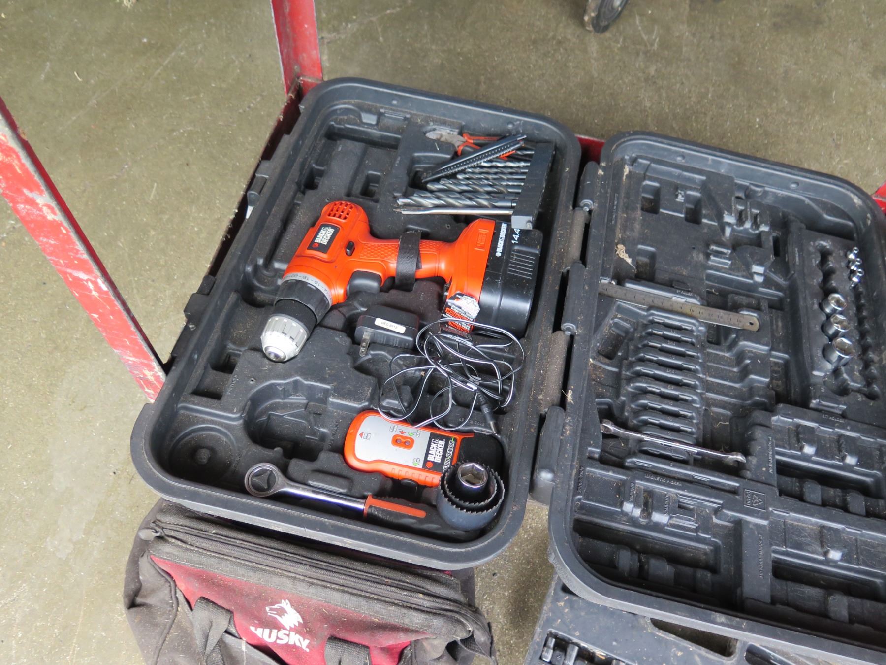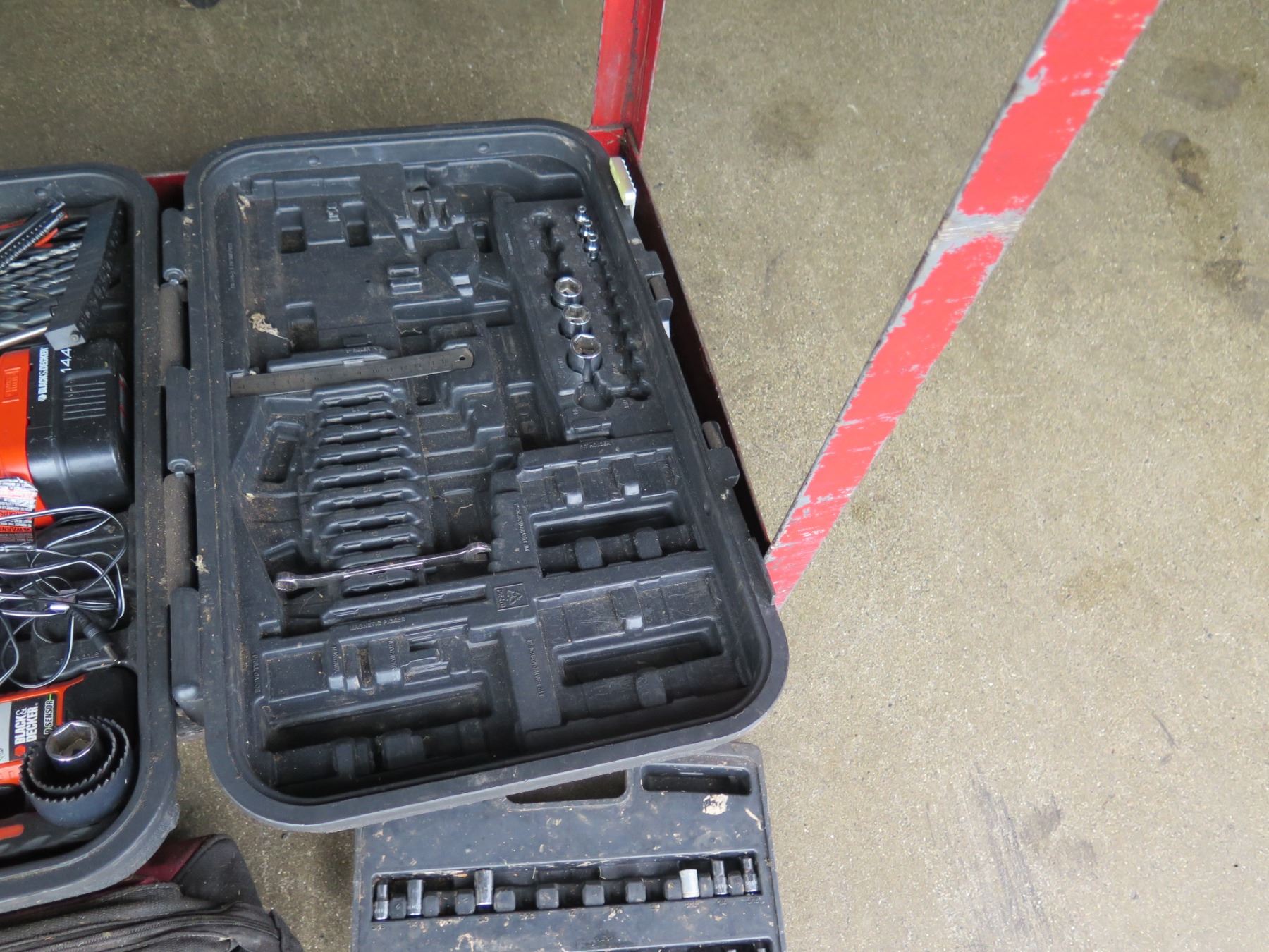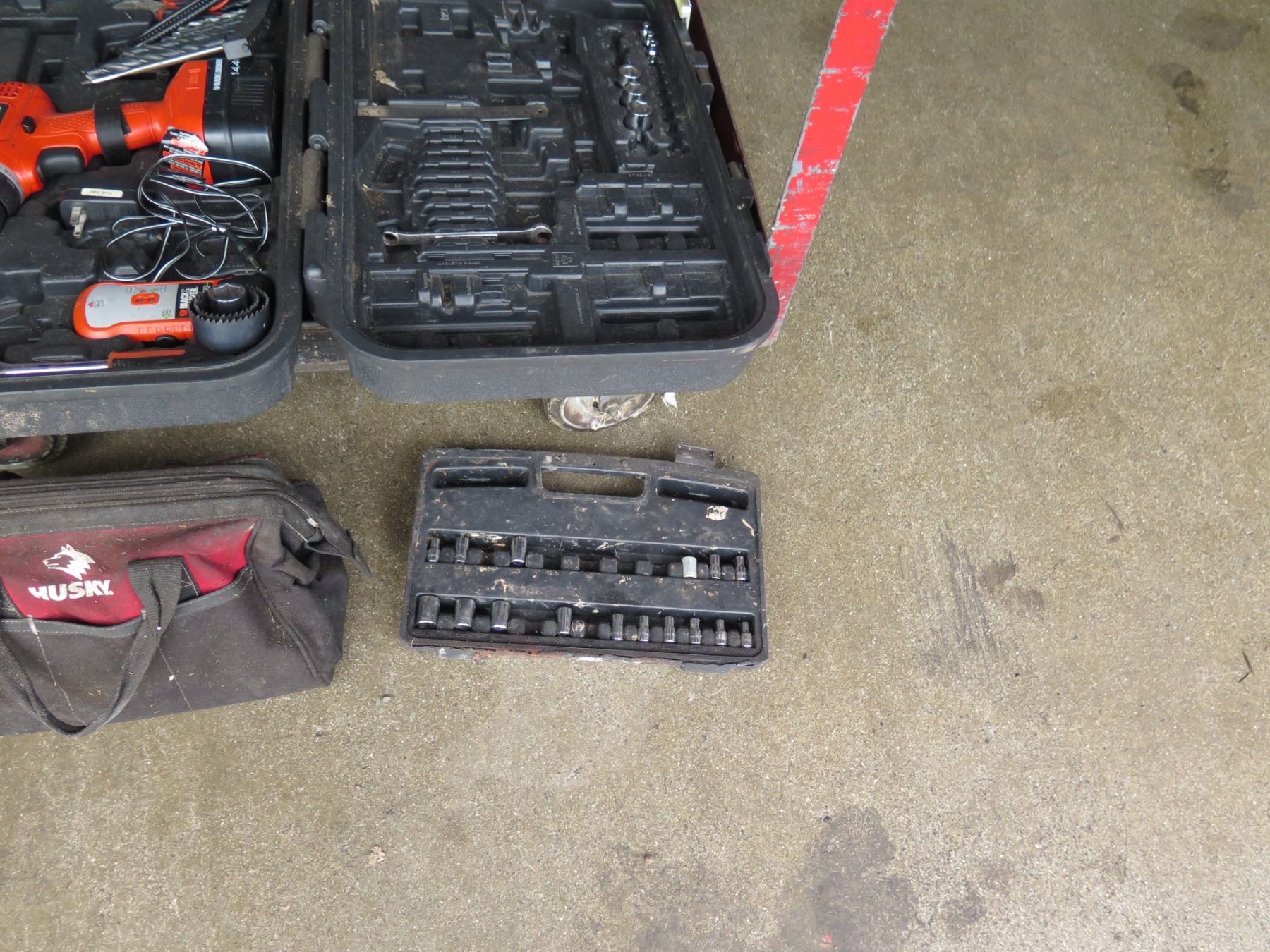 Rolling Metal Cart w/ Undershelf & Contents: Tools, Jumper Cables, Strapping, etc