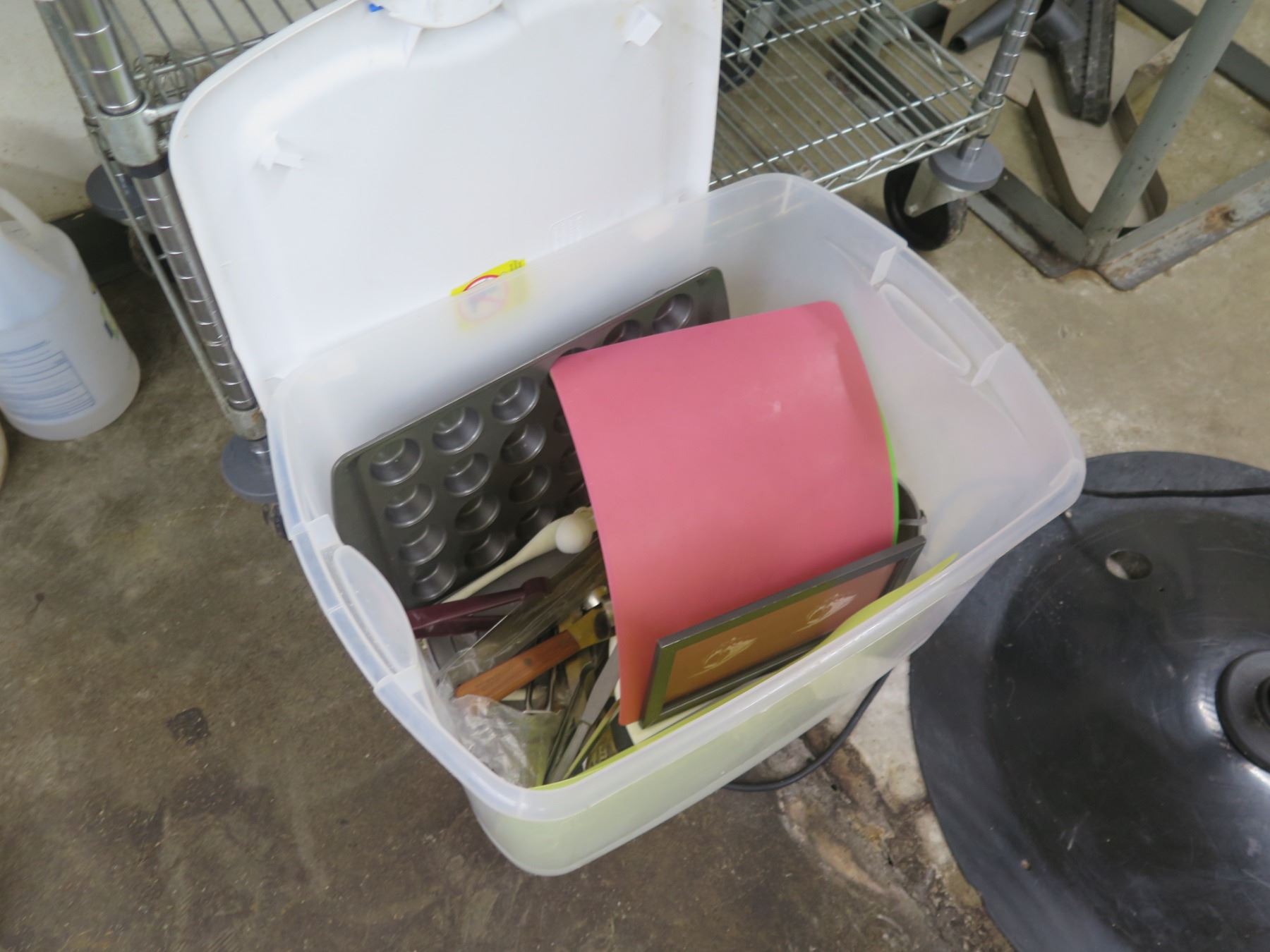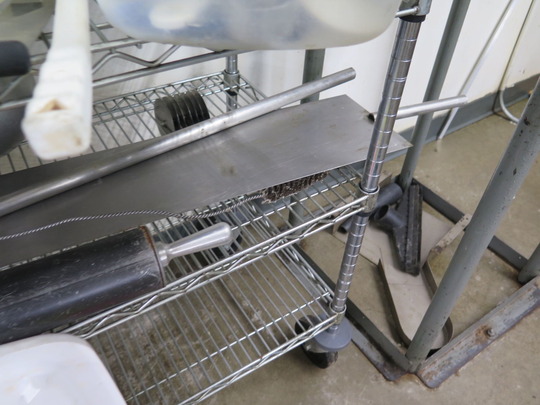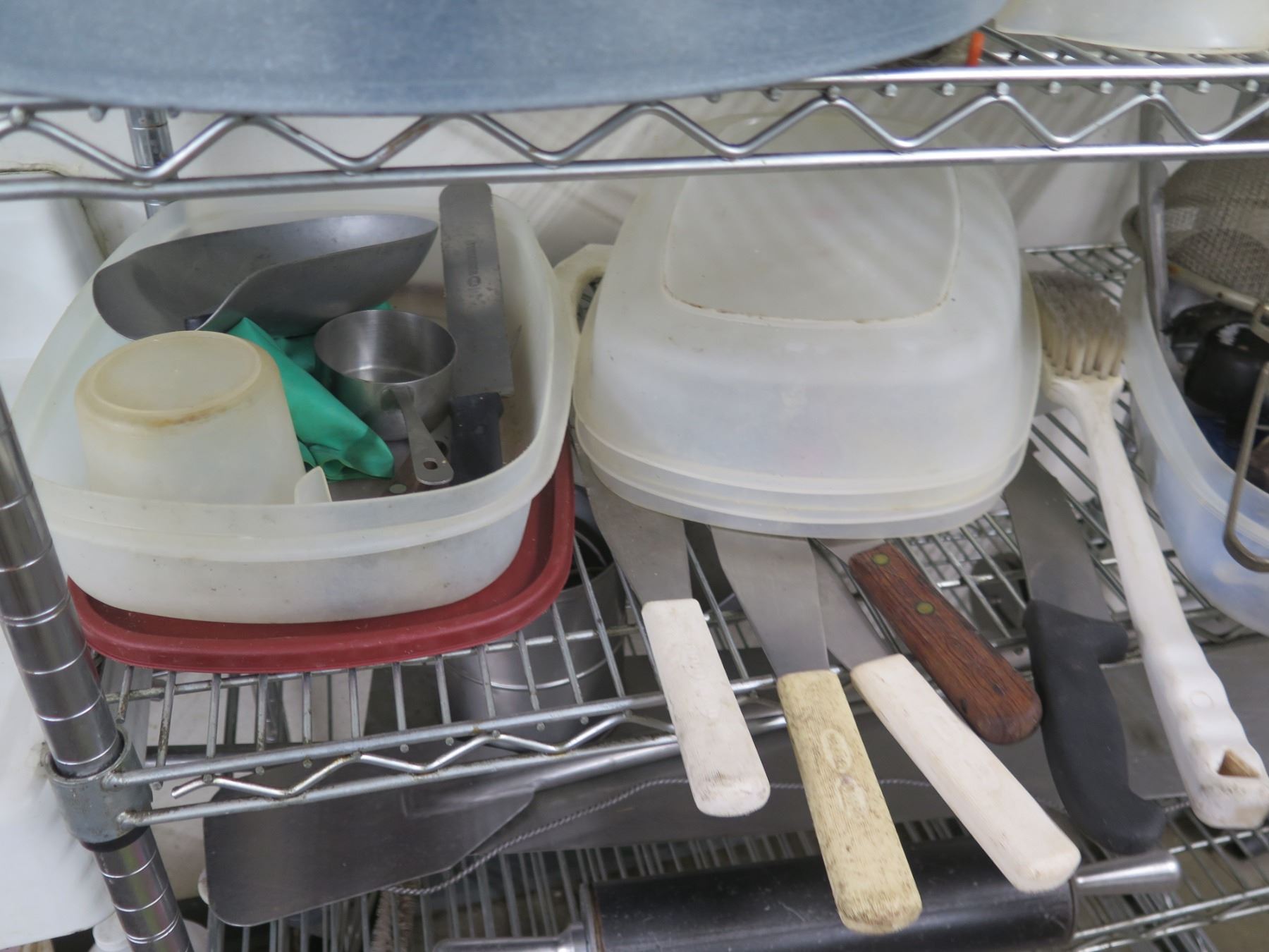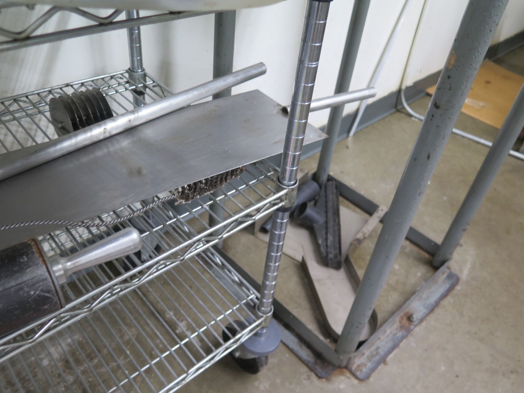 Rolling Metal Mesh 4-Tier Adjustable Shelf & Contents: Sifters, Utensils, etc
