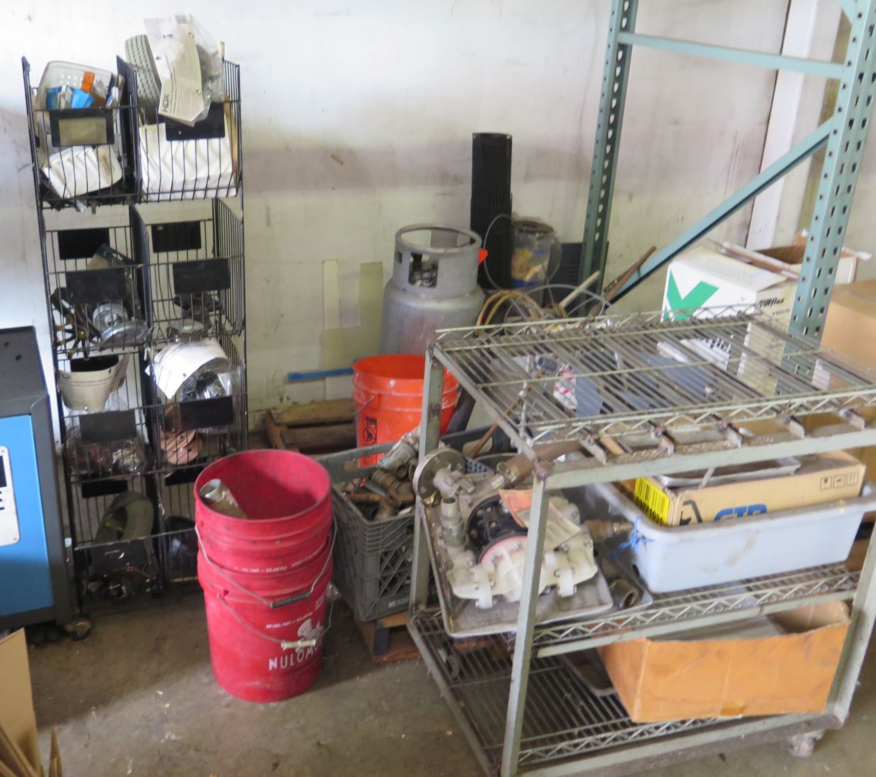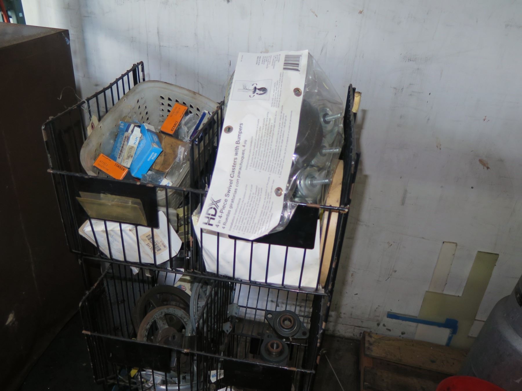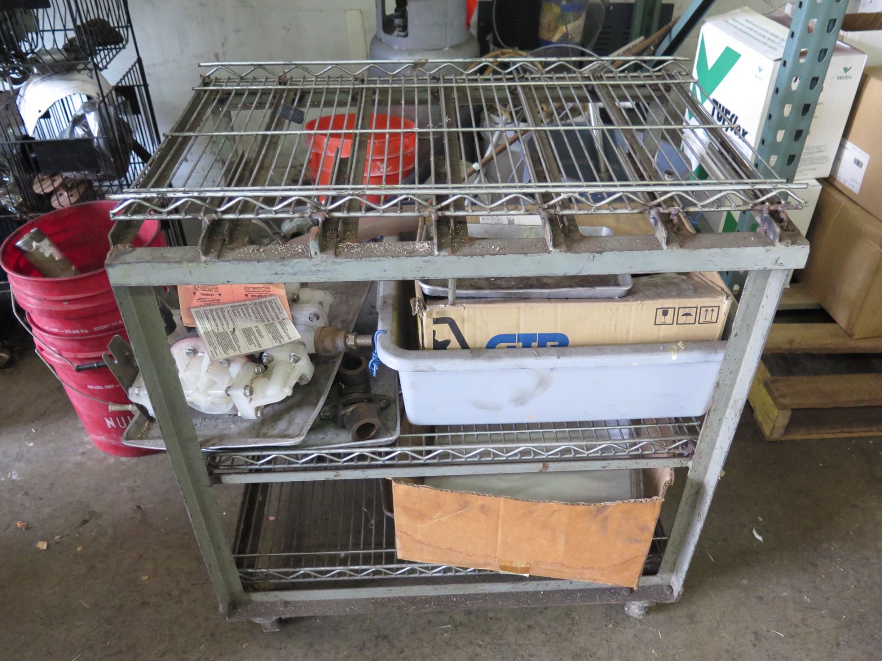 Rolling Metal Mesh Cart, Organizer Shelf & Contents: Hardware, Parts, Sealing Tape, etc