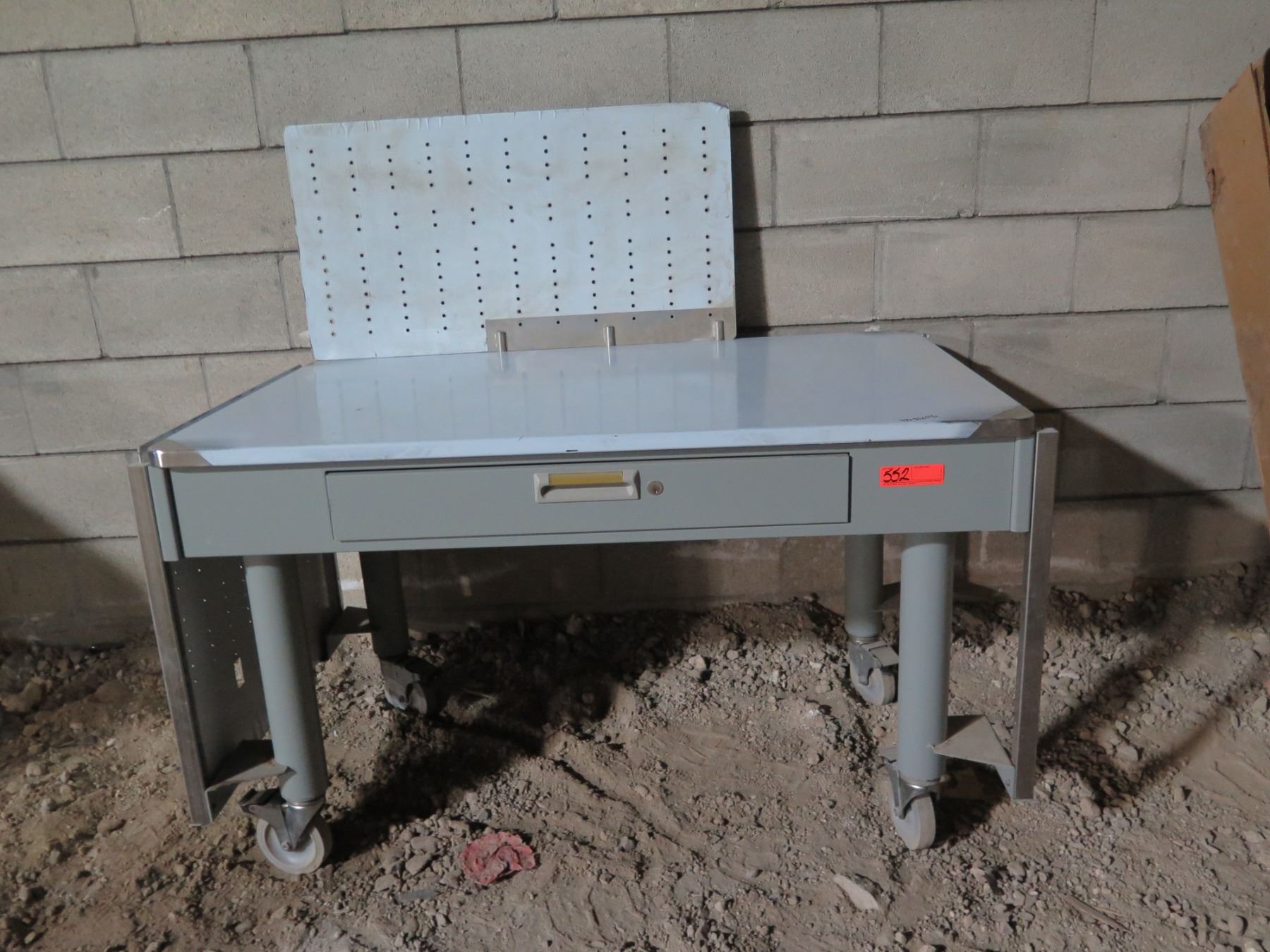 Rolling Metal Table w/ Drawer & Plastic Holed Sheet 48"x30"x29.5"H