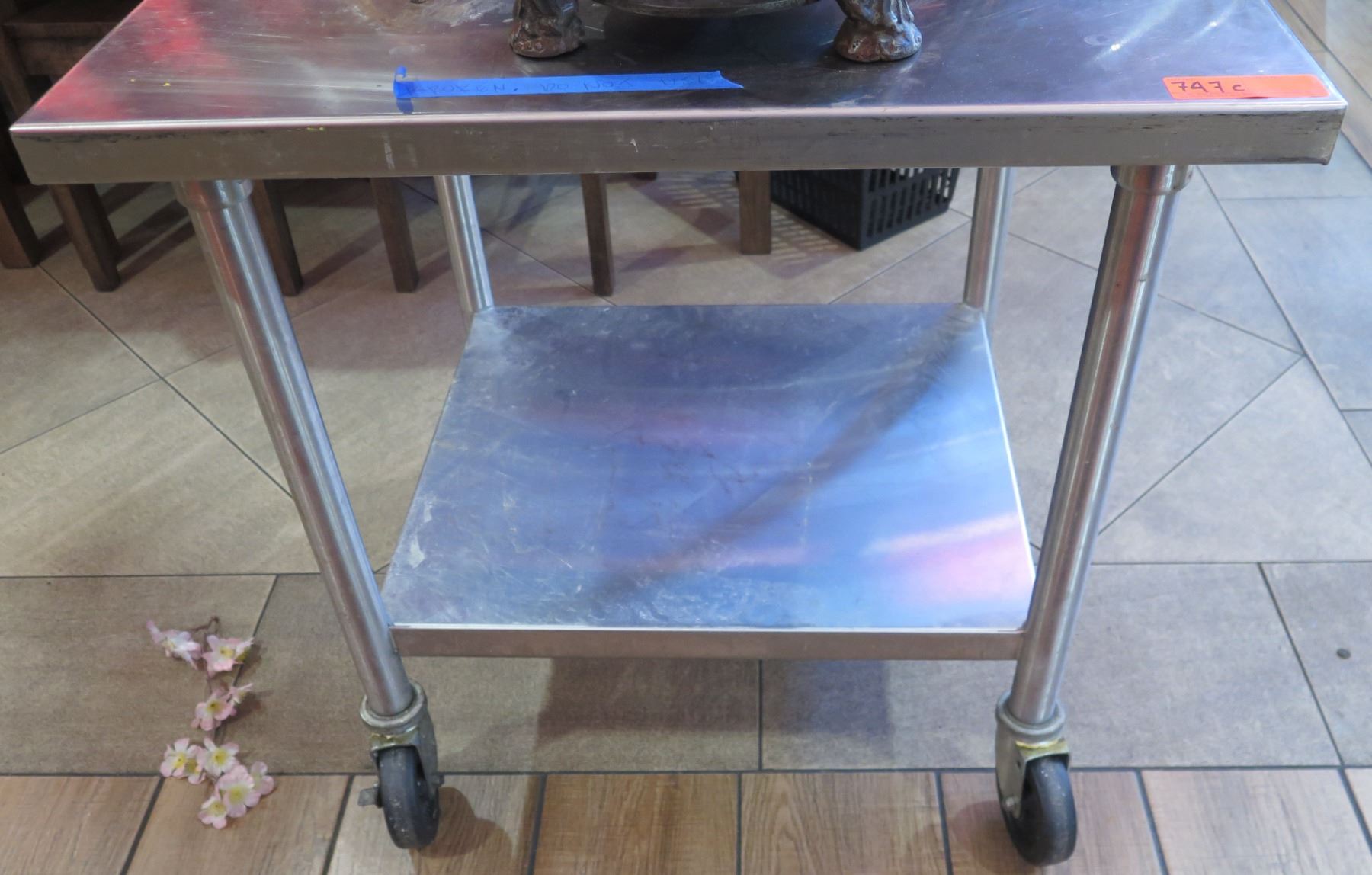 Rolling Metal Work Table w/ Undershelf 30"x27"x30"H (Wheels Need Repair)