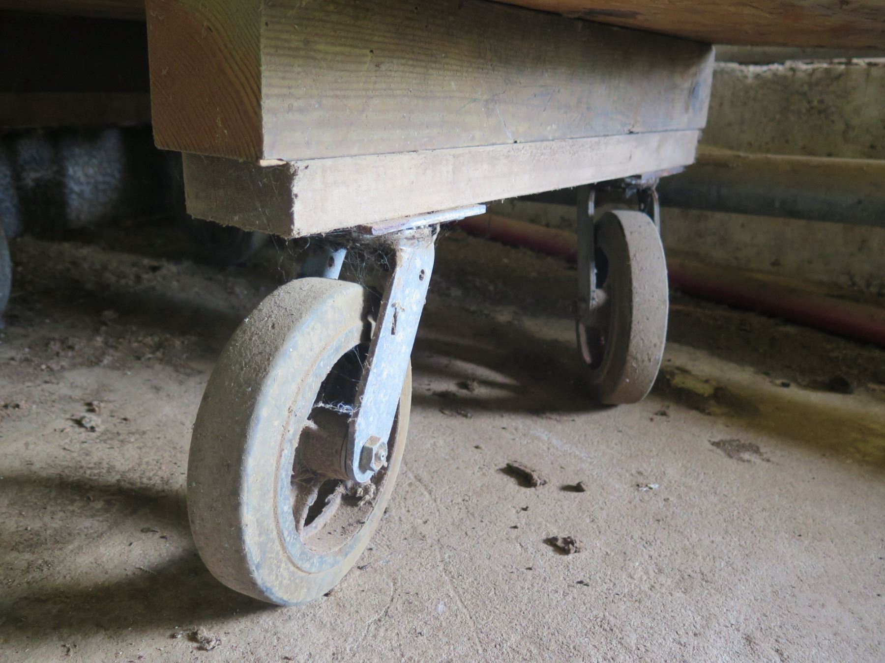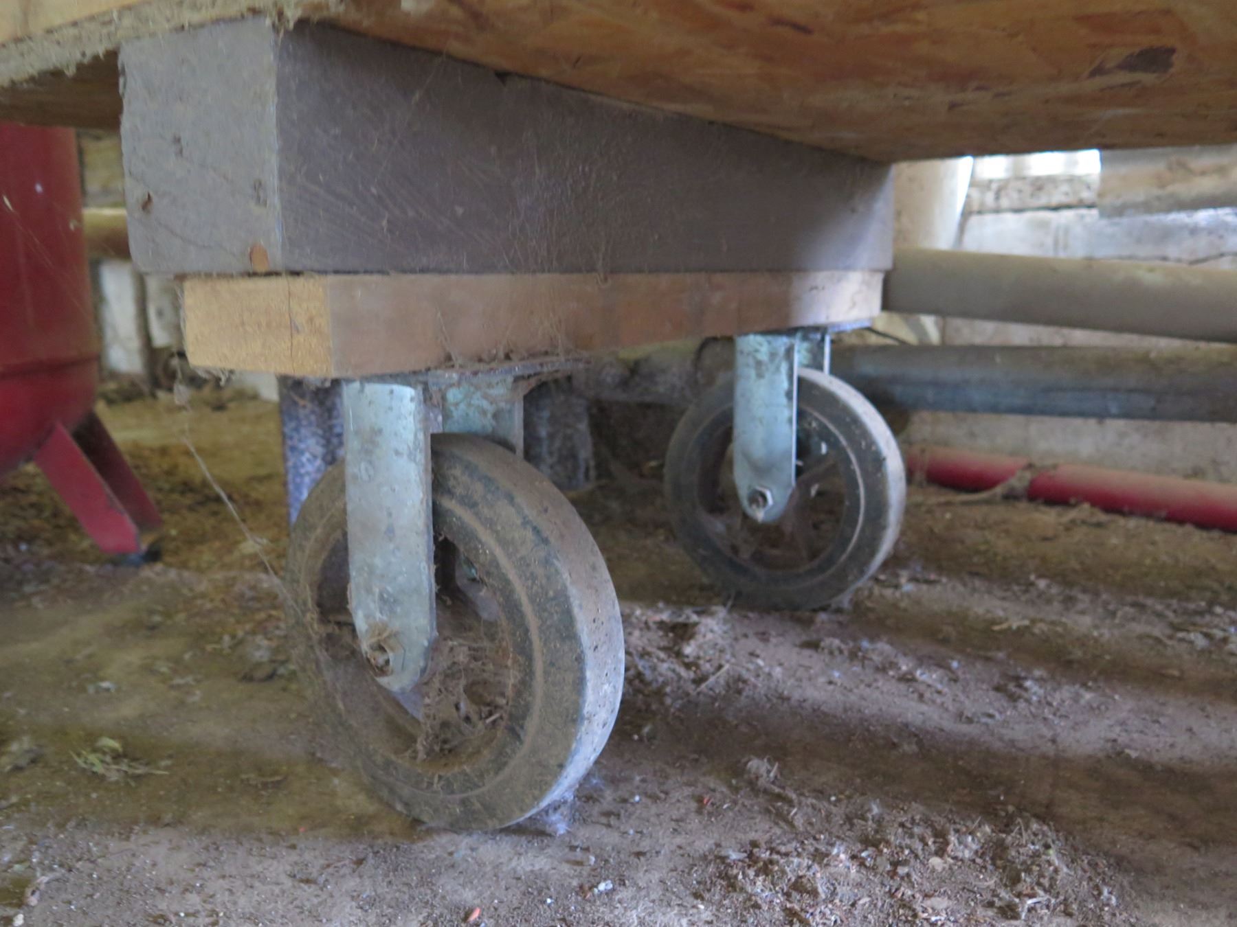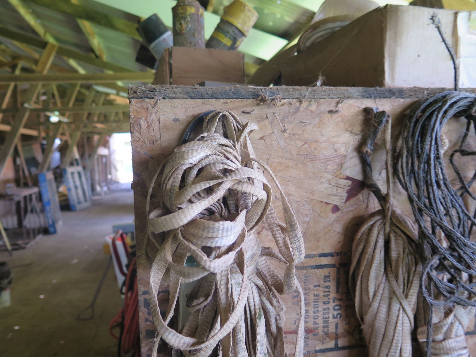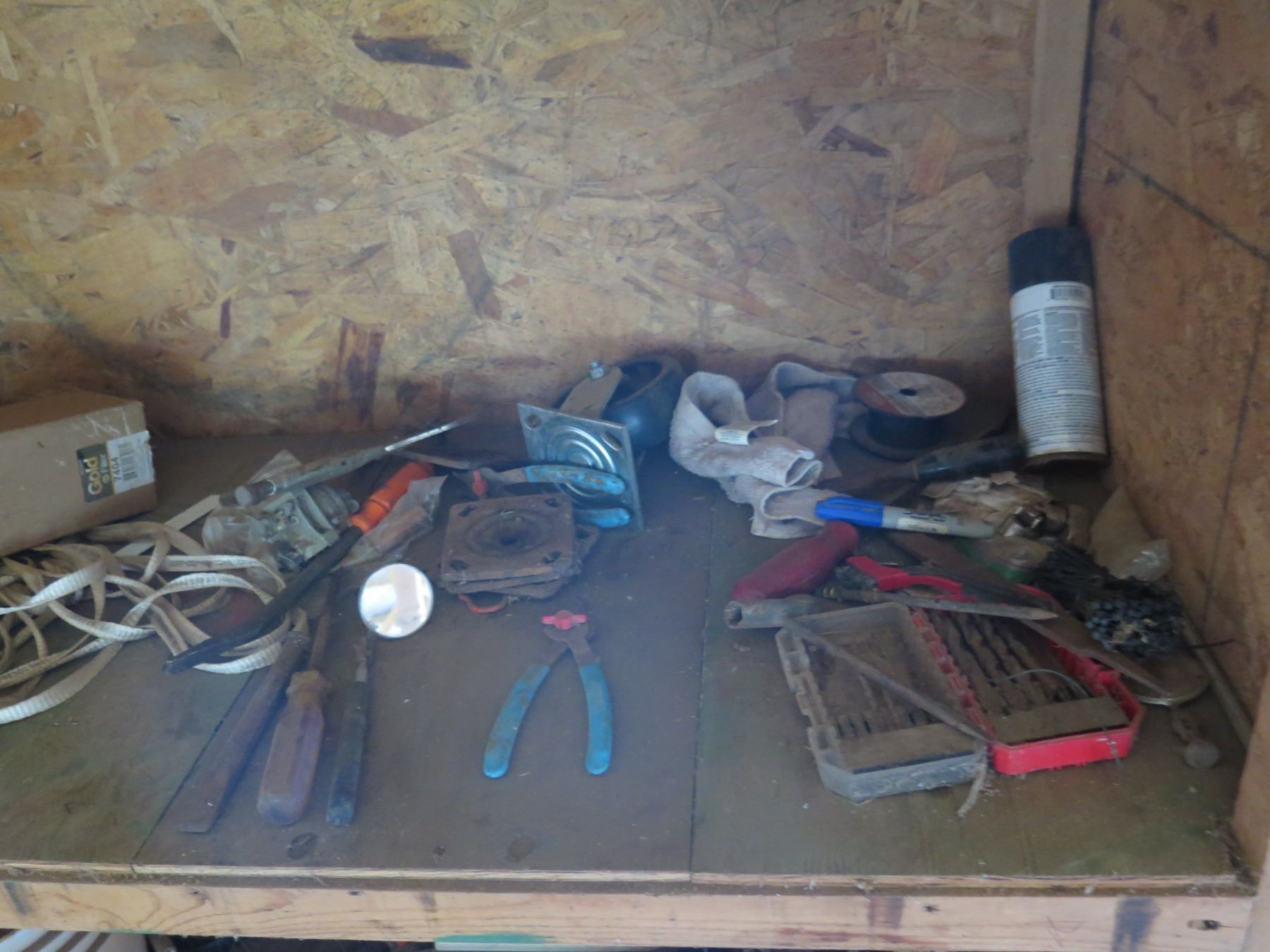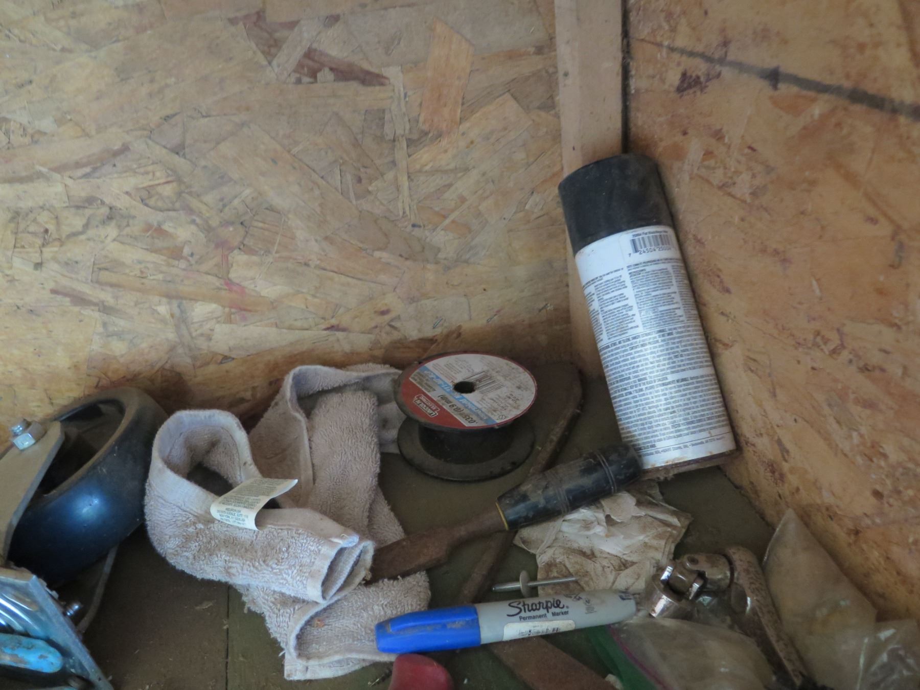 Rolling Plywood 2-Section Storage Unit & Contents: Straps, Tools, etc 48" x 24" x 64"H