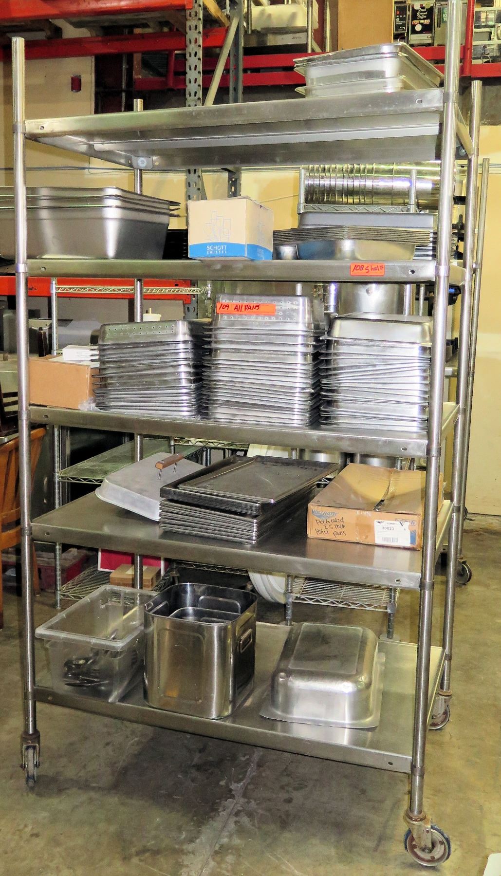 Rolling Stainless Steel 4-Tier Shelving w/ Adjustable Shelves (Shelf Only). Contents not included.