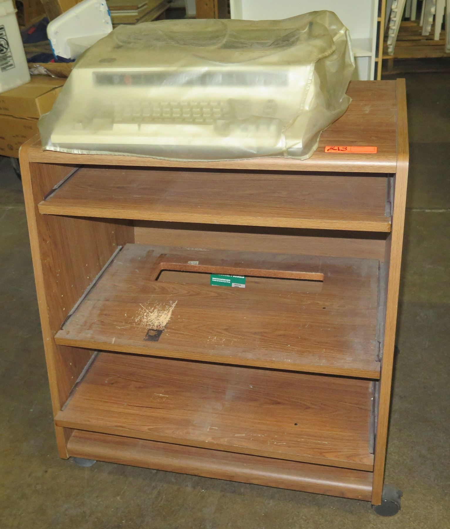 Rolling Wooden 4 Tier Shelf w/ Electric Typewriter