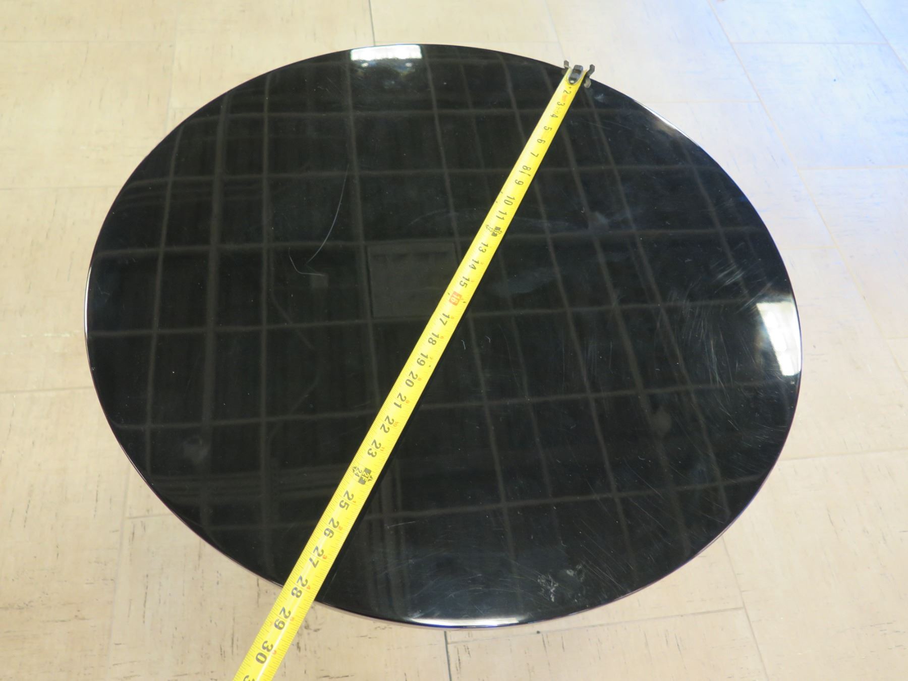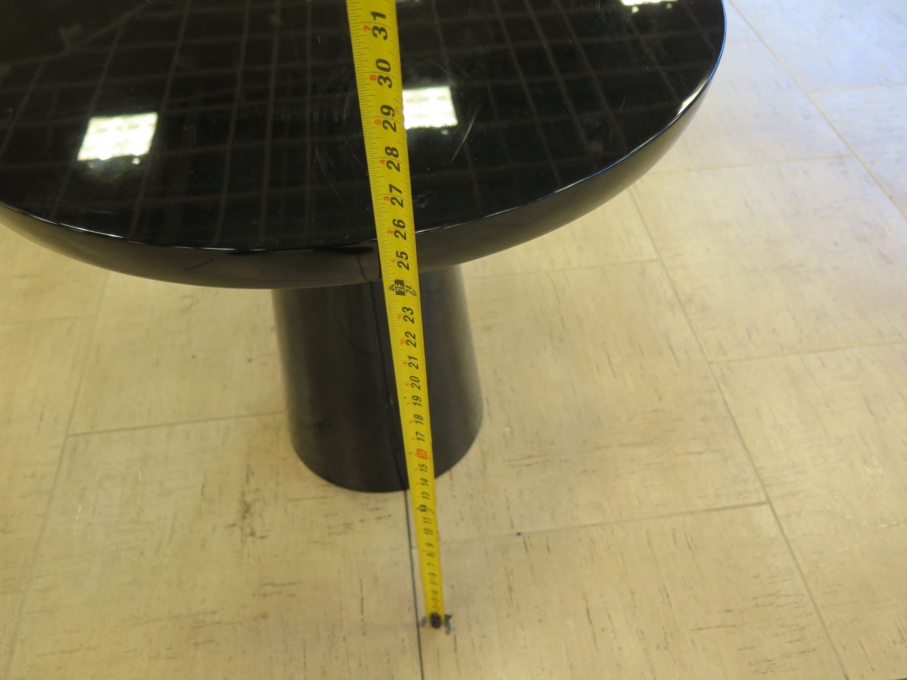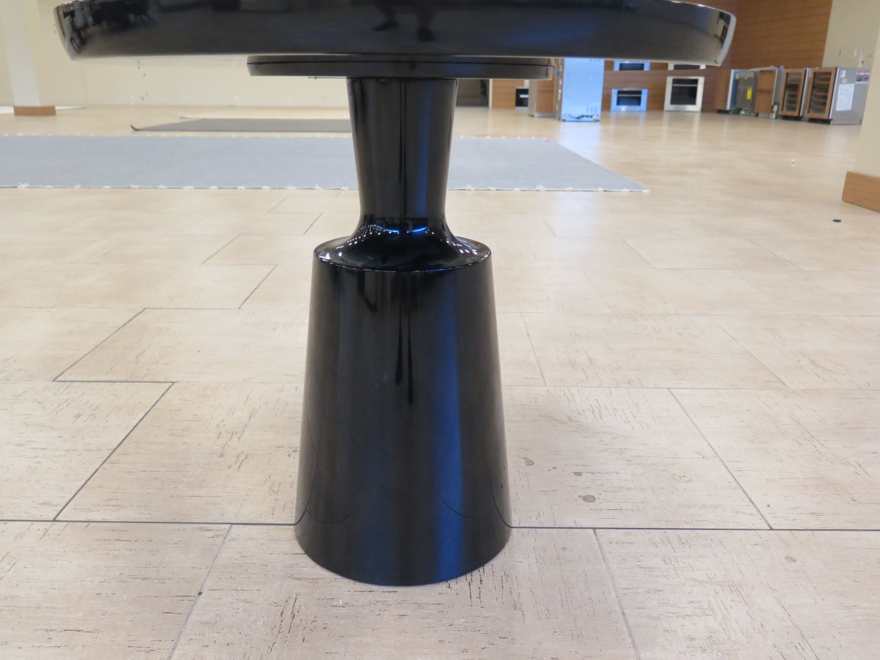 Round Black Side Table w/ Pedestal Base 28" Dia, 26"H. There are a few scratches on the top surface (see pictures).