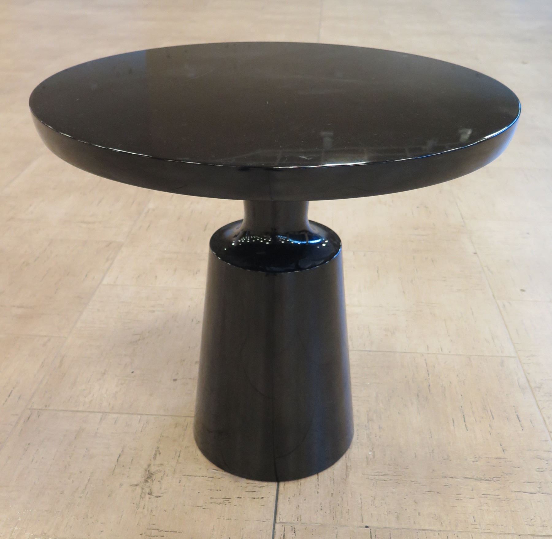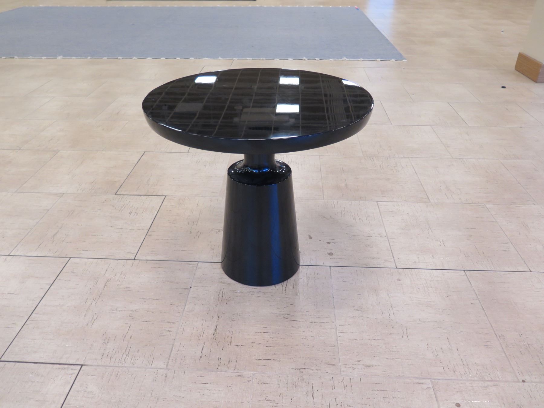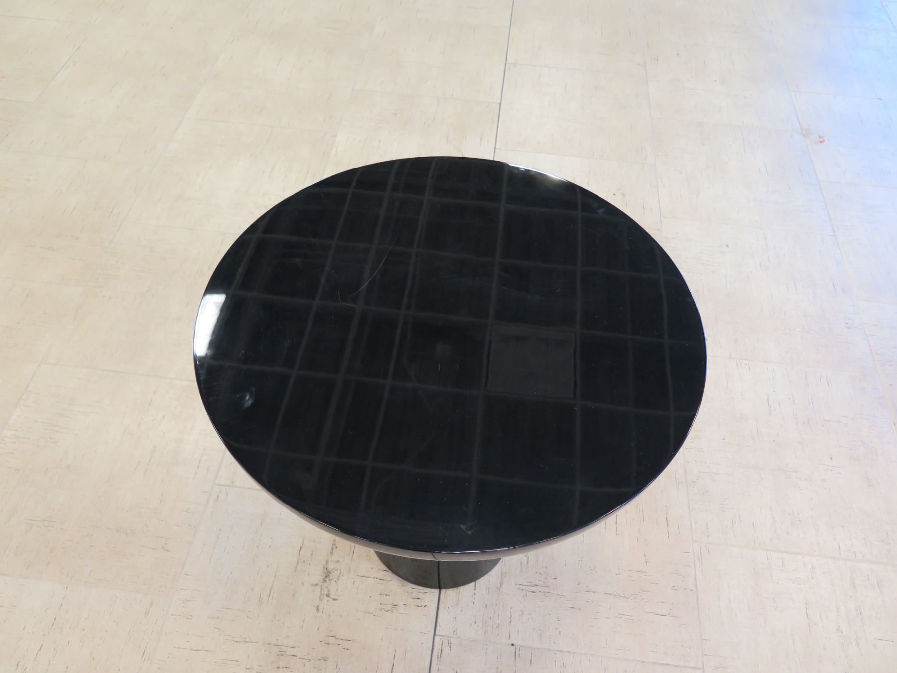 Round Black Side Table w/ Pedestal Base 28" Dia, 26"H. There are a few scratches on the top surface (see pictures).