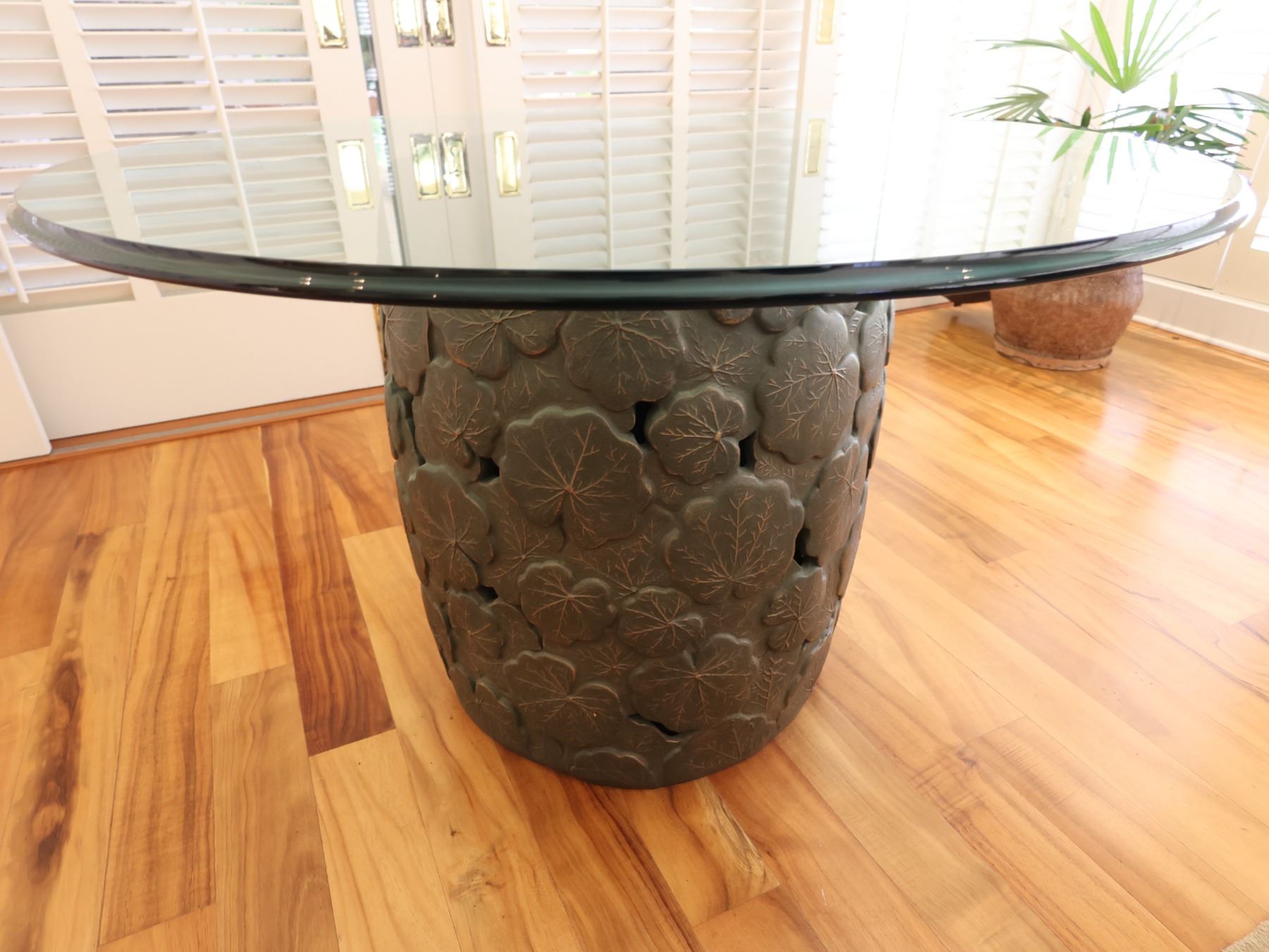 Round Glass Table w/ Leaf Patterned Base 48" Dia, 29"H