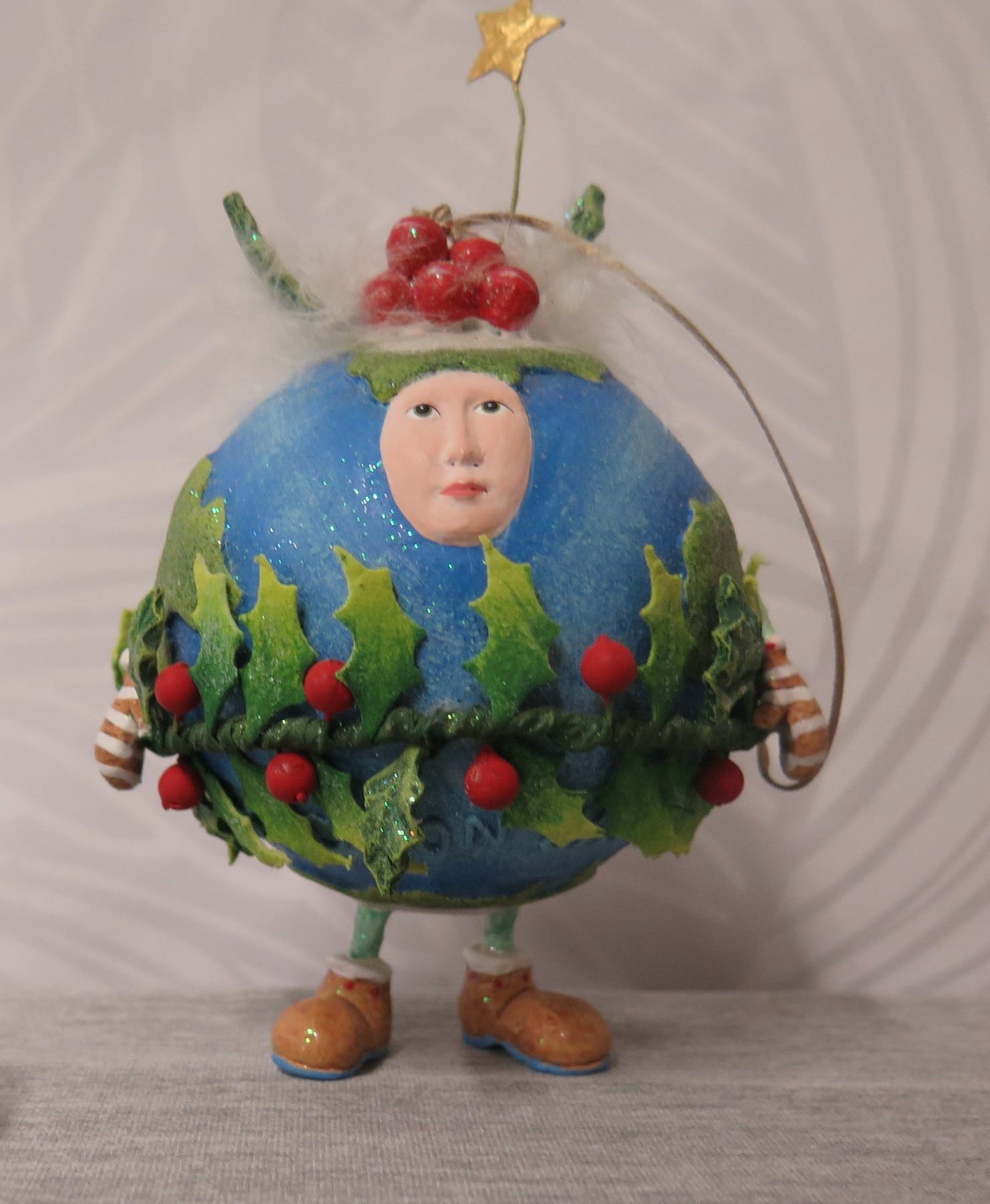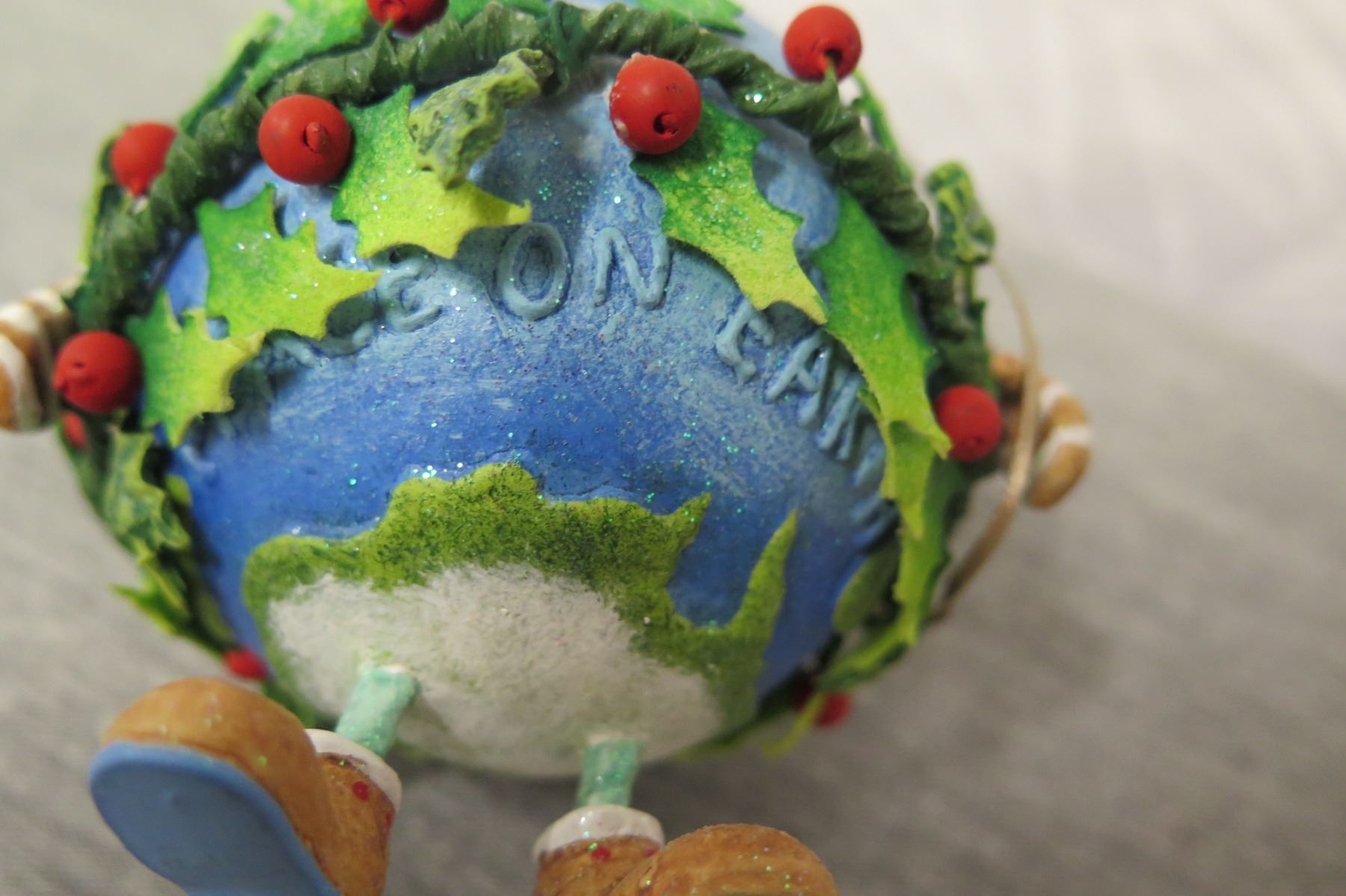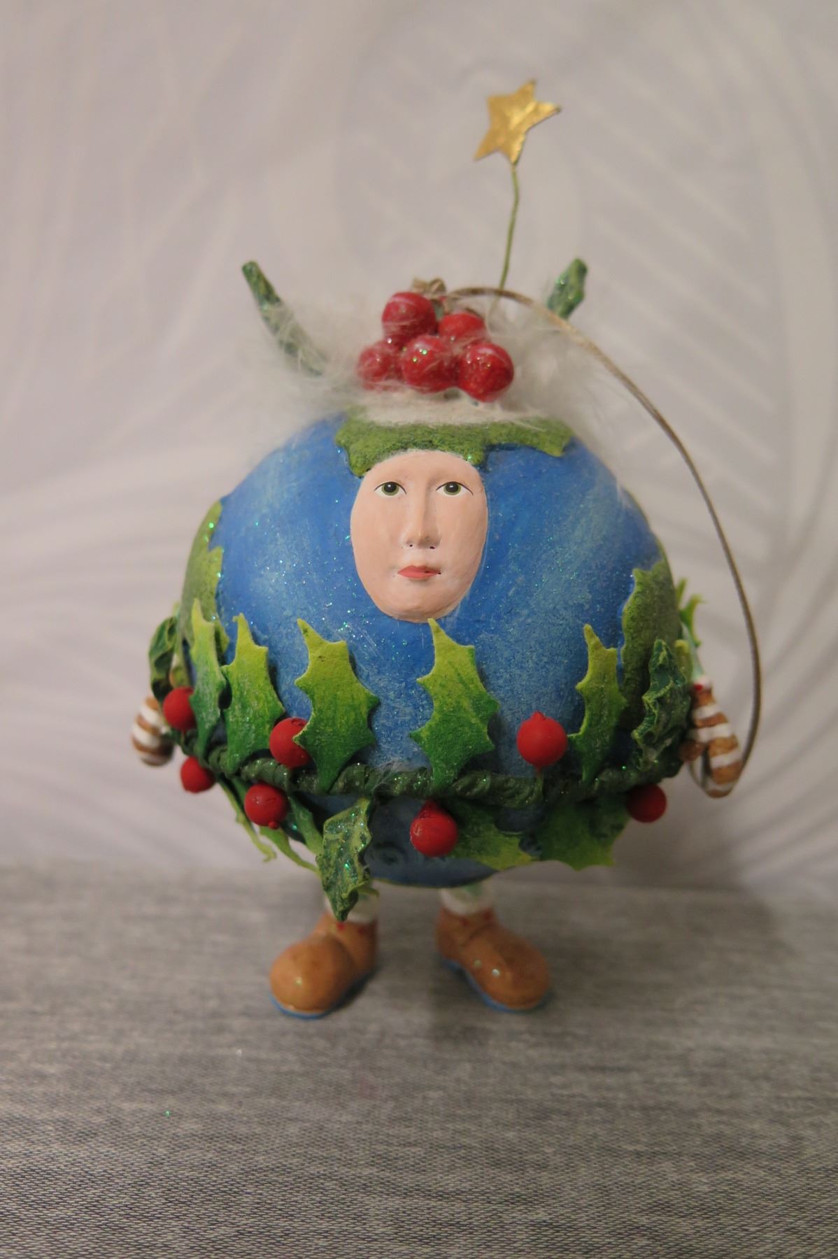 Round Holiday Elf Ornament w/ Peace on Earth & Maker's Mark PB* - 6" Height