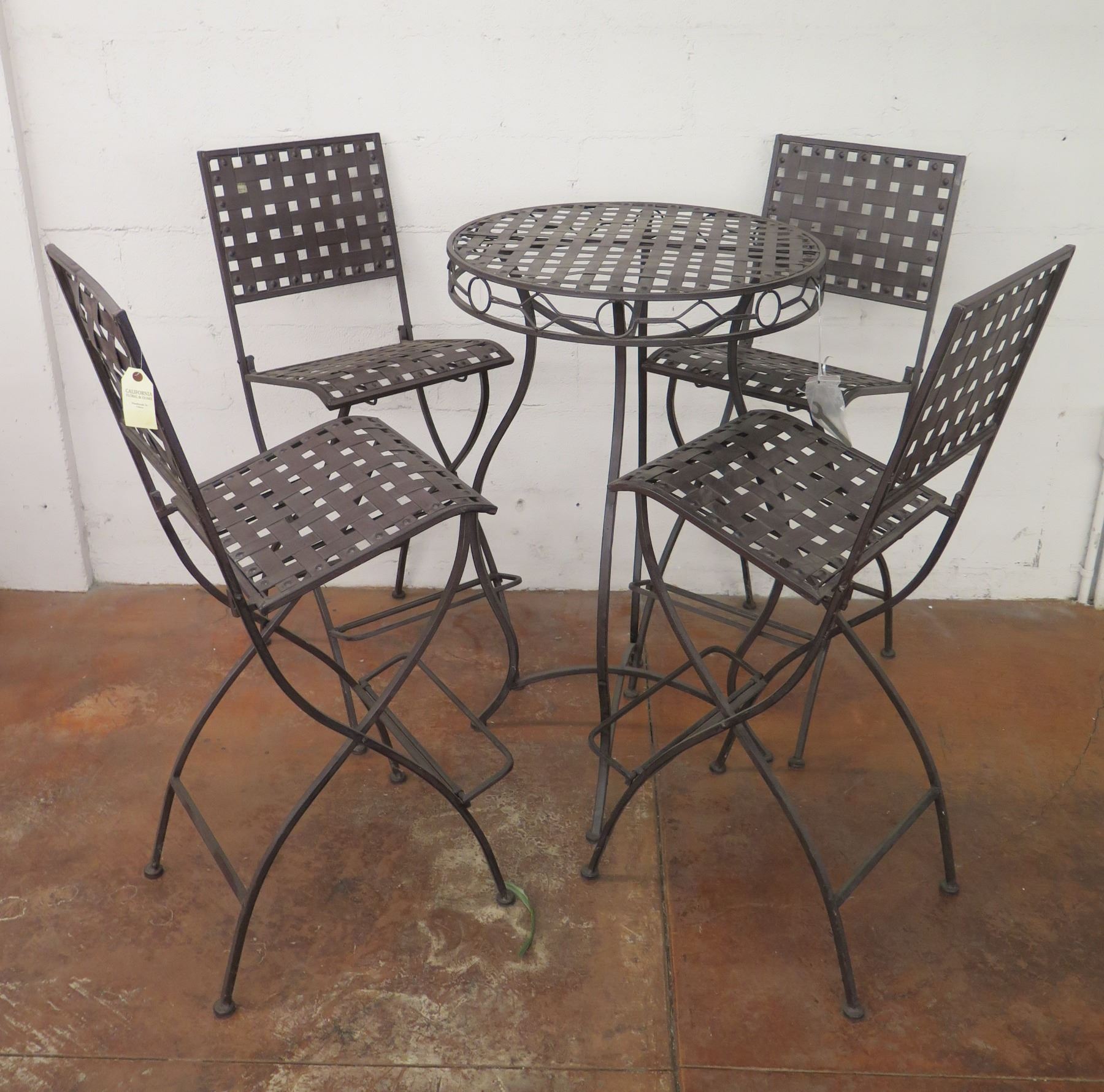Round Metal Bar-Height Bistro Table 25"D x 40"H & 4 Folding Chairs 16"x16"x45"H