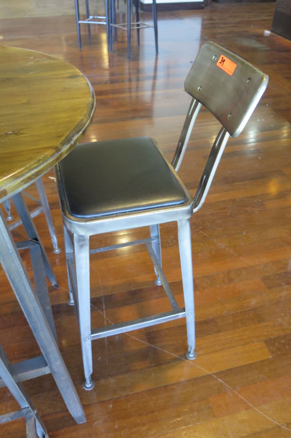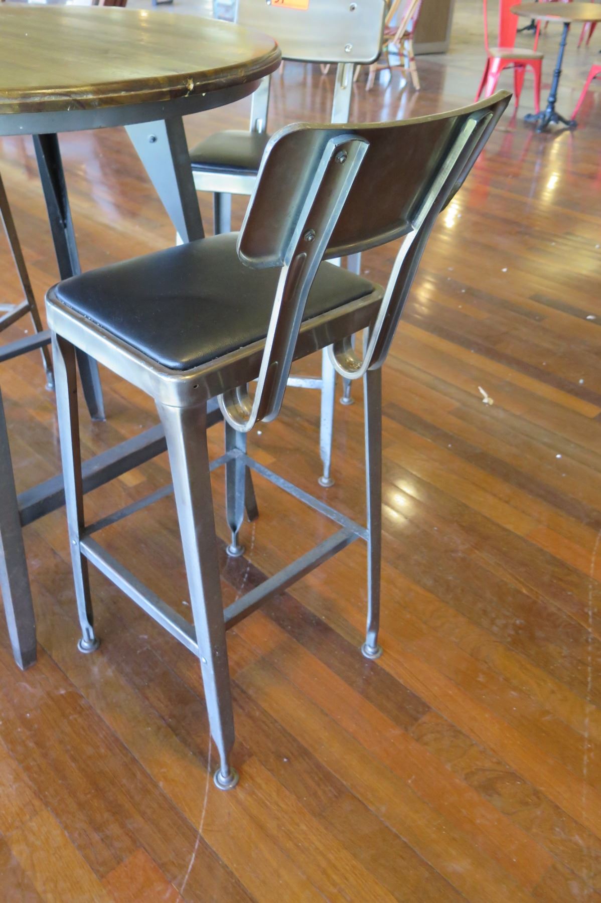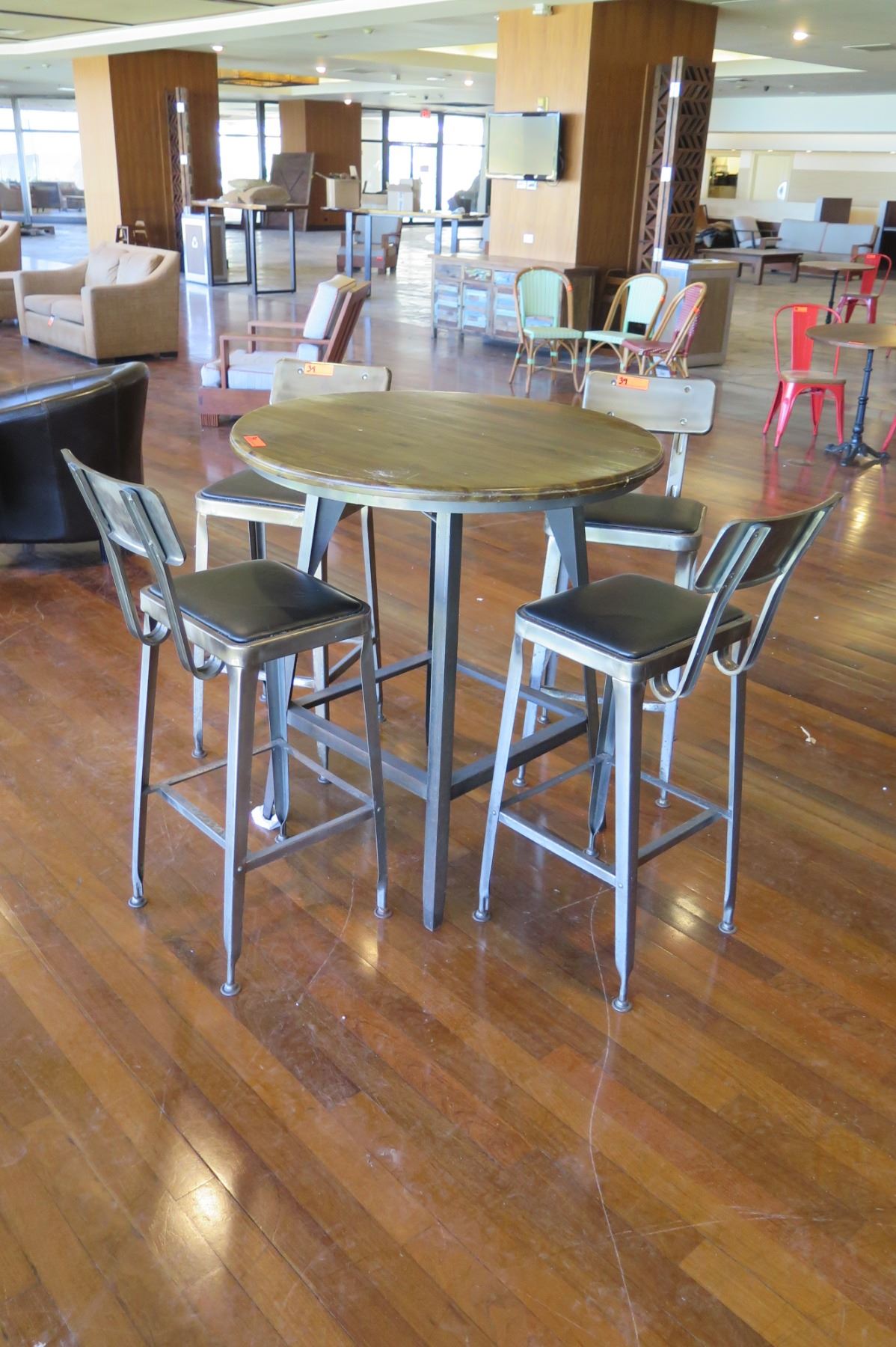 Round Metal Bar-Height Table w/ Wooden Top (37" Dia) & 4 Bar-Height Stools