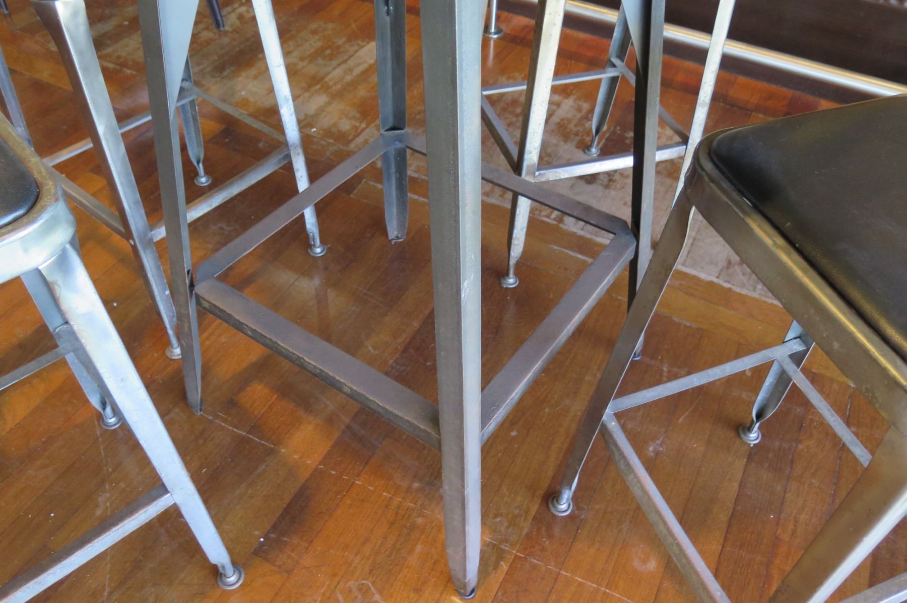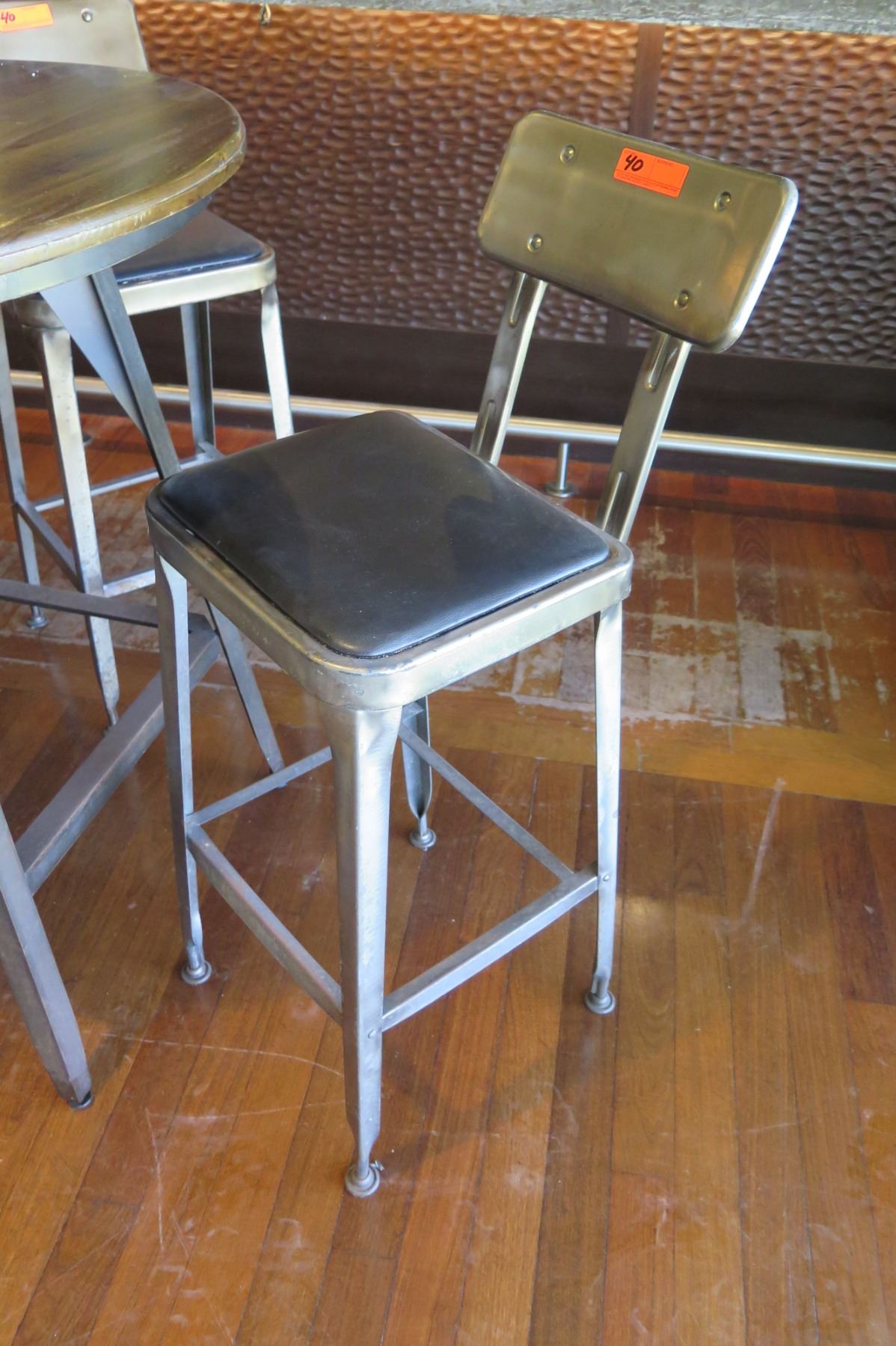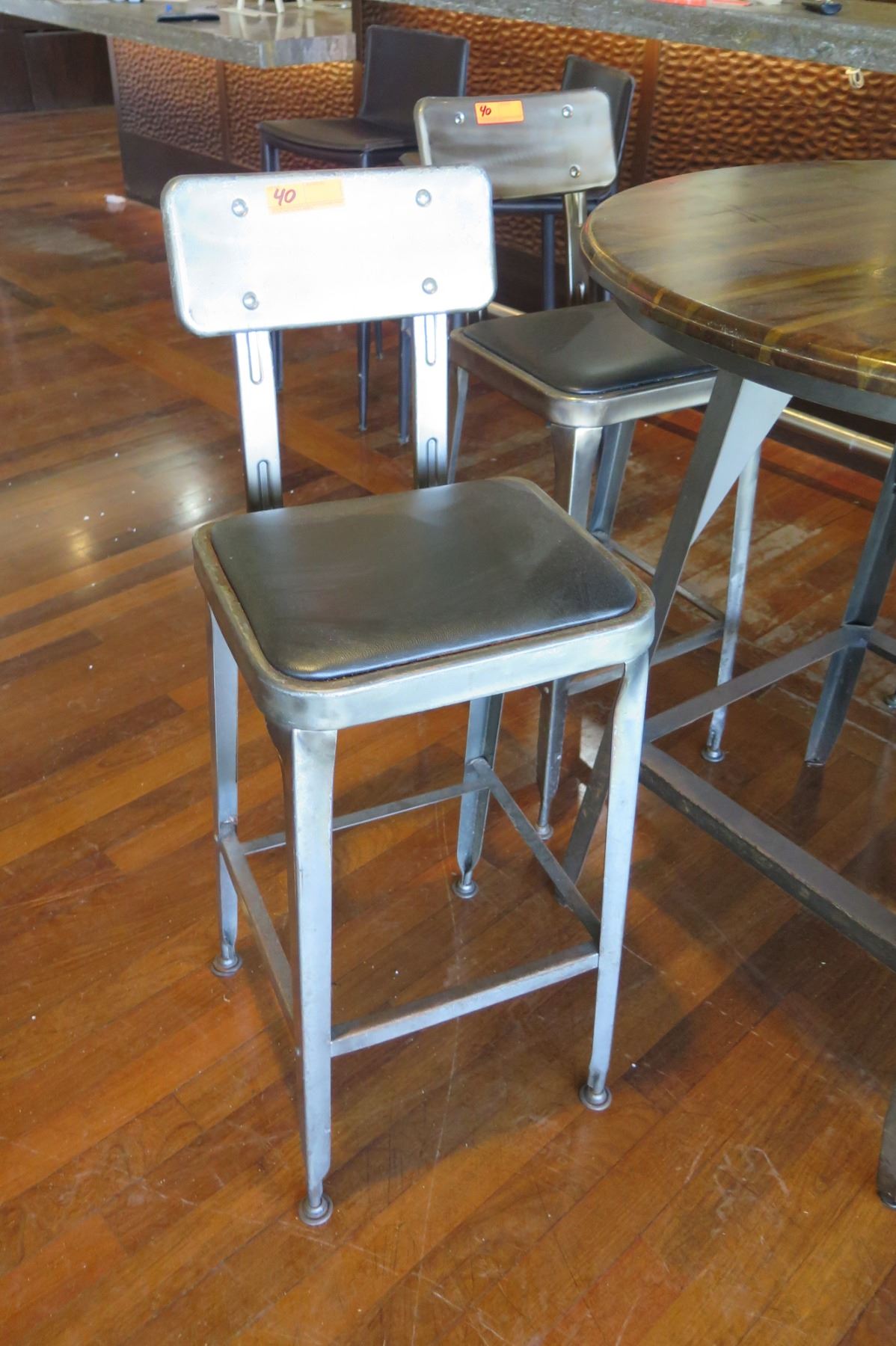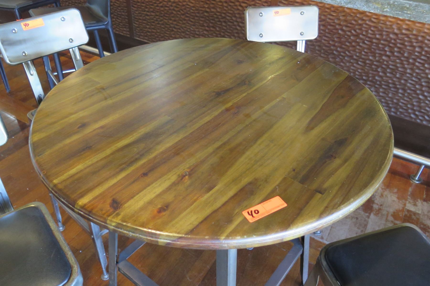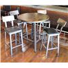 Round Metal Bar-Height Table w/ Wooden Top (37" Dia) & 4 Bar-Height Stools
