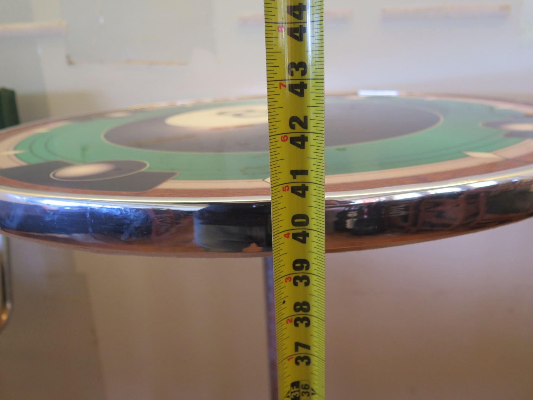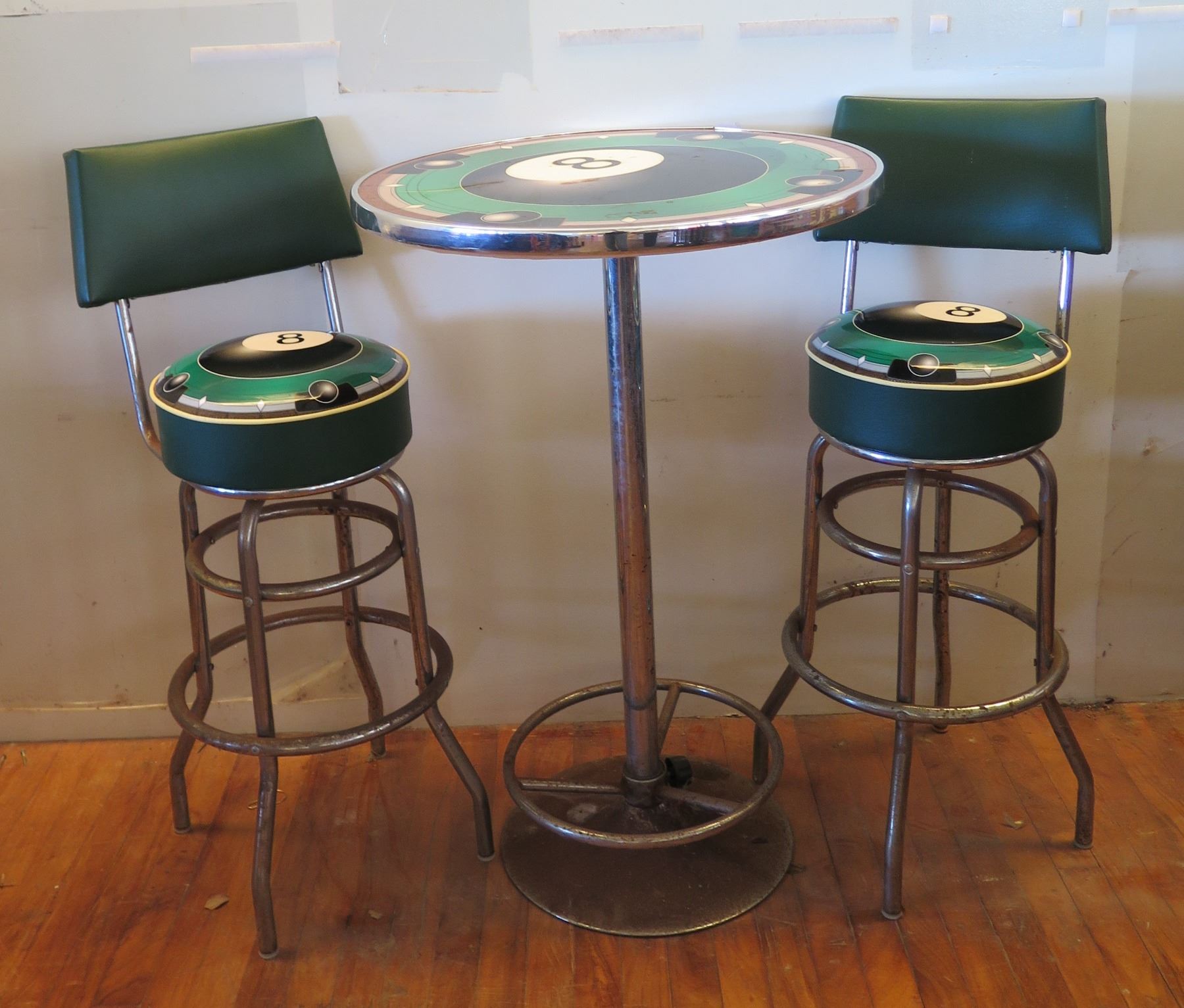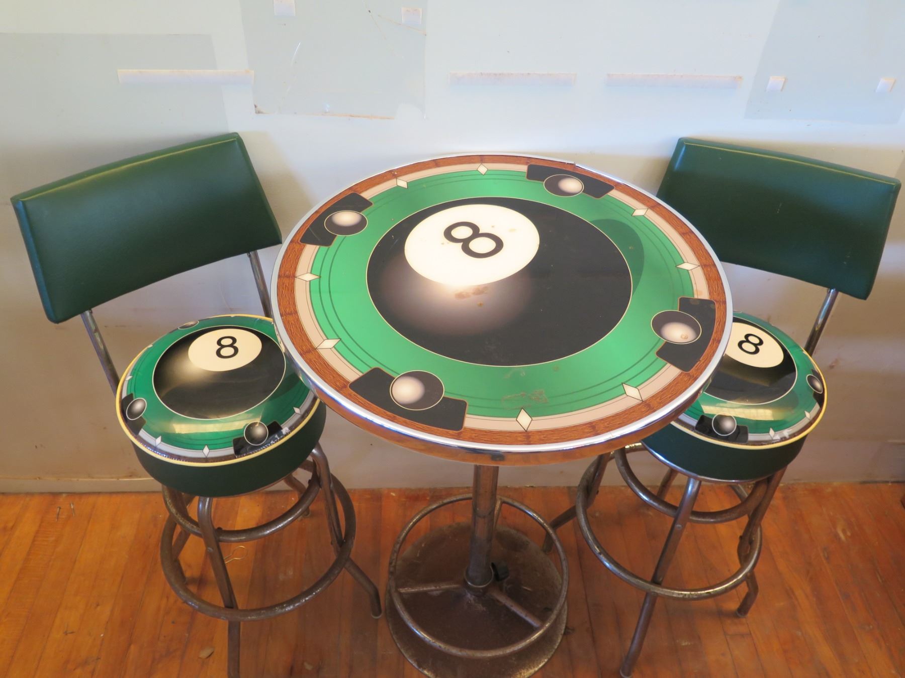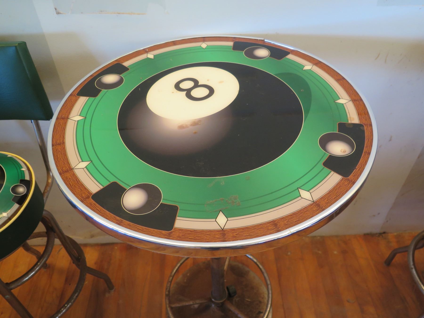 Round Metal Pedestal 8-Ball Bar Table 27" Dia. & Matching Upholstered Stools 43"H