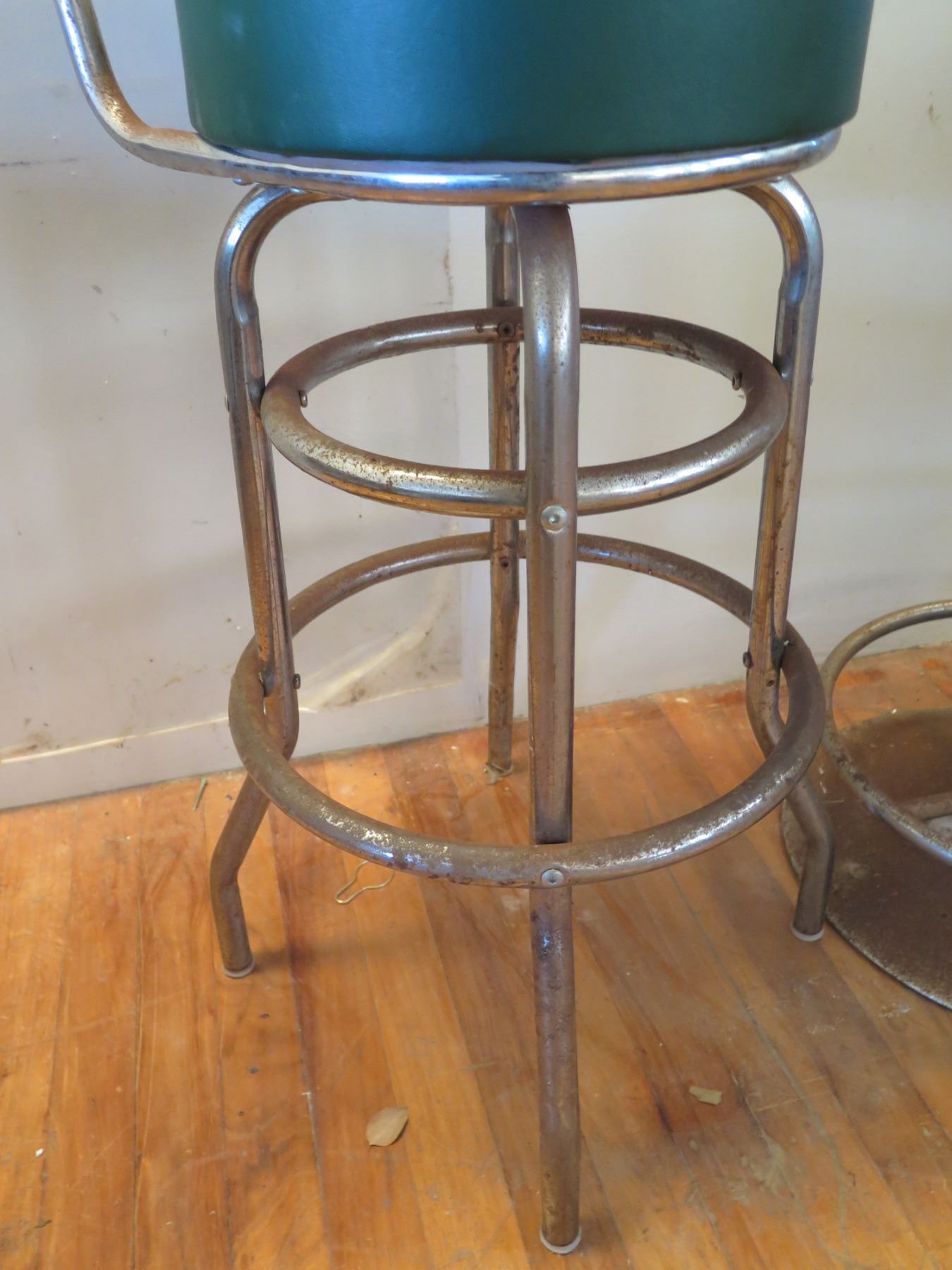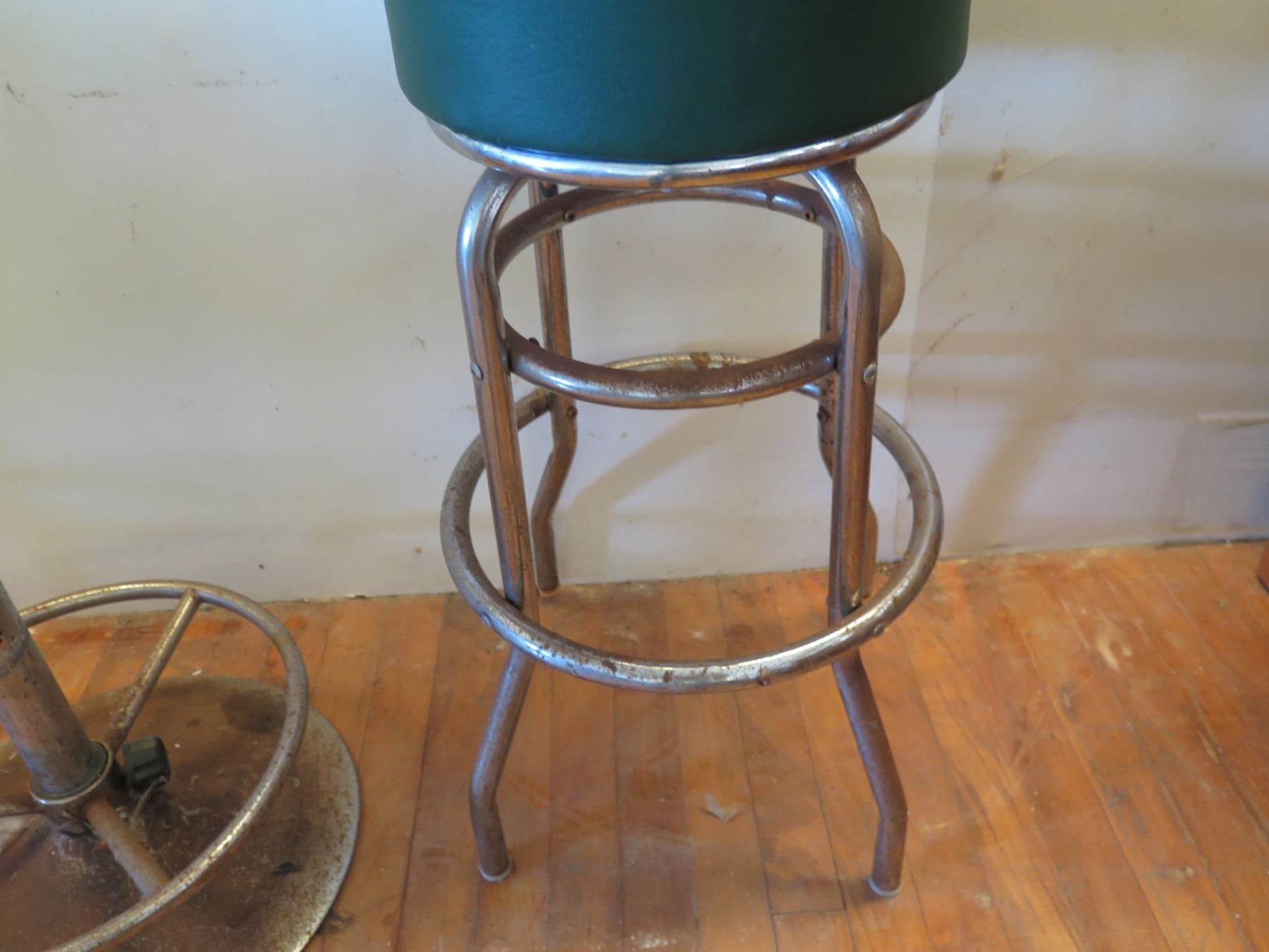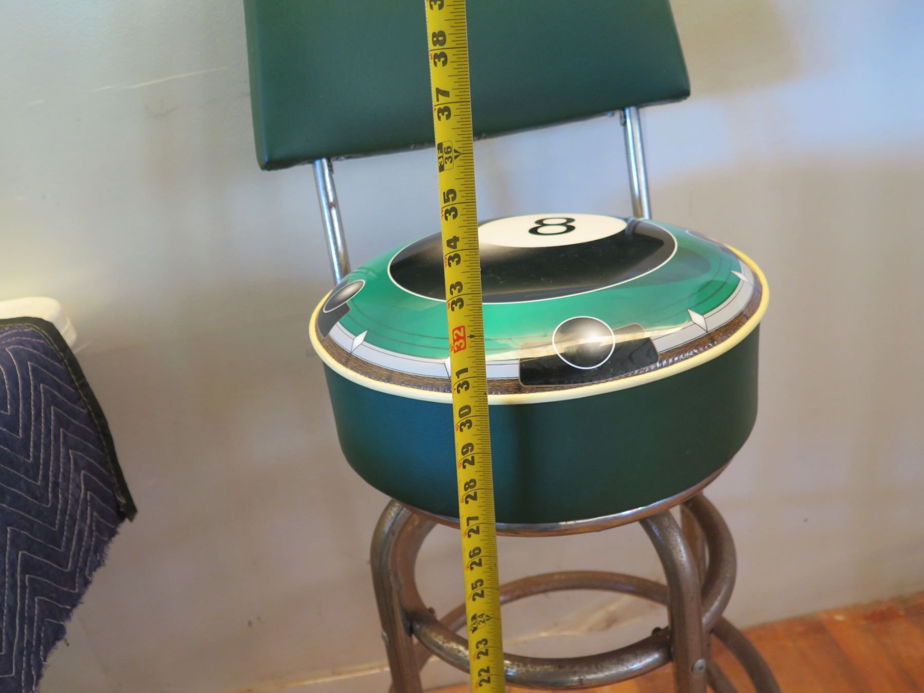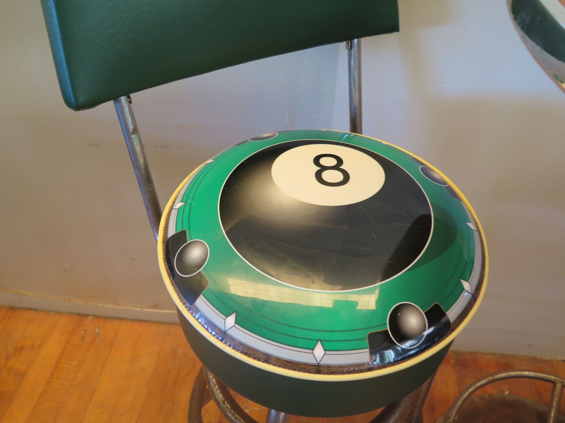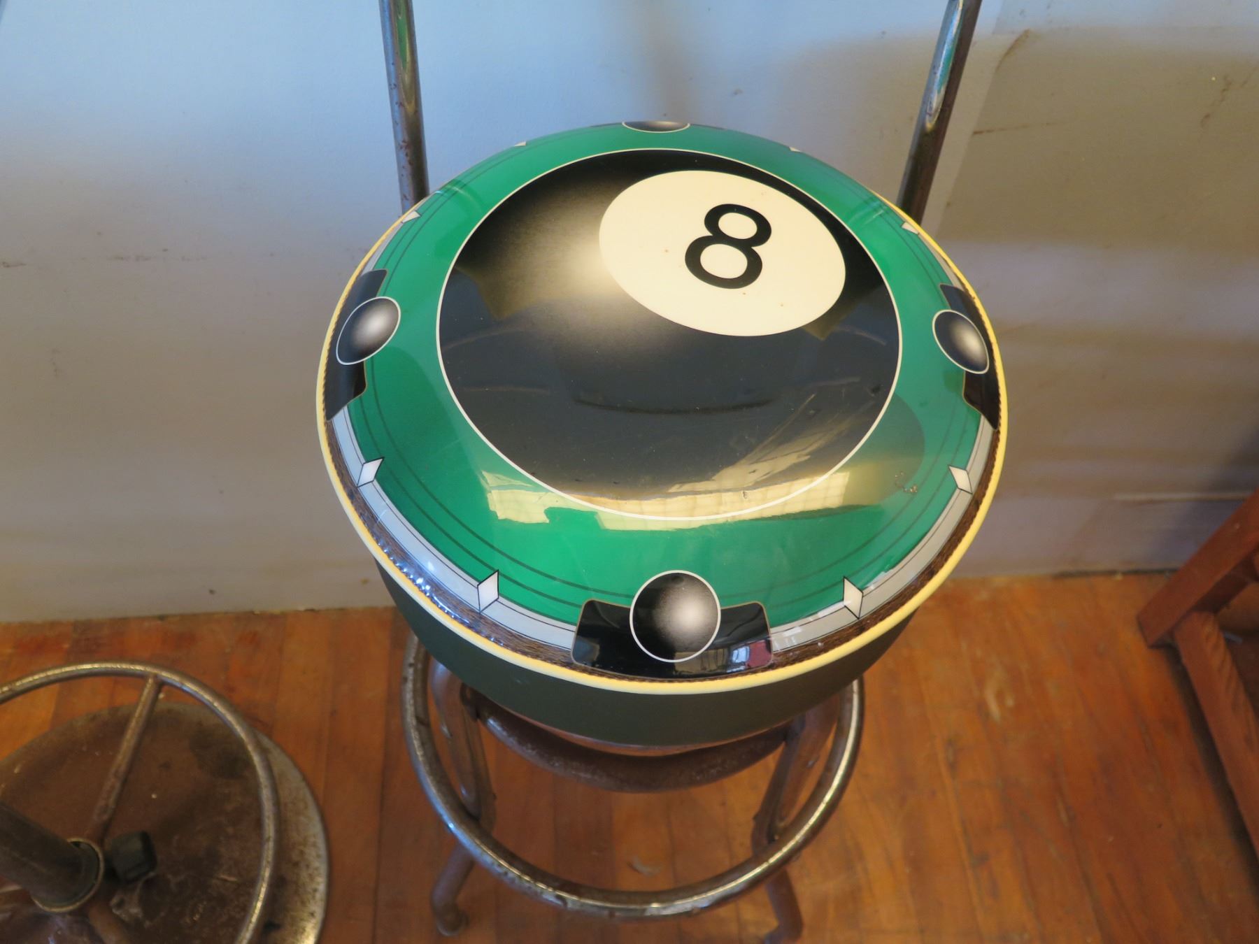 Round Metal Pedestal 8-Ball Bar Table 27" Dia. & Matching Upholstered Stools 43"H
