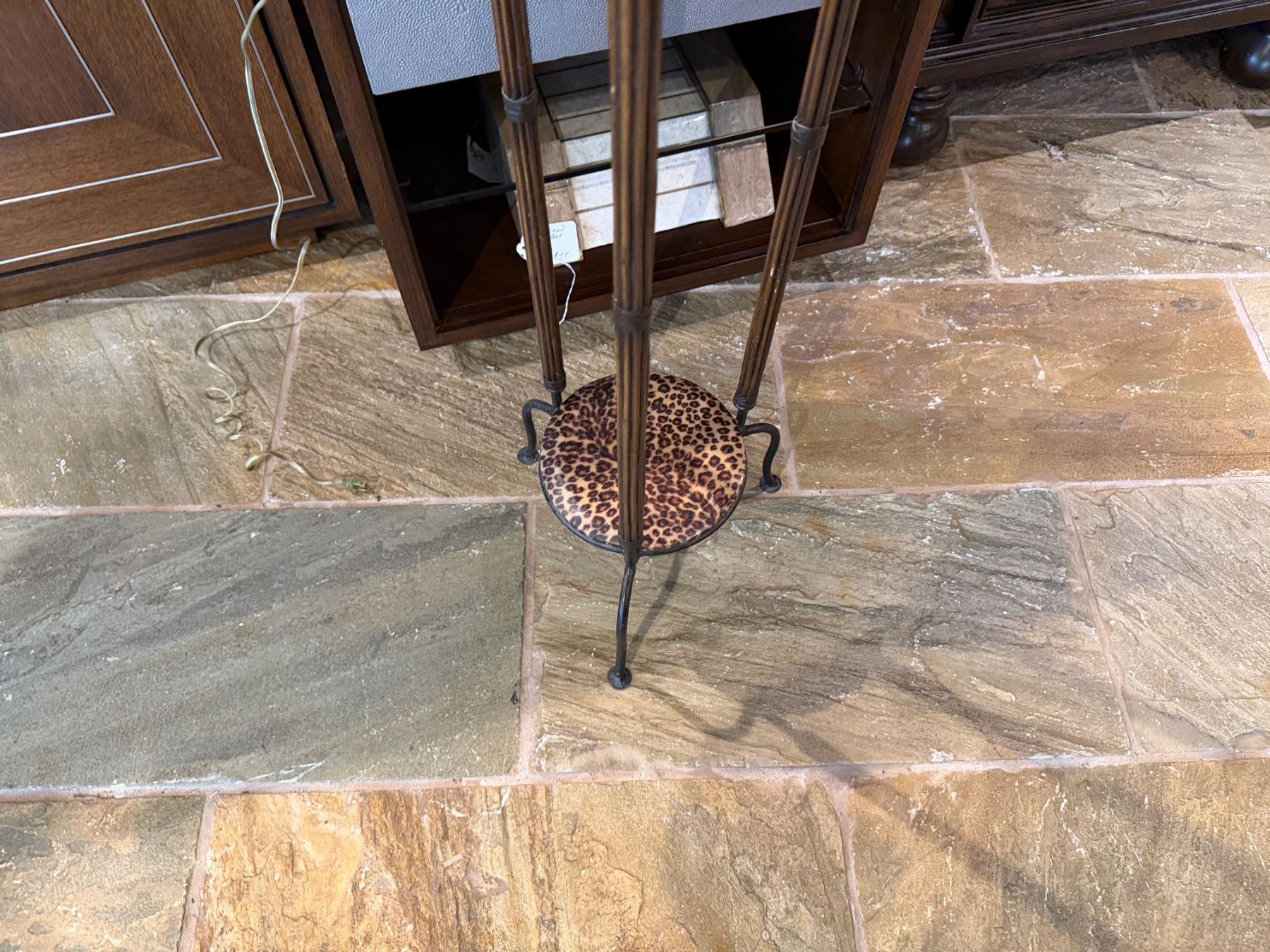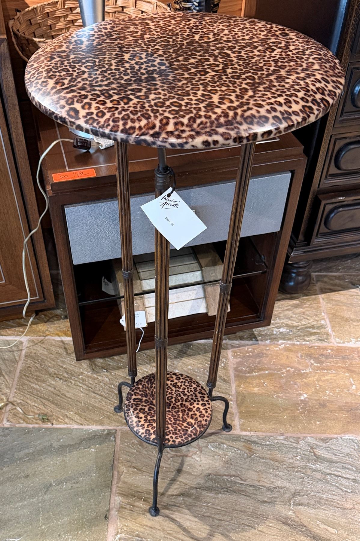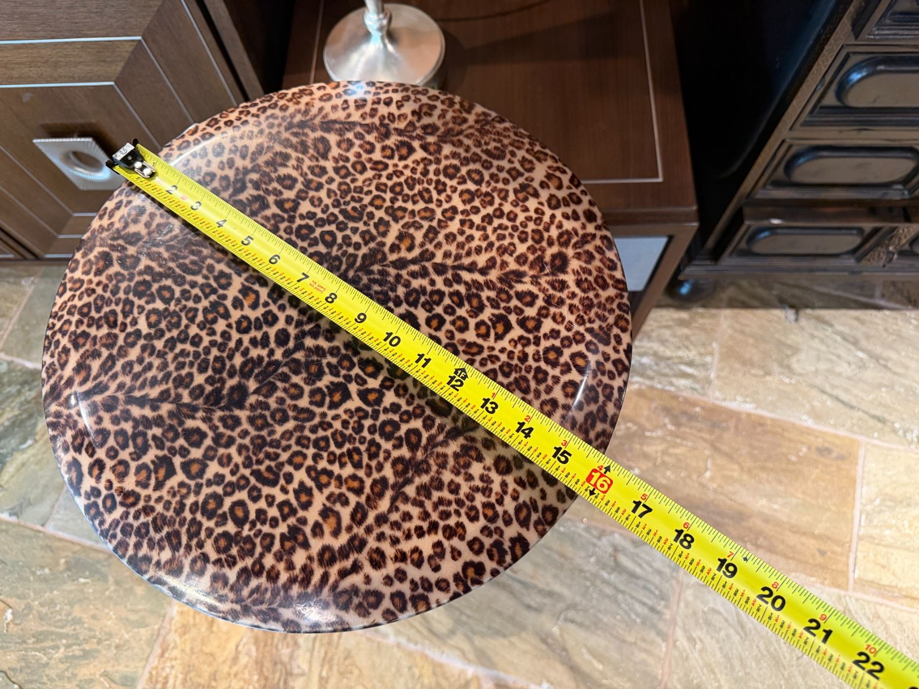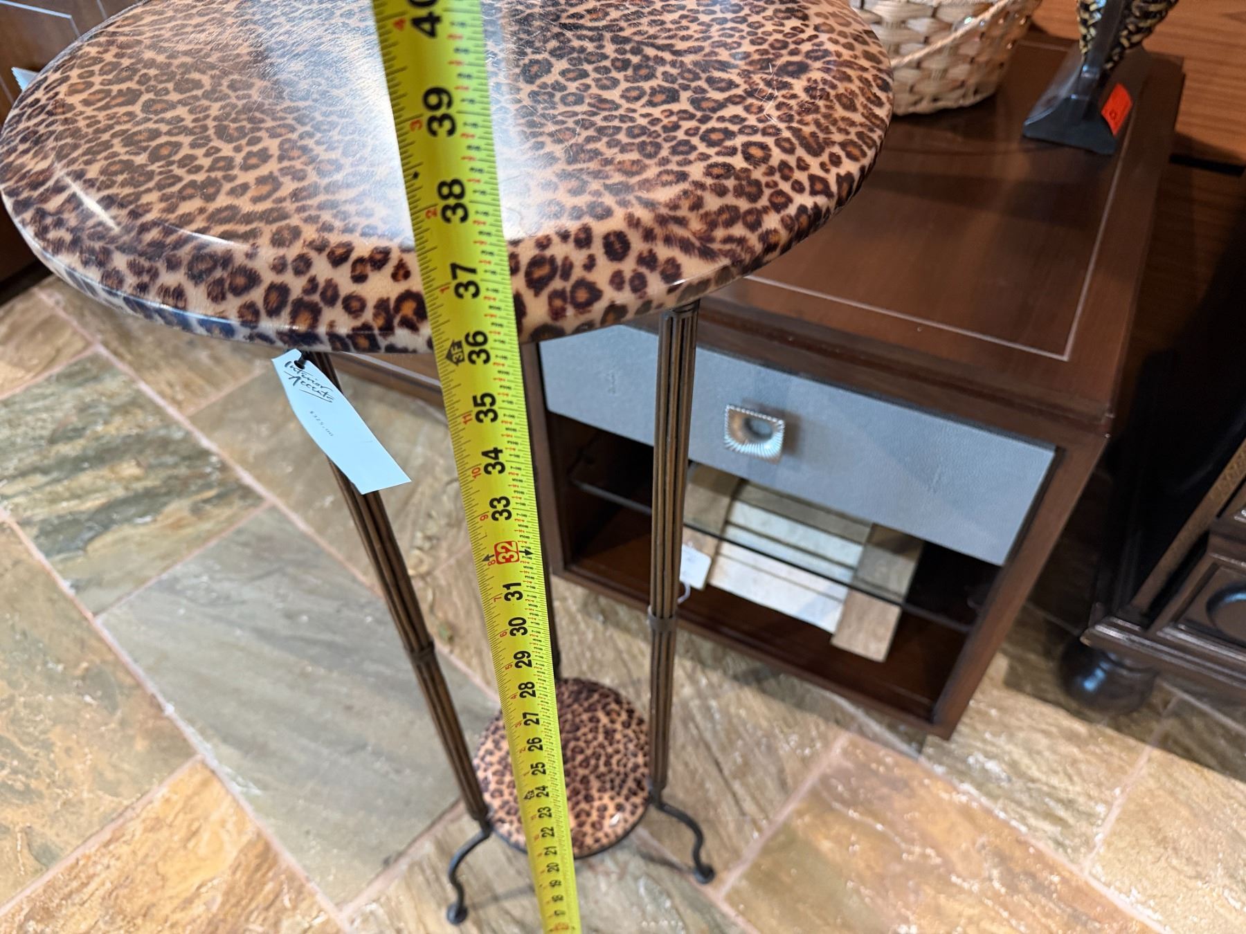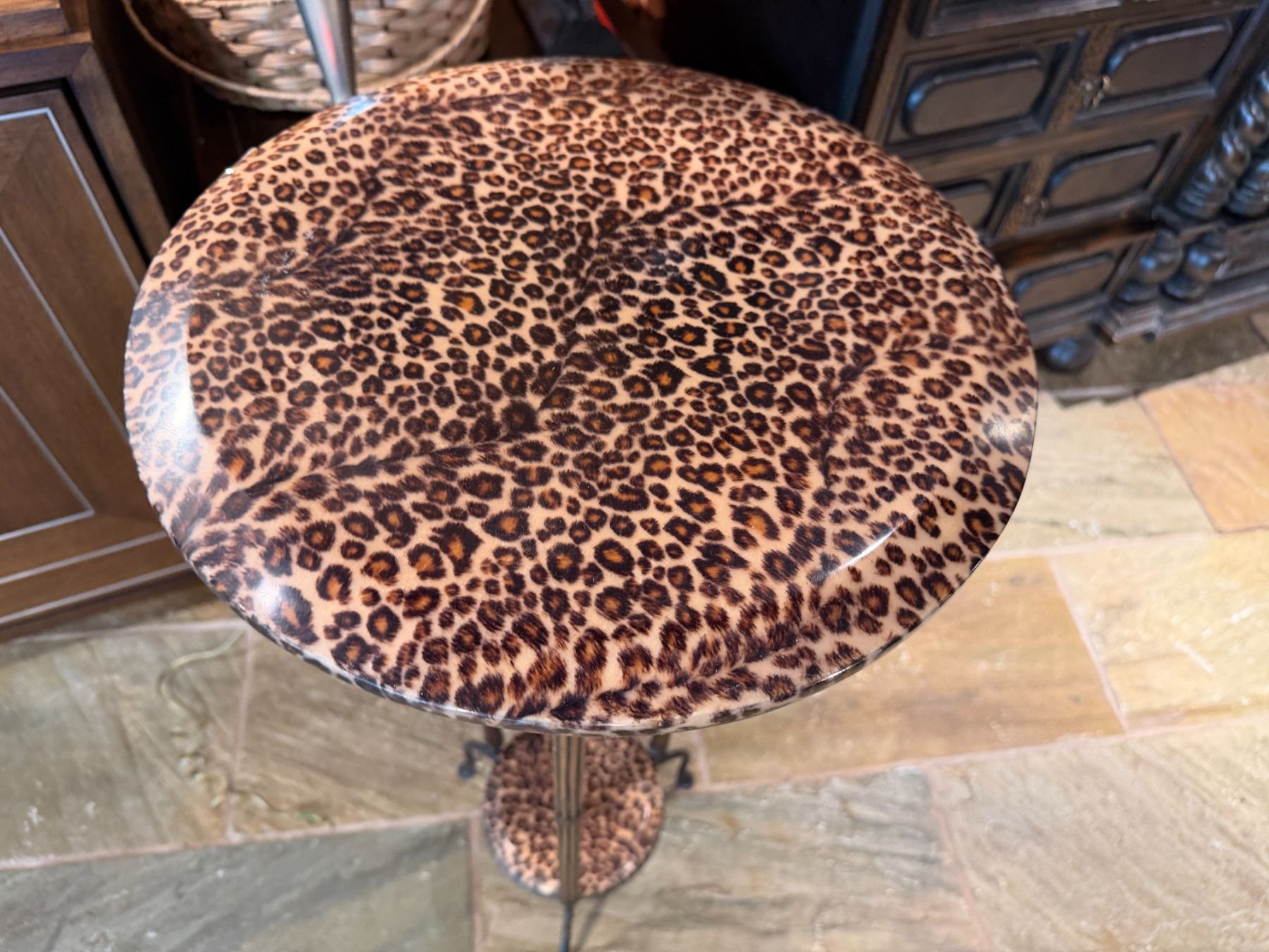 Round Metal Table w/ Animal Print Top & Undershelf 16" Dia, 37"H