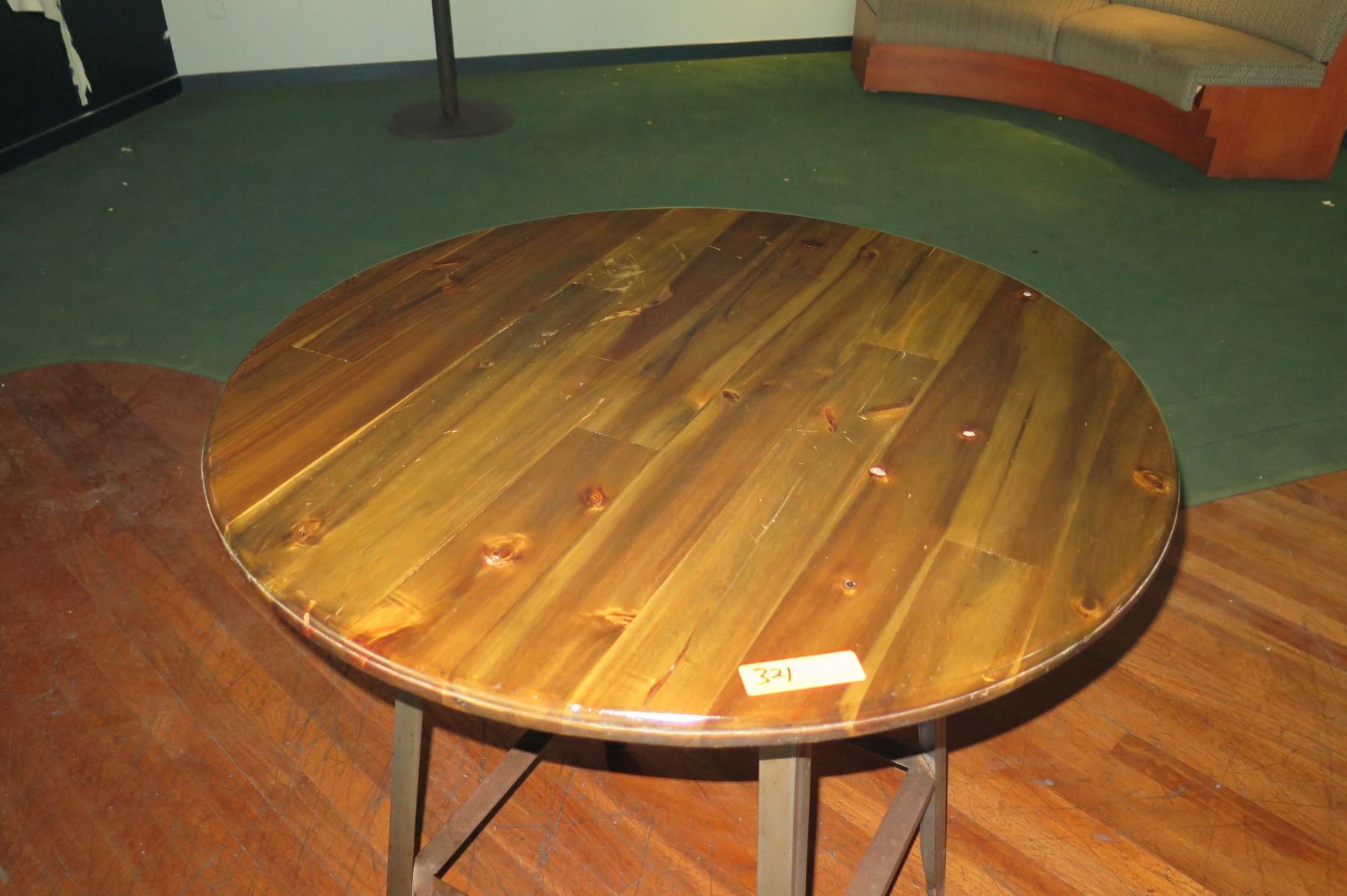 Round Metal Table w/ Wooden Top