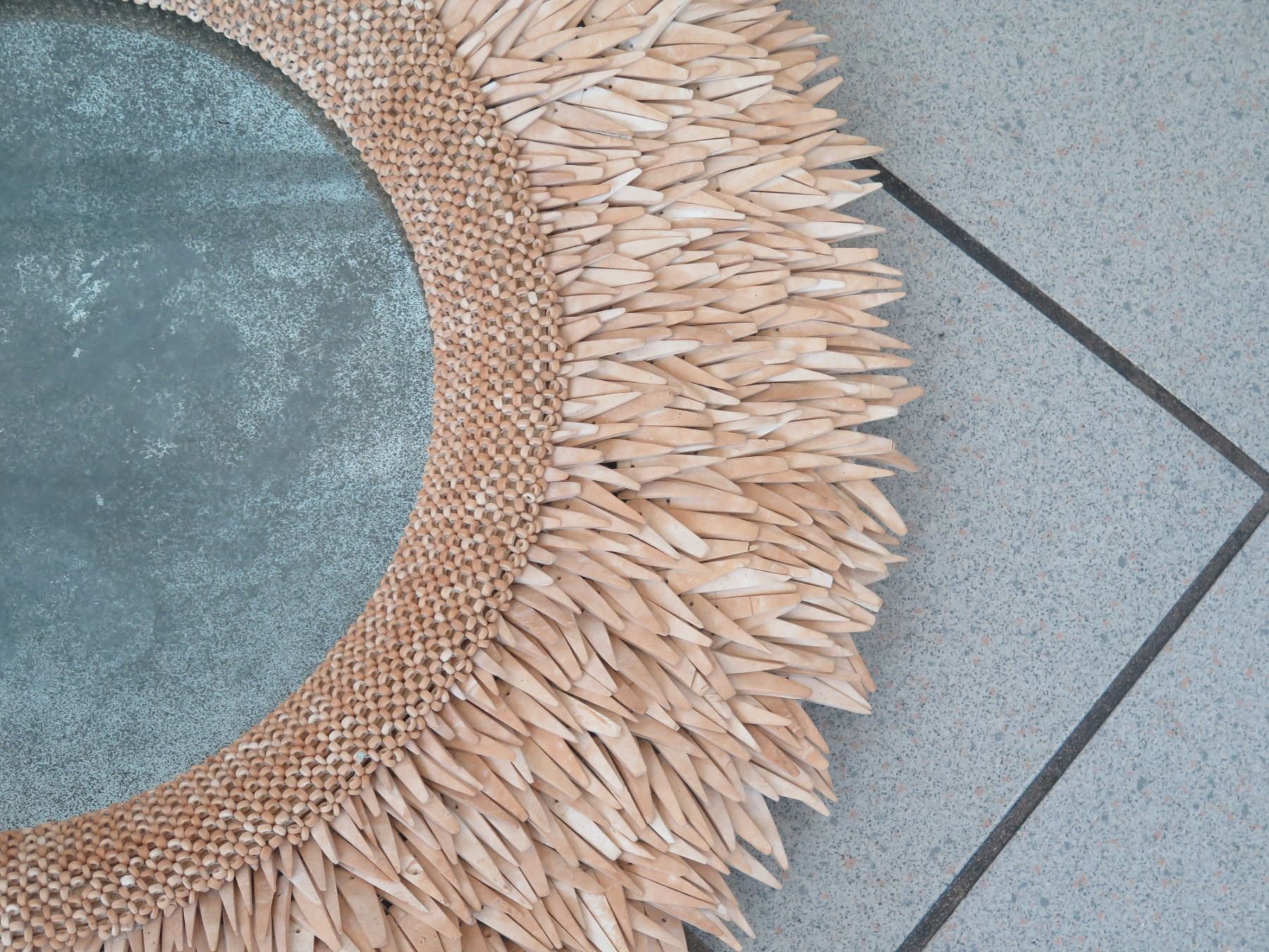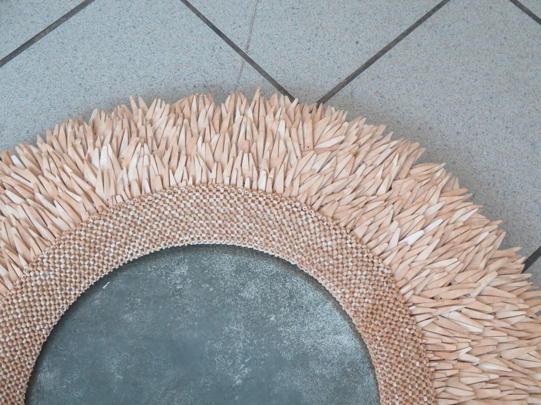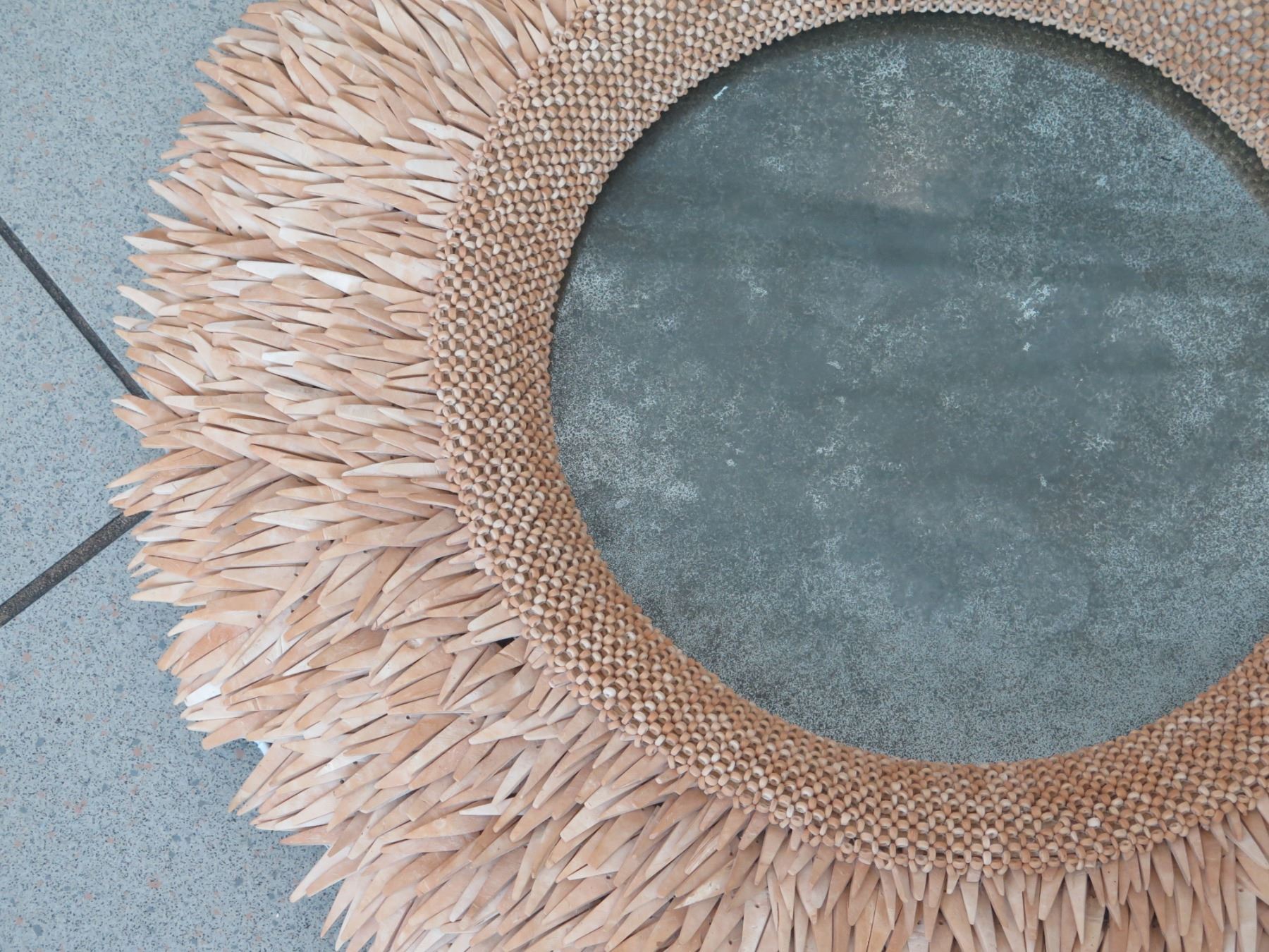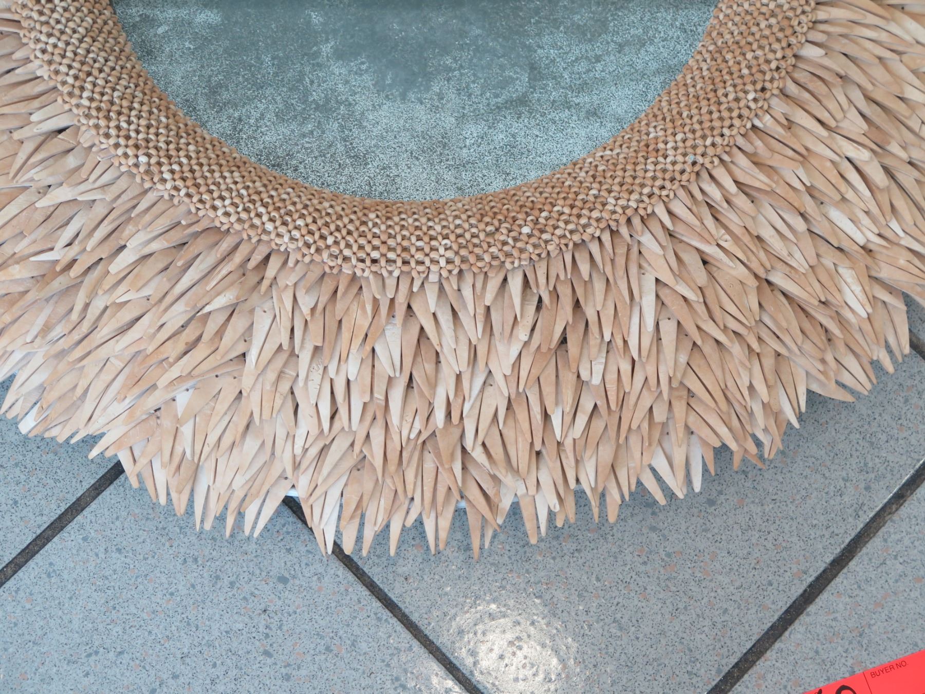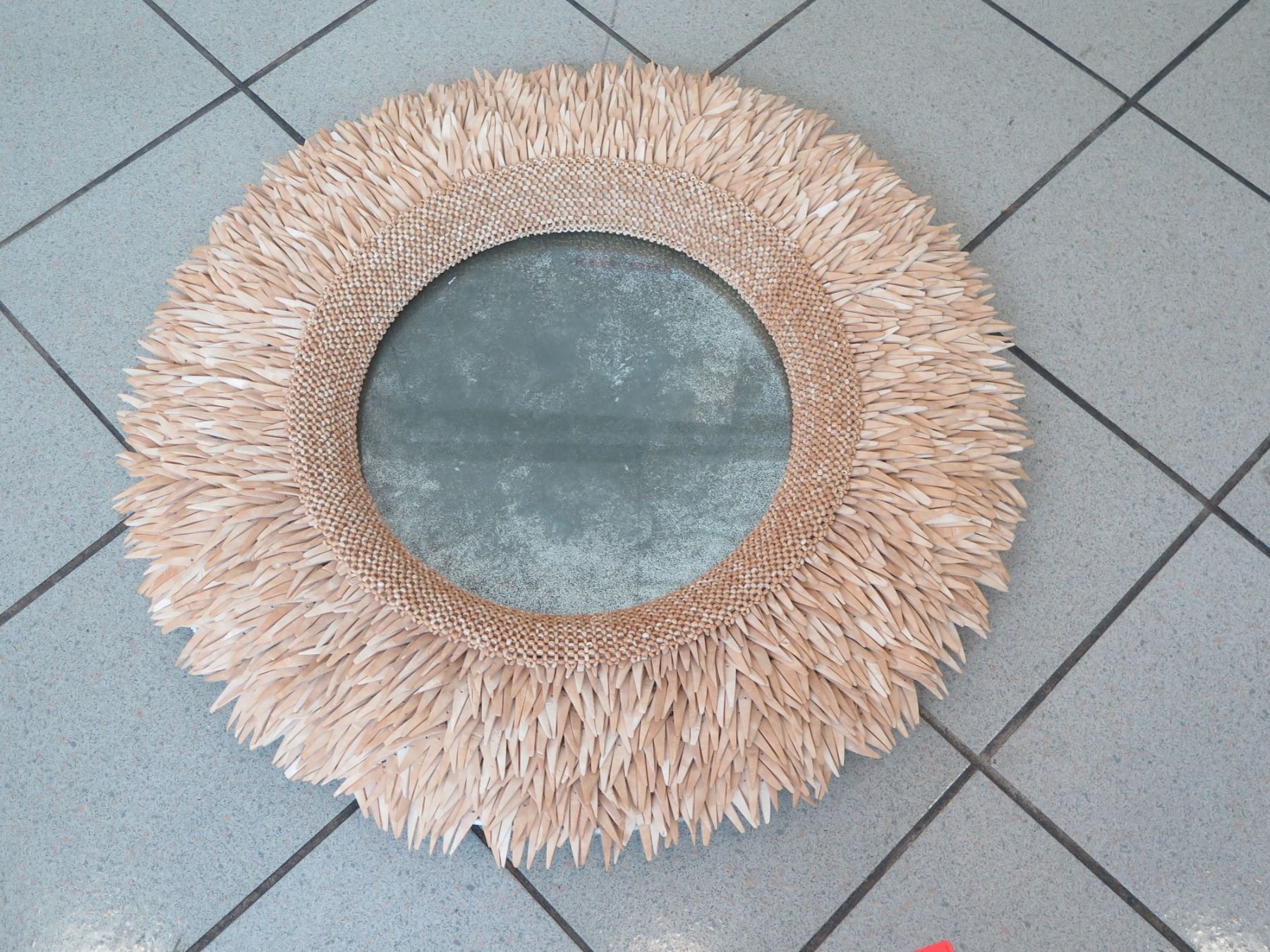 Round Mirror with Coconut Shell Fringe (mirror is tarnished), Overall Diameter 30"
