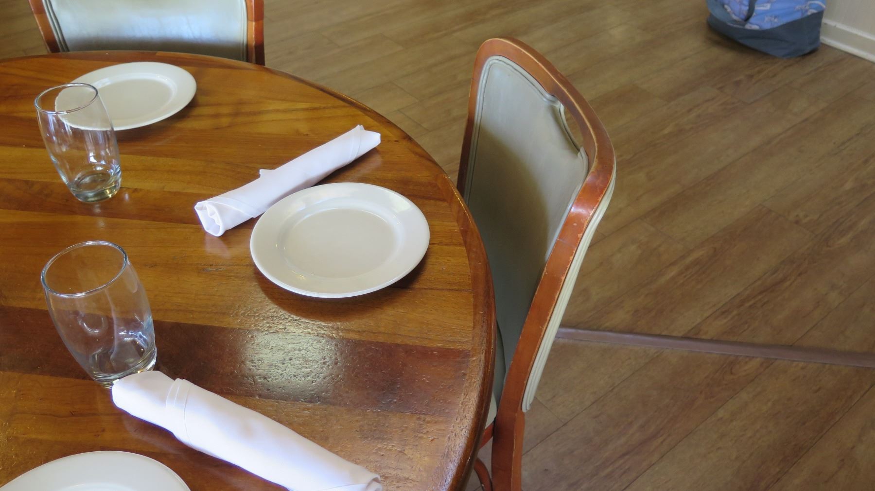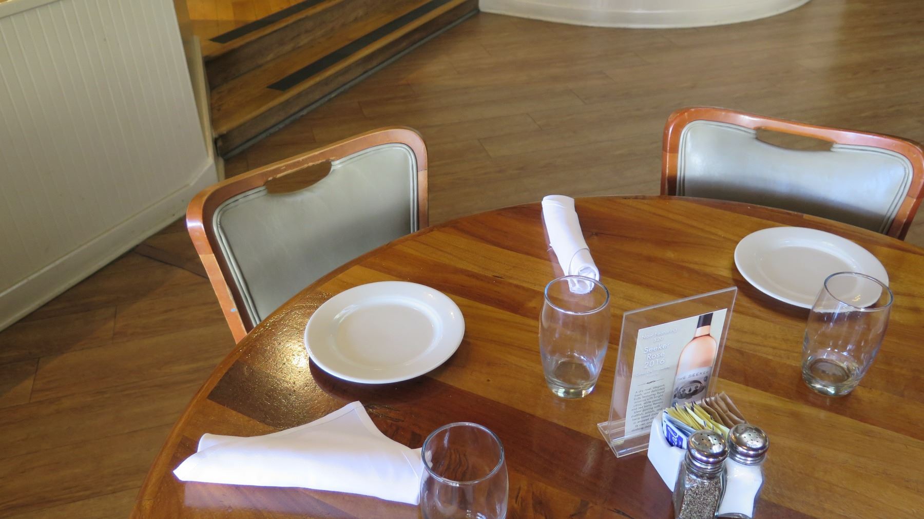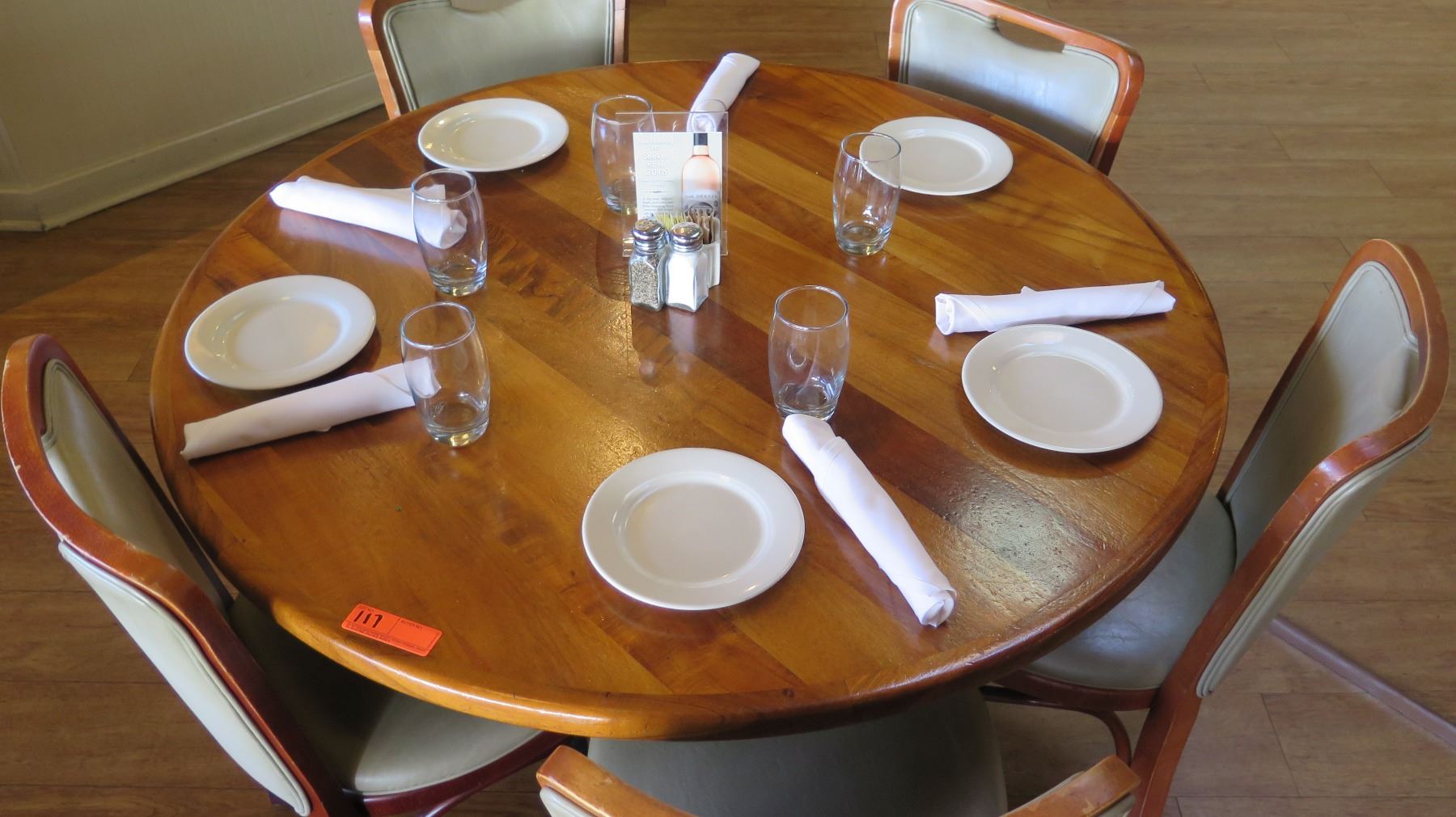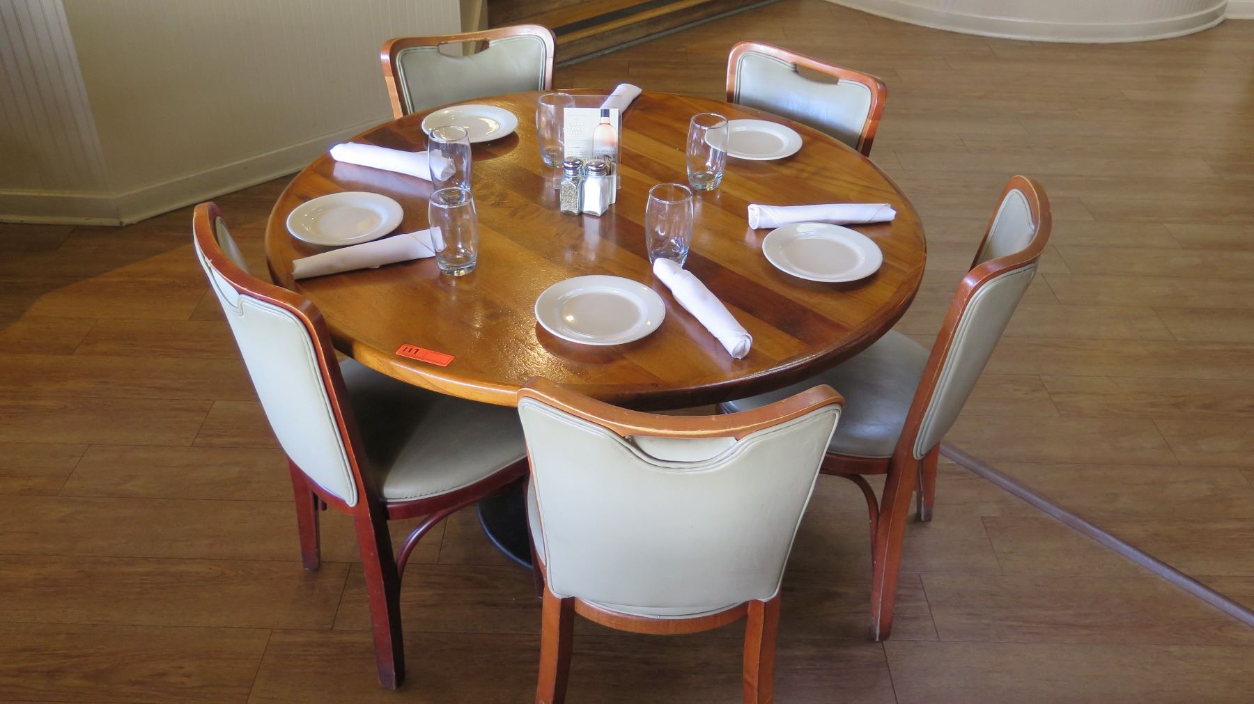 Round Natural Koa Wood Table w/Rounded Base (46" x 29") w/5 Chairs