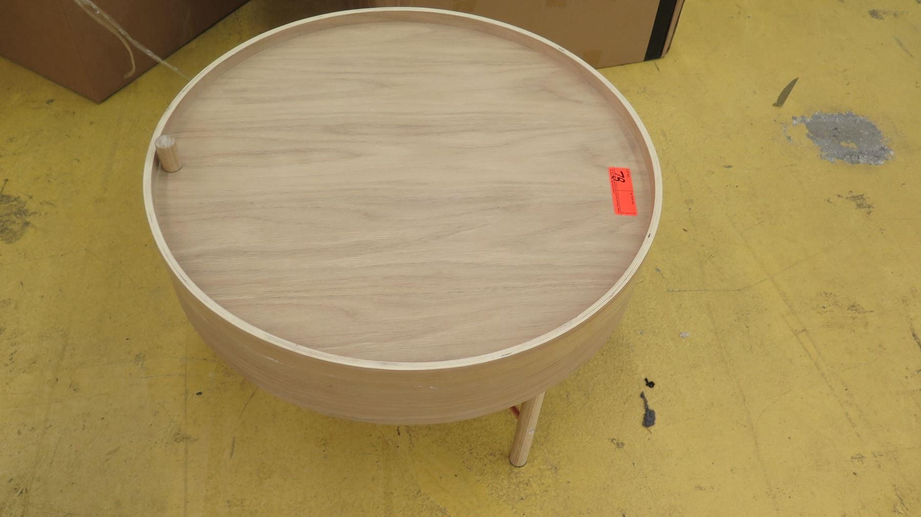 Round Natural Wood Side Table w/Storage Compartment, 25.5" Dia., 14.5" H