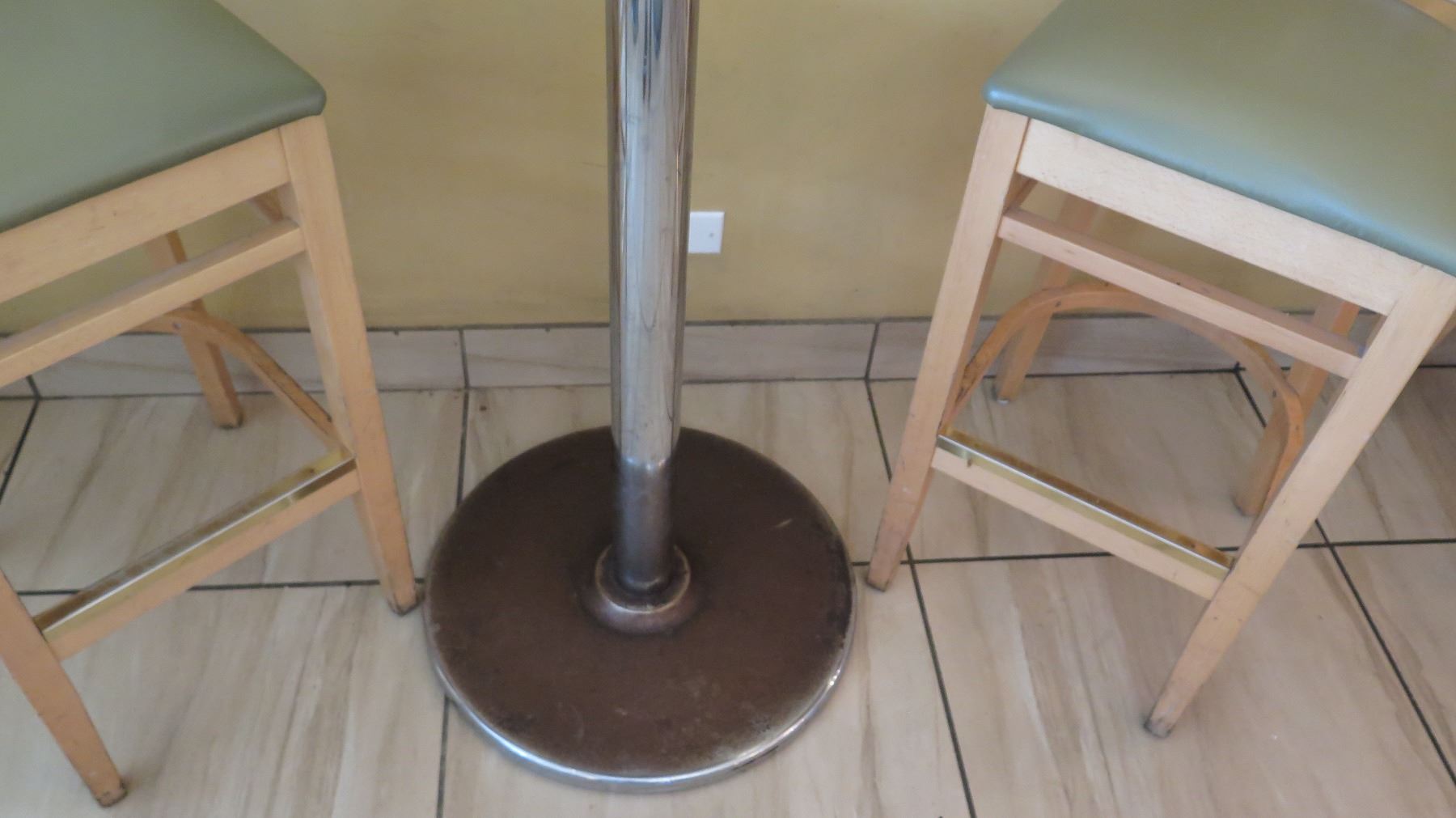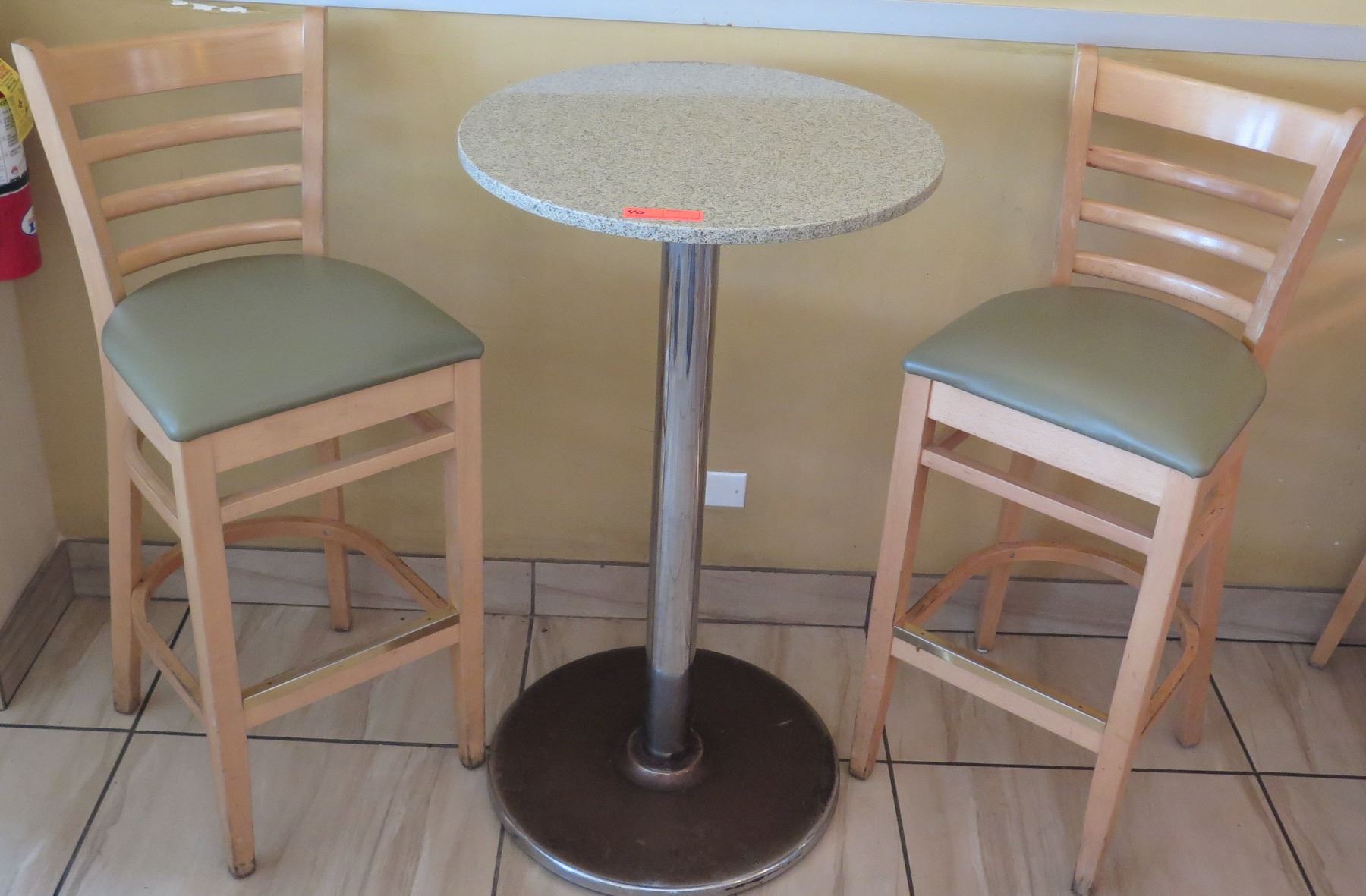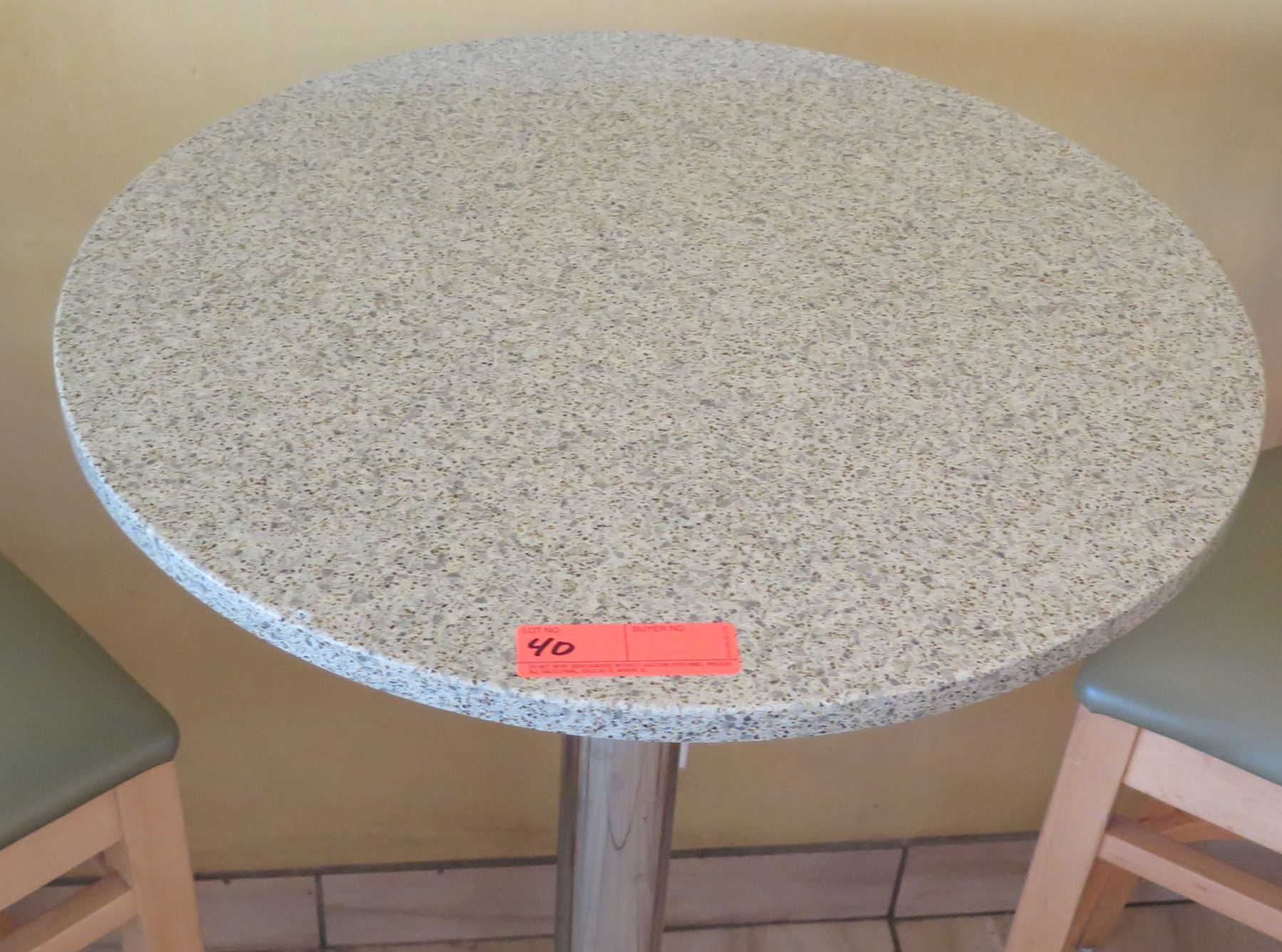 Round Sand Colored Granite Bar Height Table (23.5" Dia, 42" H) & Two Waymar Chairs
