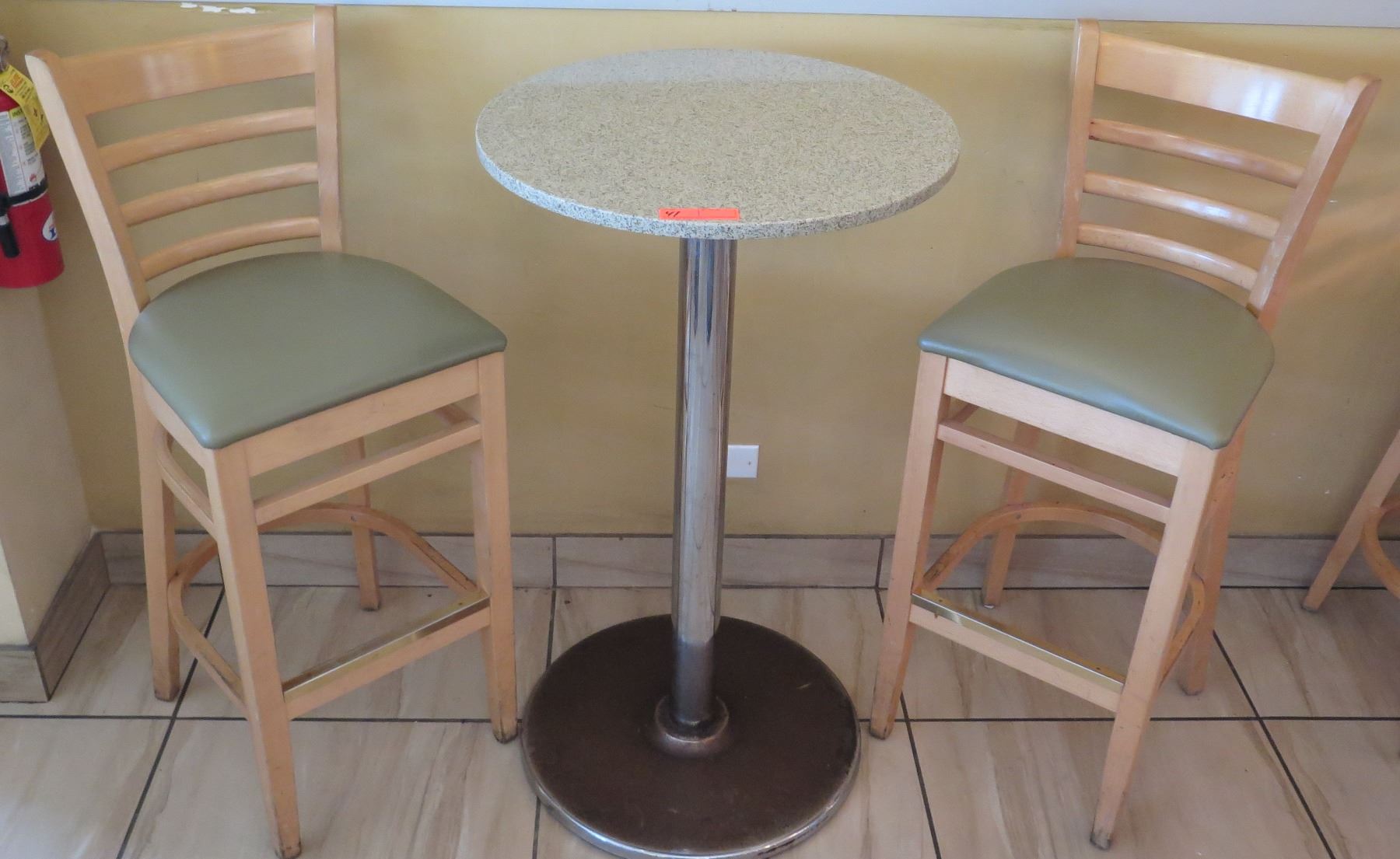 Round Sand Colored Granite Bar Height Table (23.5" Dia, 42" H) & Two Waymar Chairs