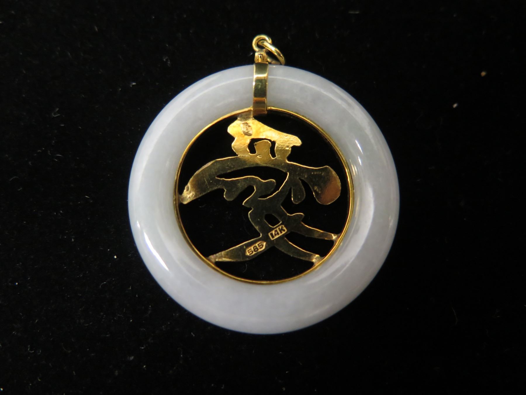 Round Stone Pendant w/ Gold 14K Asian Design Pendant (36mm)
