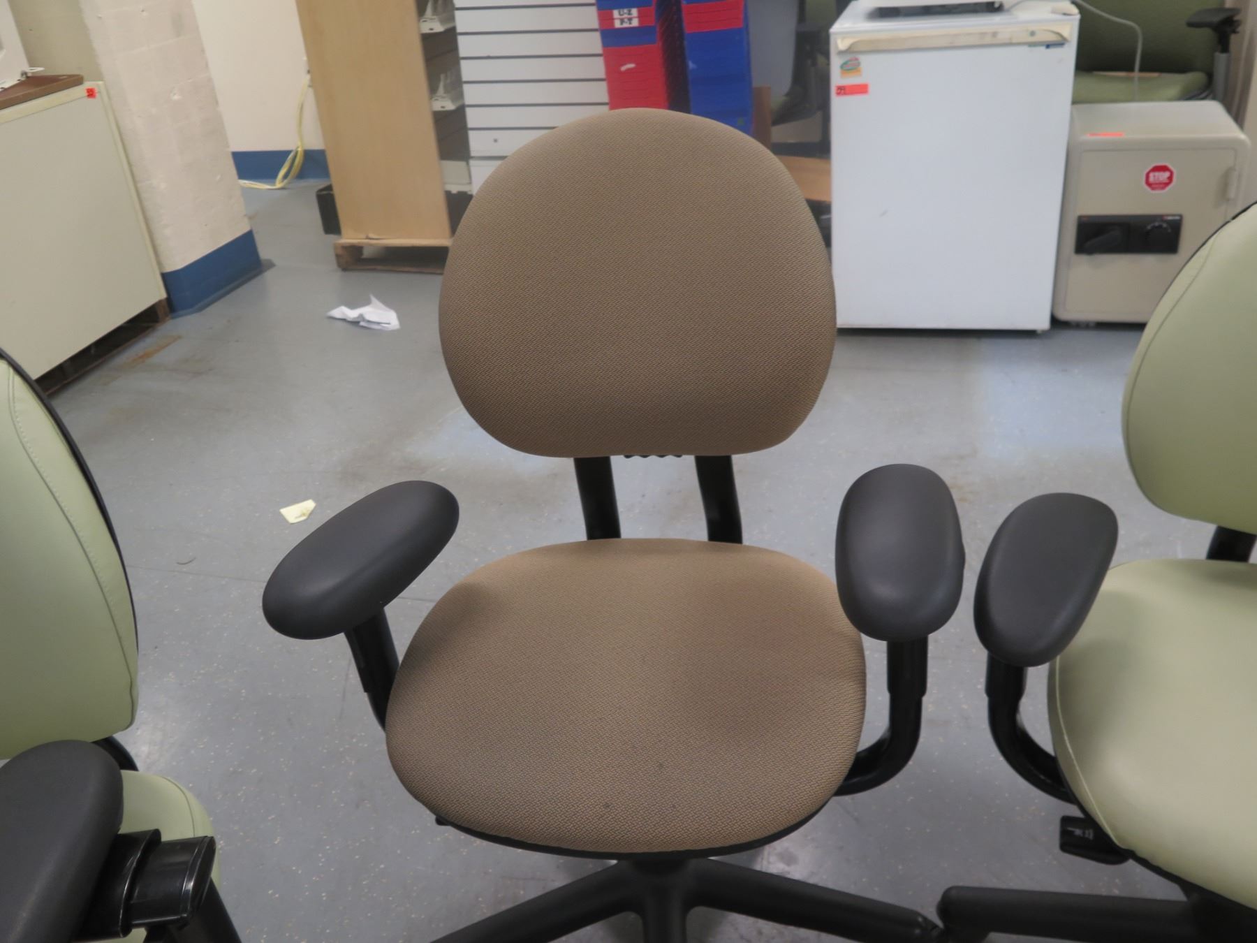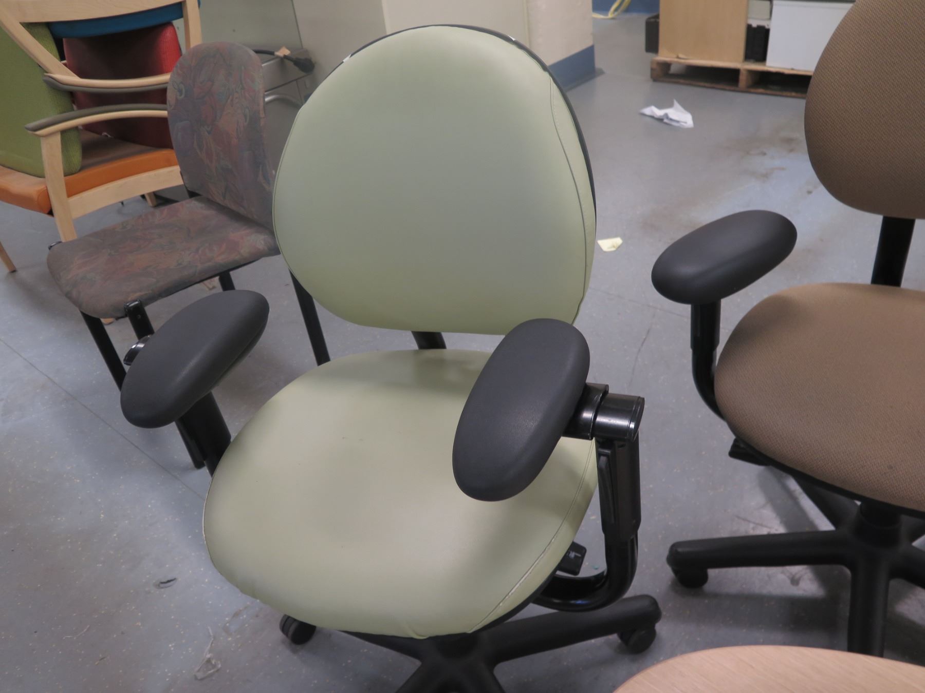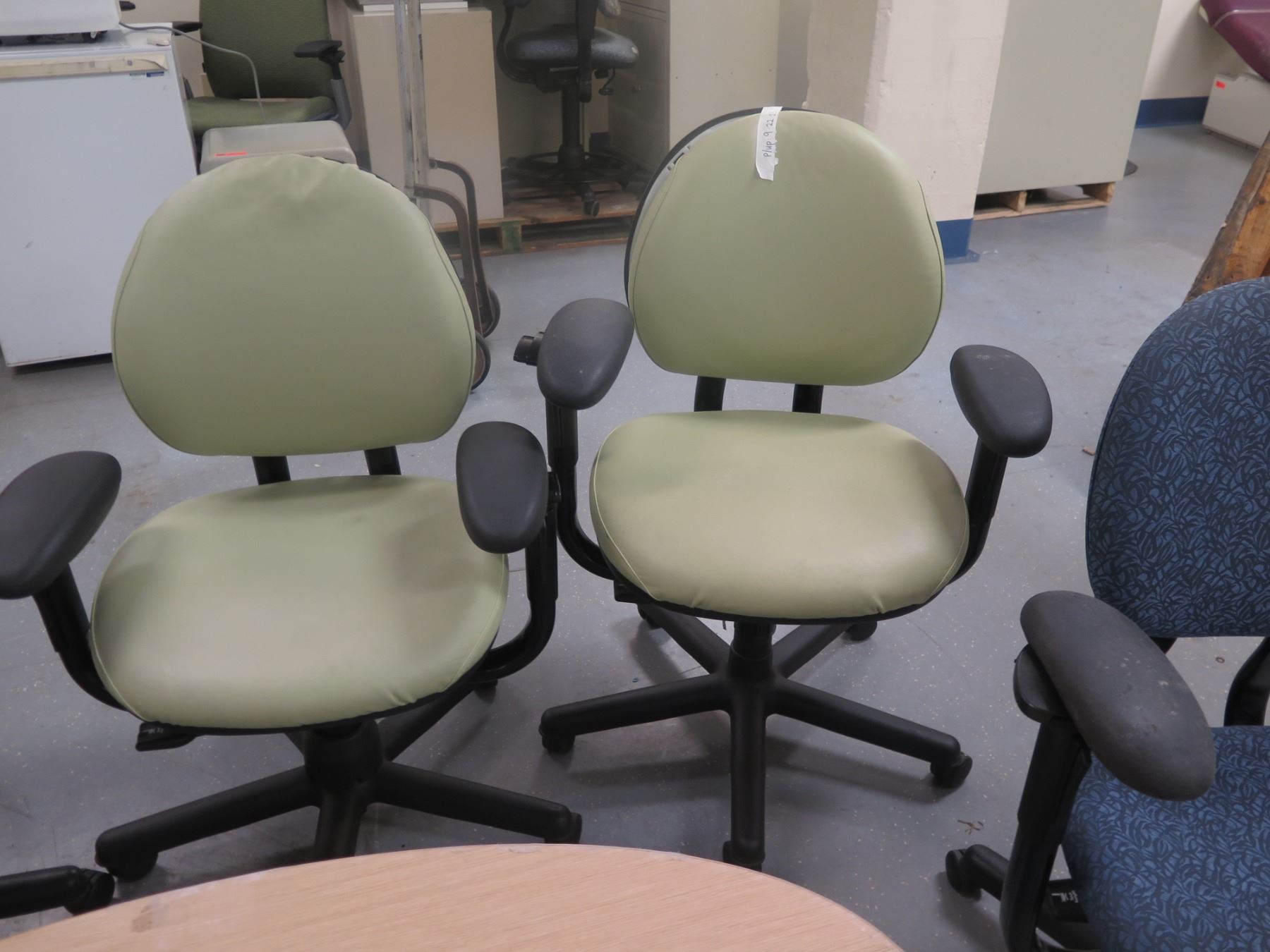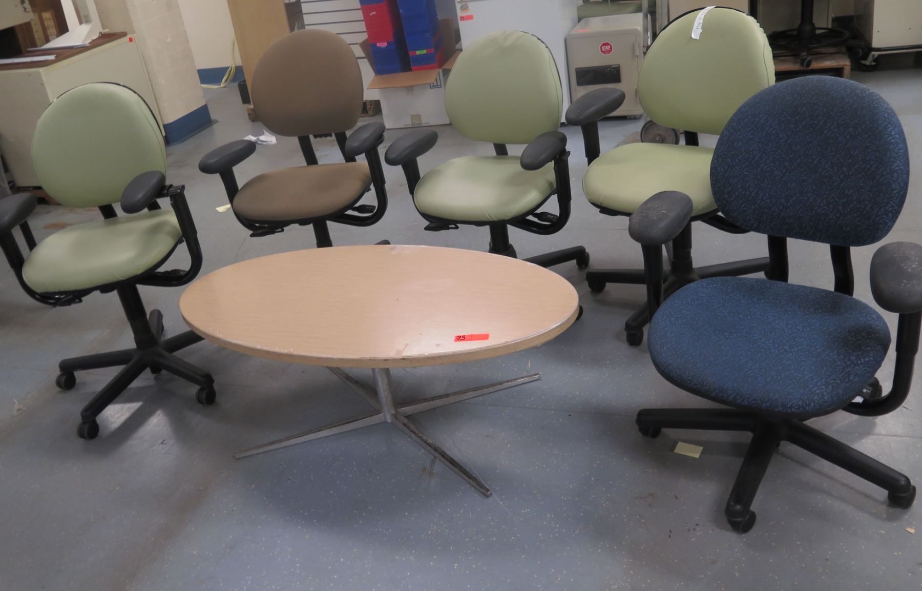 Round Table & 5 Rolling Office Armchairs w/ Upholstered Backs & Seats, Misc Styles & Sizes