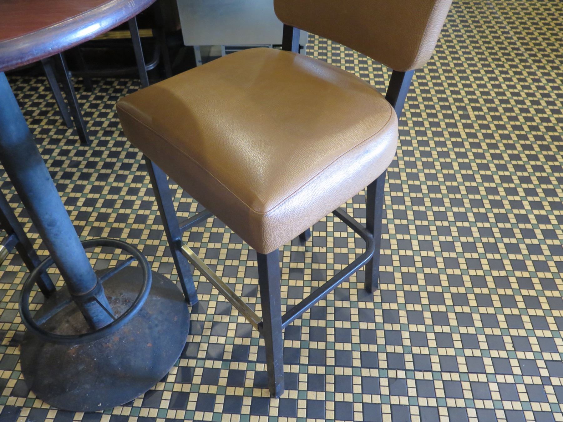 Round Table on Metal Pedestal Base 30" dia, 42"H w/ 2 Chairs 18"x18"x46"H. This is a stock photo, representative of item. Condition may vary.