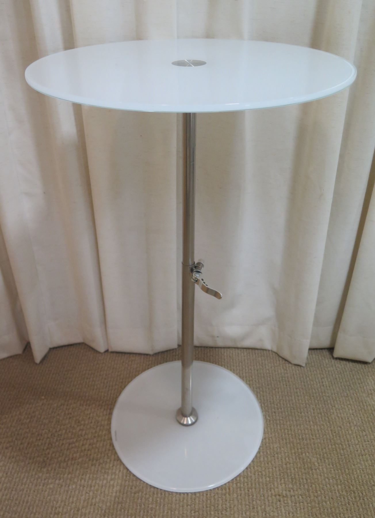 Round Tempered Glass Pedestal Table 17" Dia, Adjustable HeightHeight
