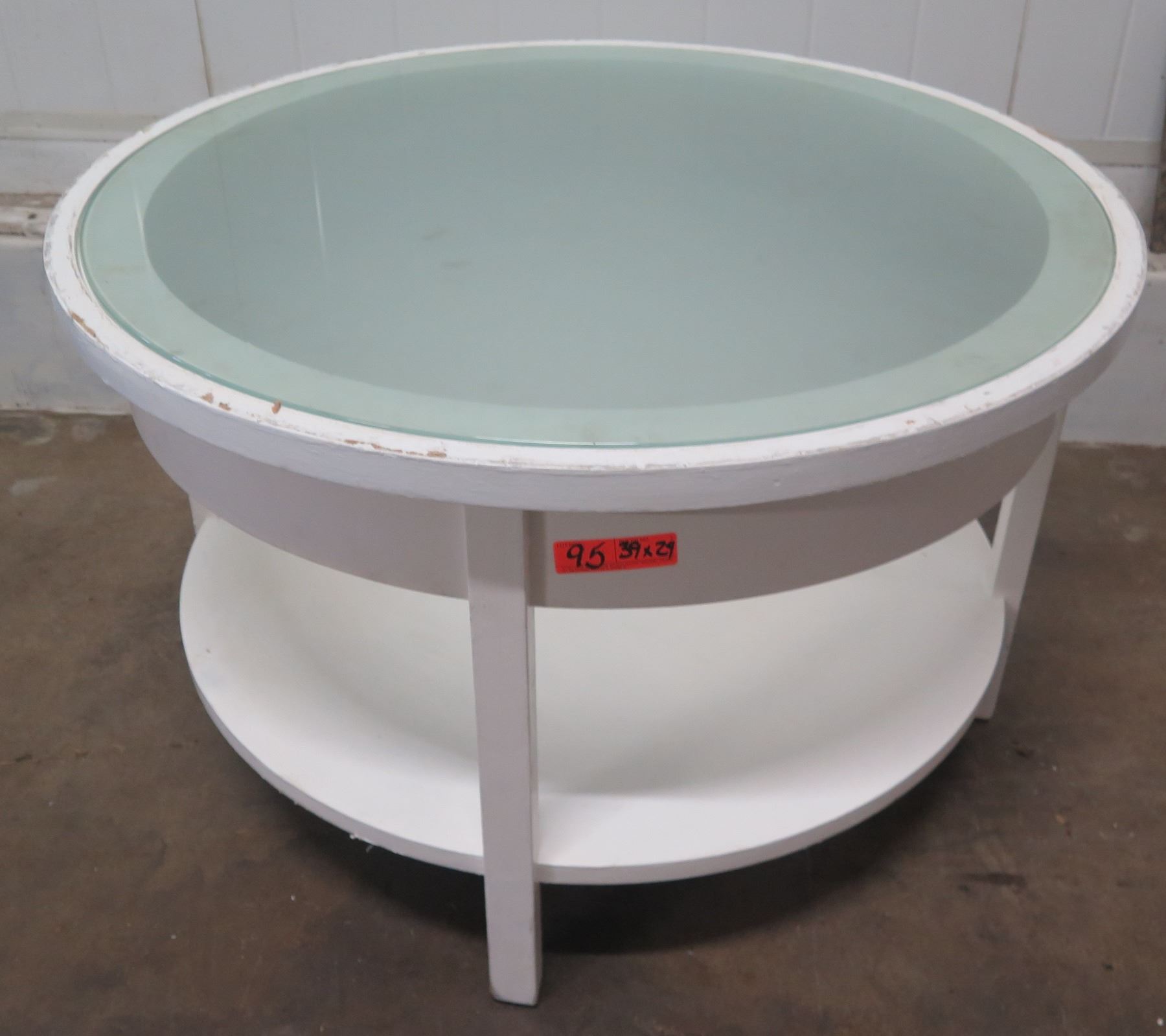 Round White Side Table w/ Undershelf 39  Diameter x 24 H