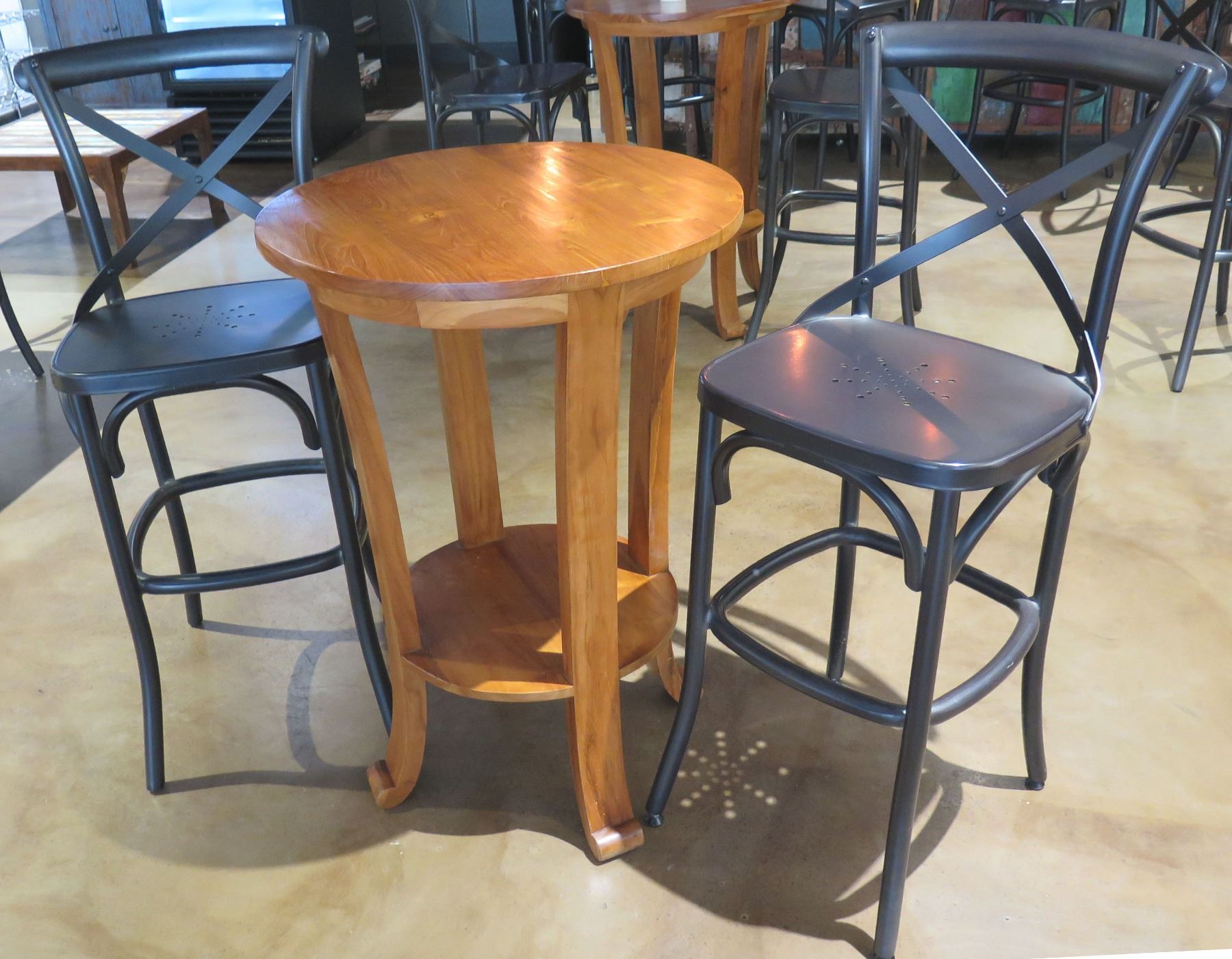 Round Wooden Pub Table from Bali Boo & 2 Stools w/ Foot Rests 20"x17"x40"H