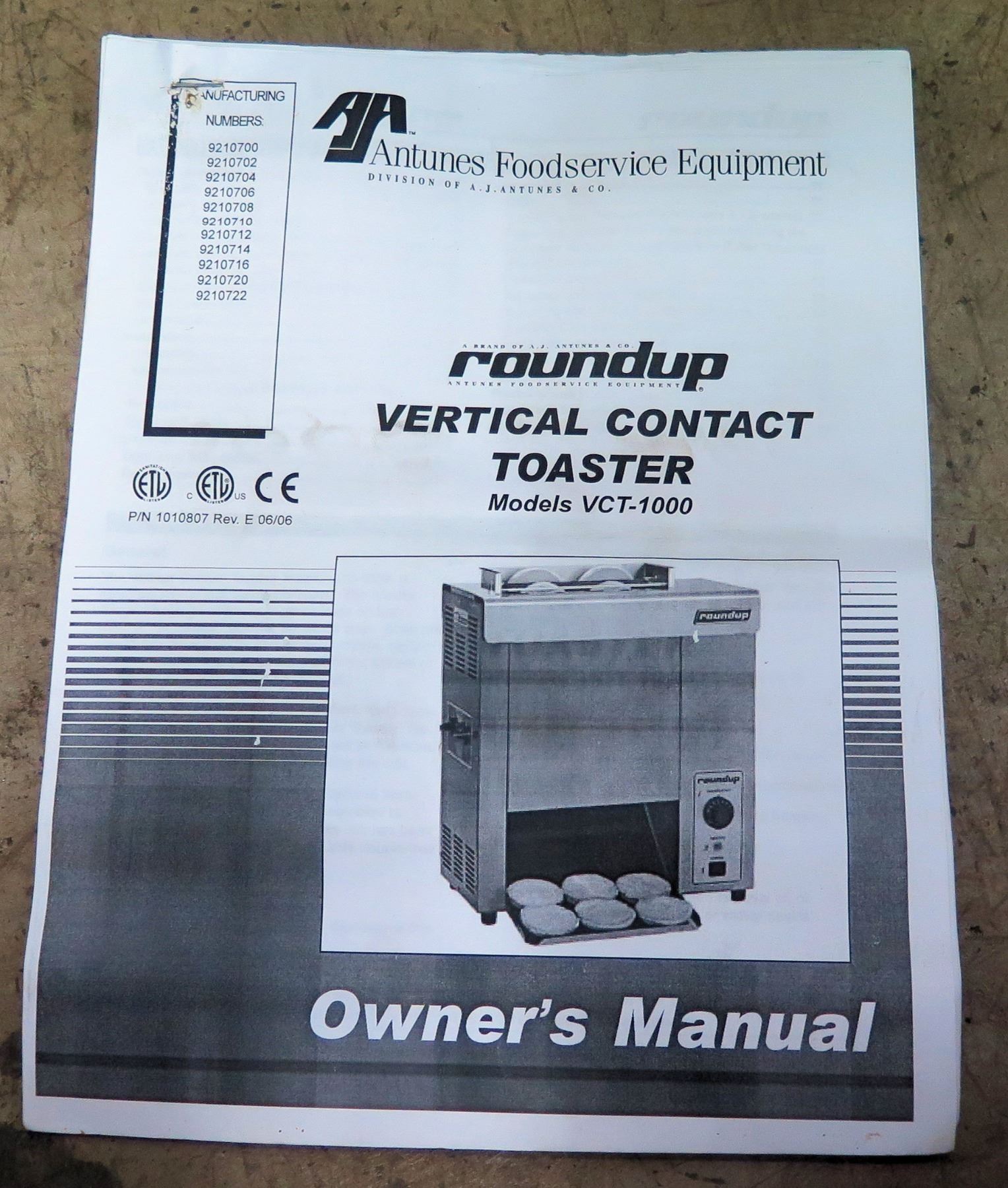 Roundup VCT-1000 Vertical Contact Toaster w/ Instruction Manual