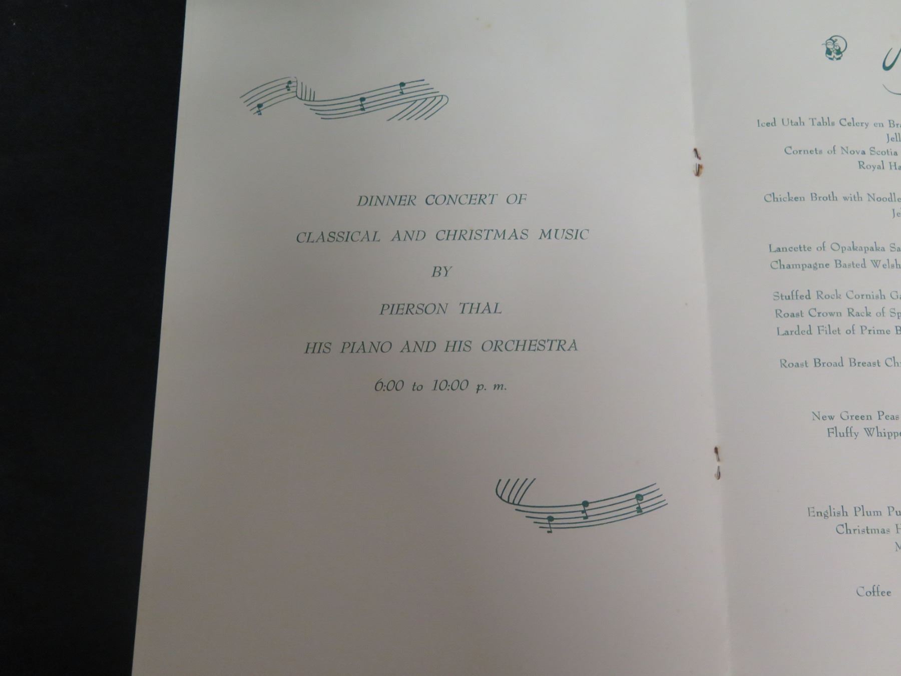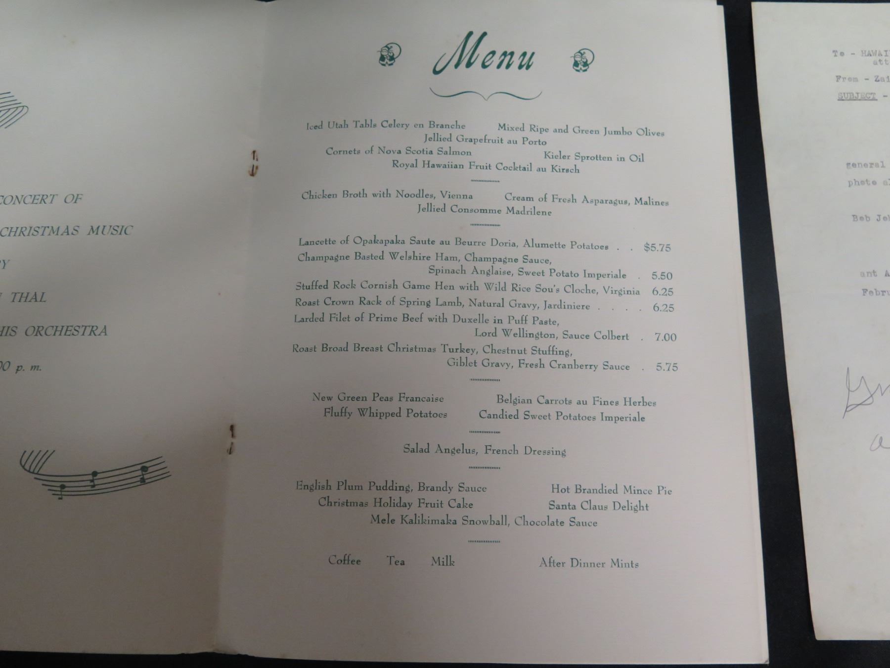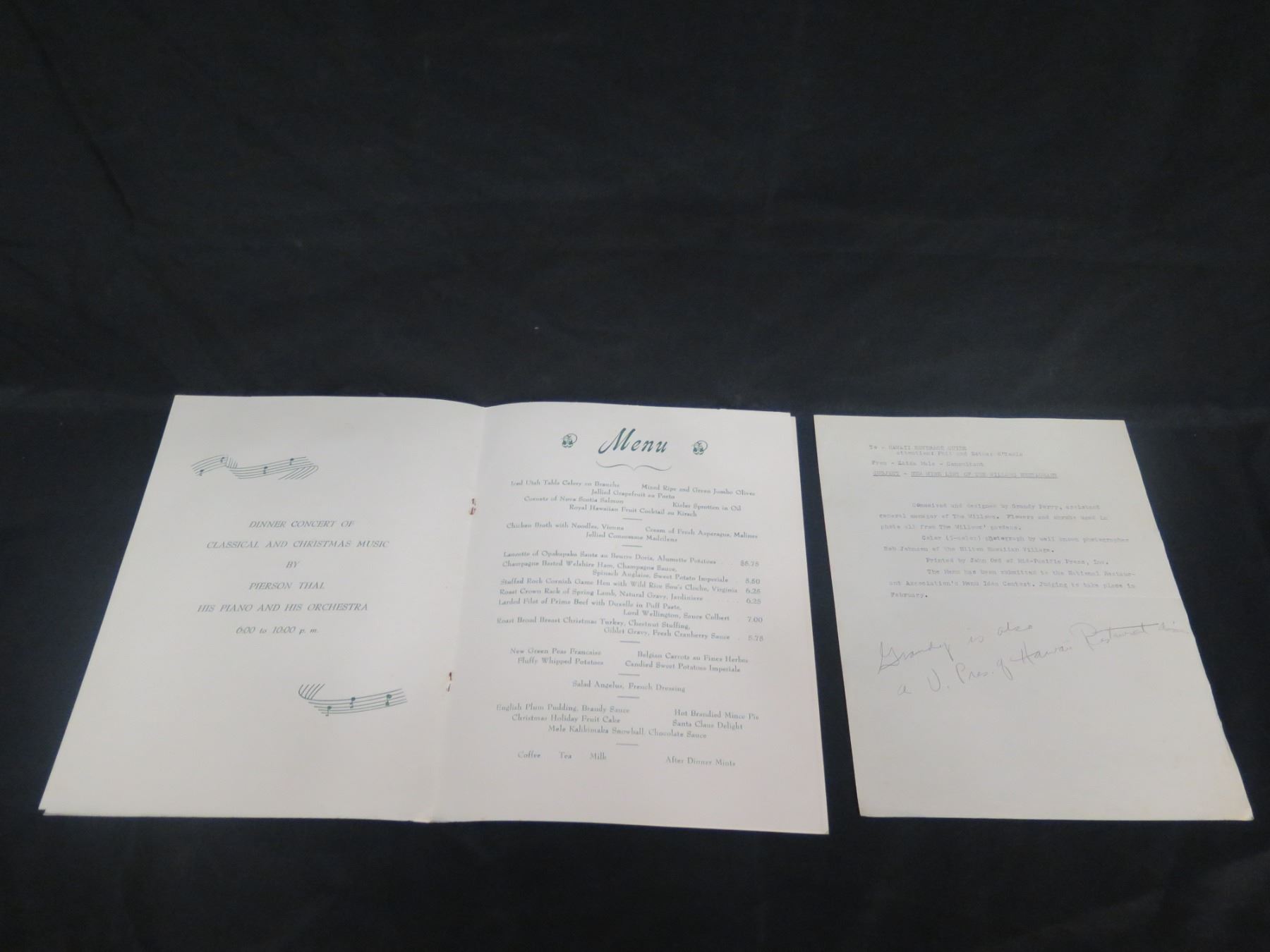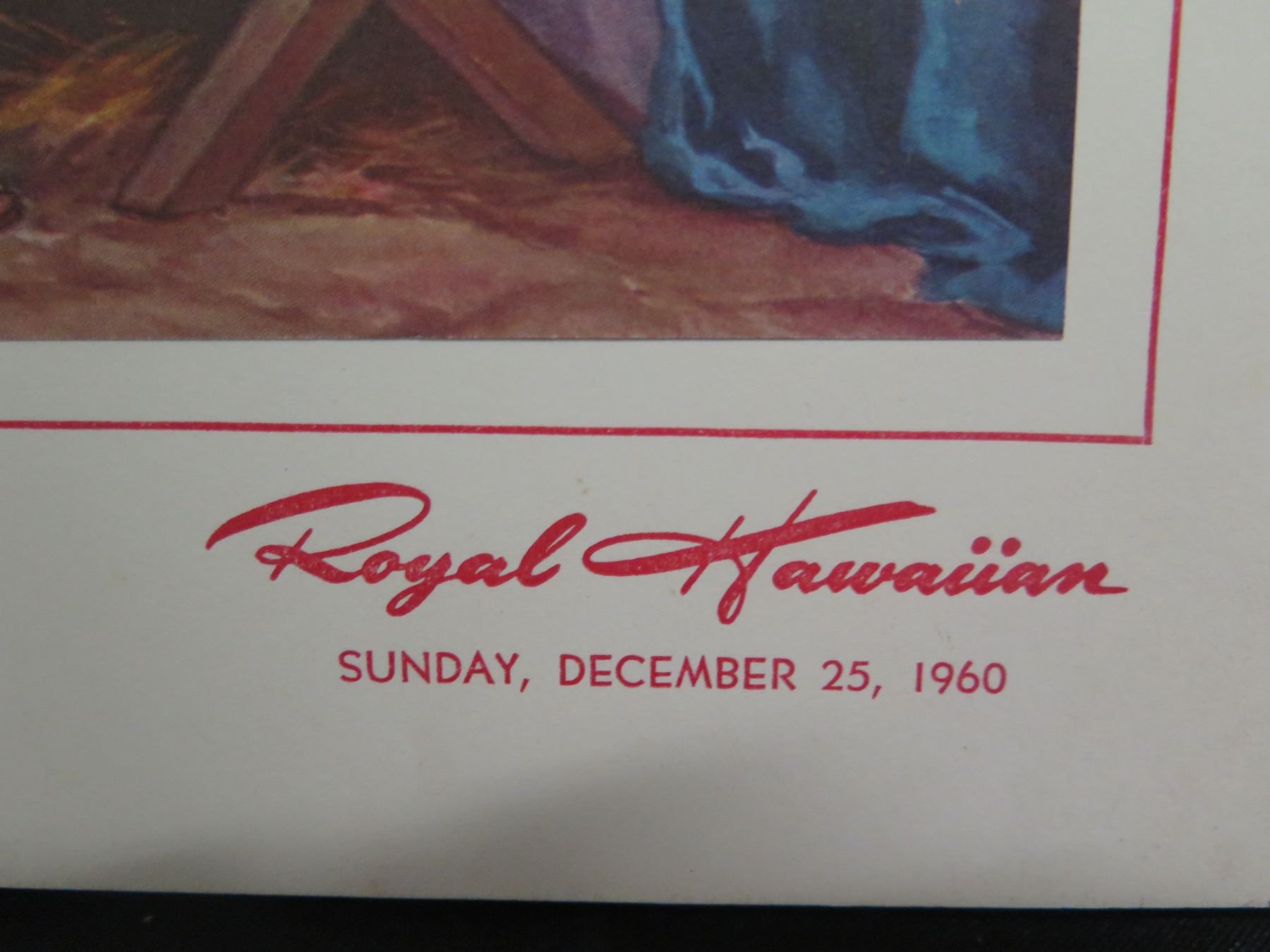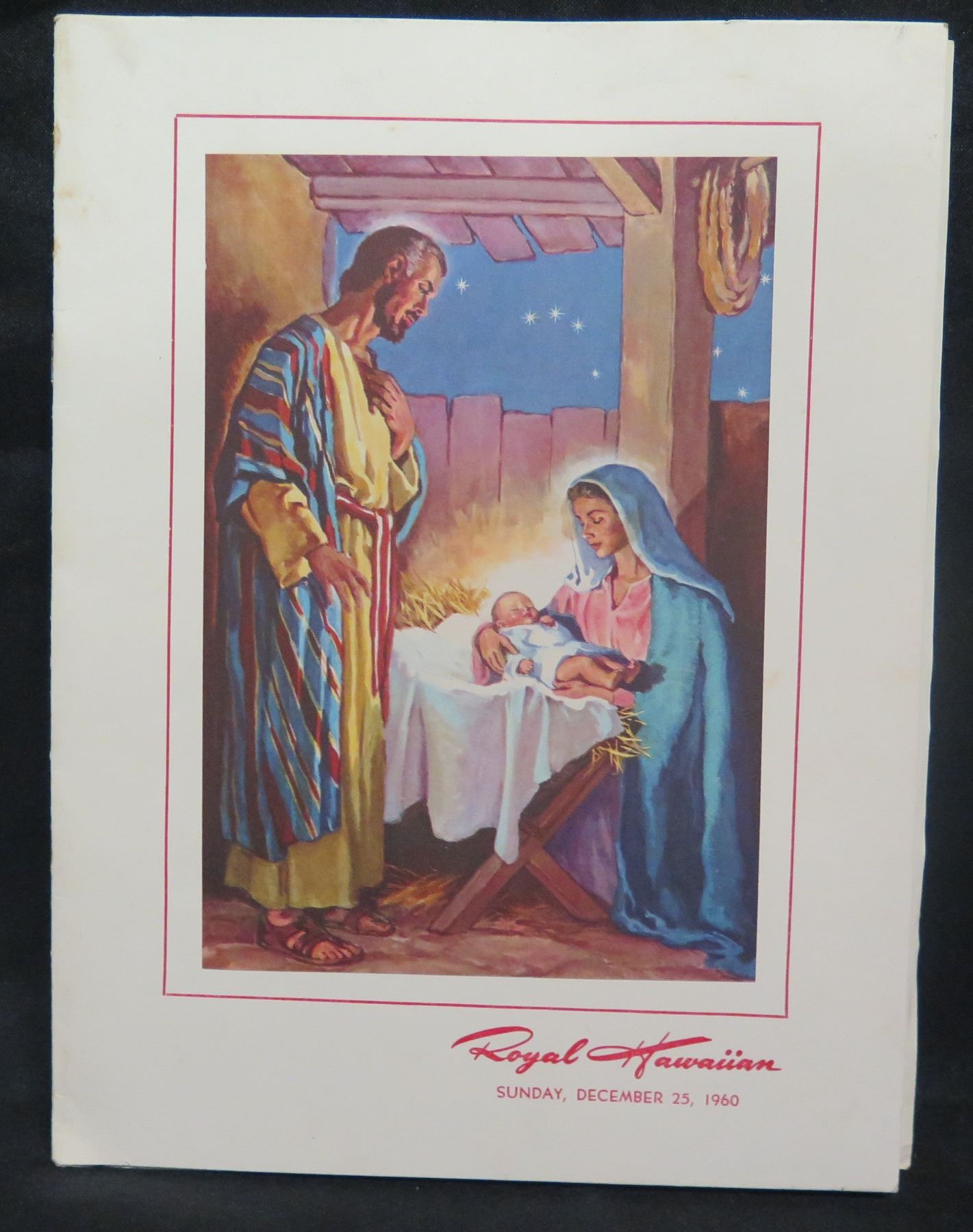 Royal Hawaiian Christmas Menu Dec 25, 1960 w/ Dinner Concert, Signed, 16"x11"