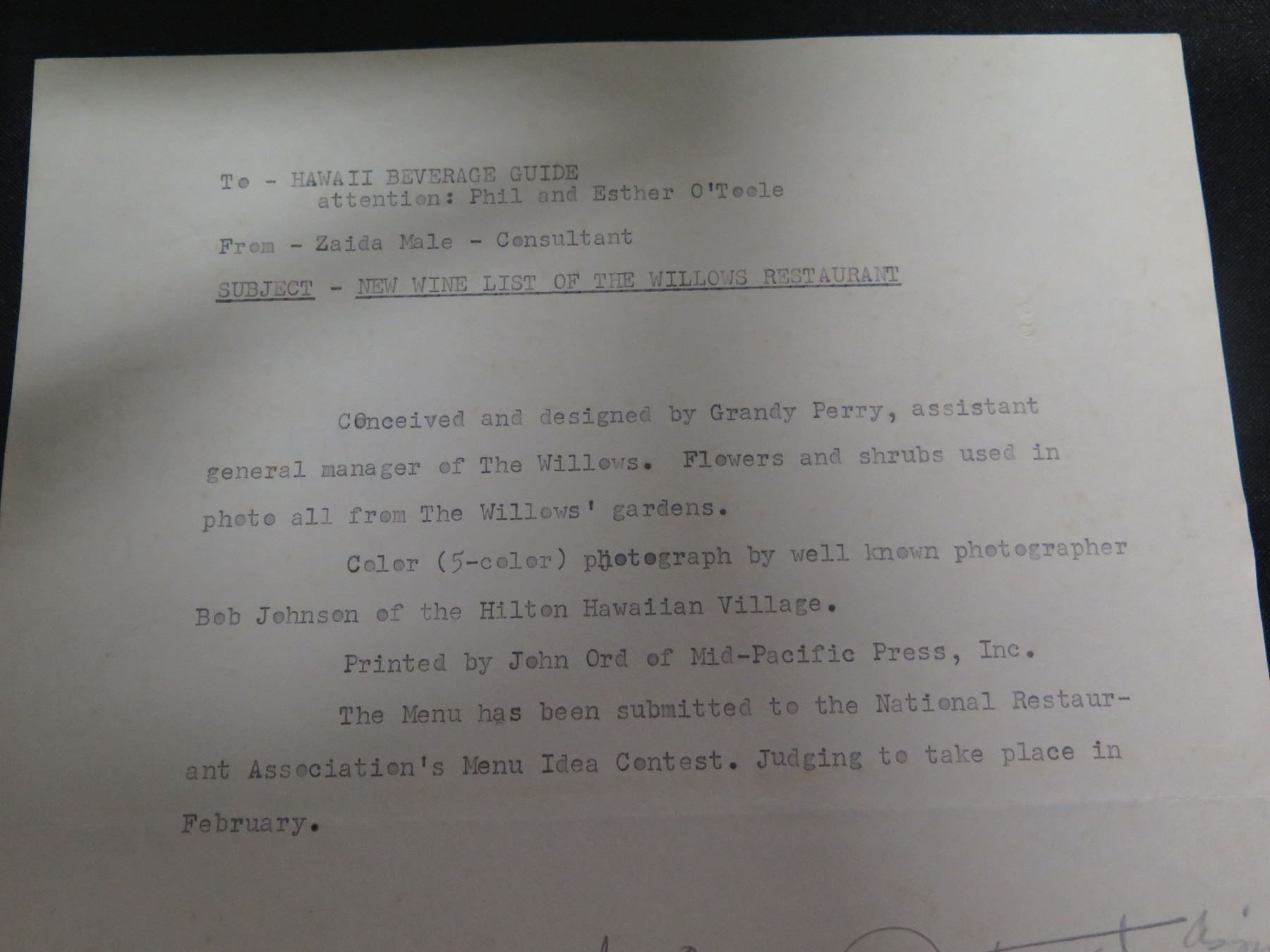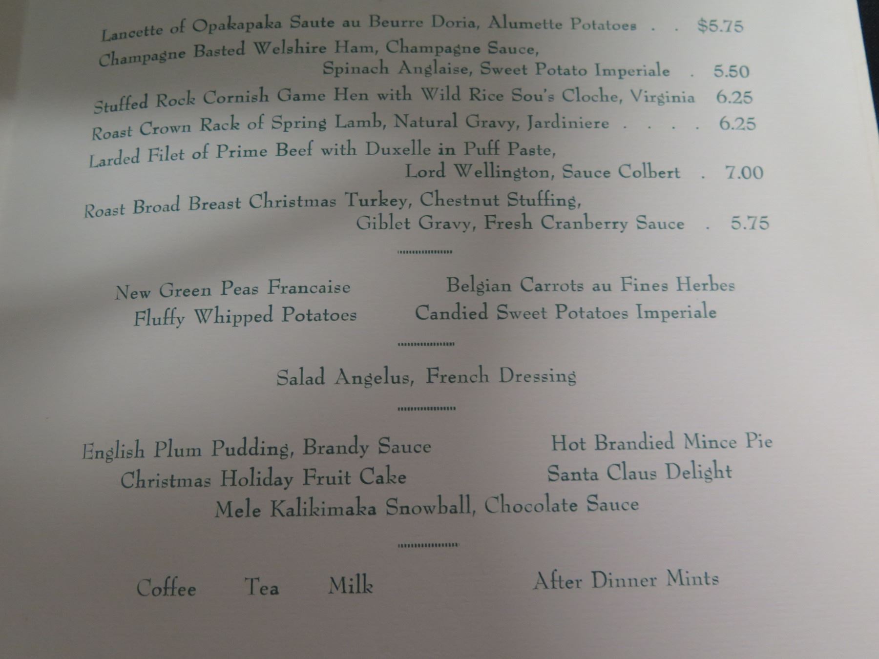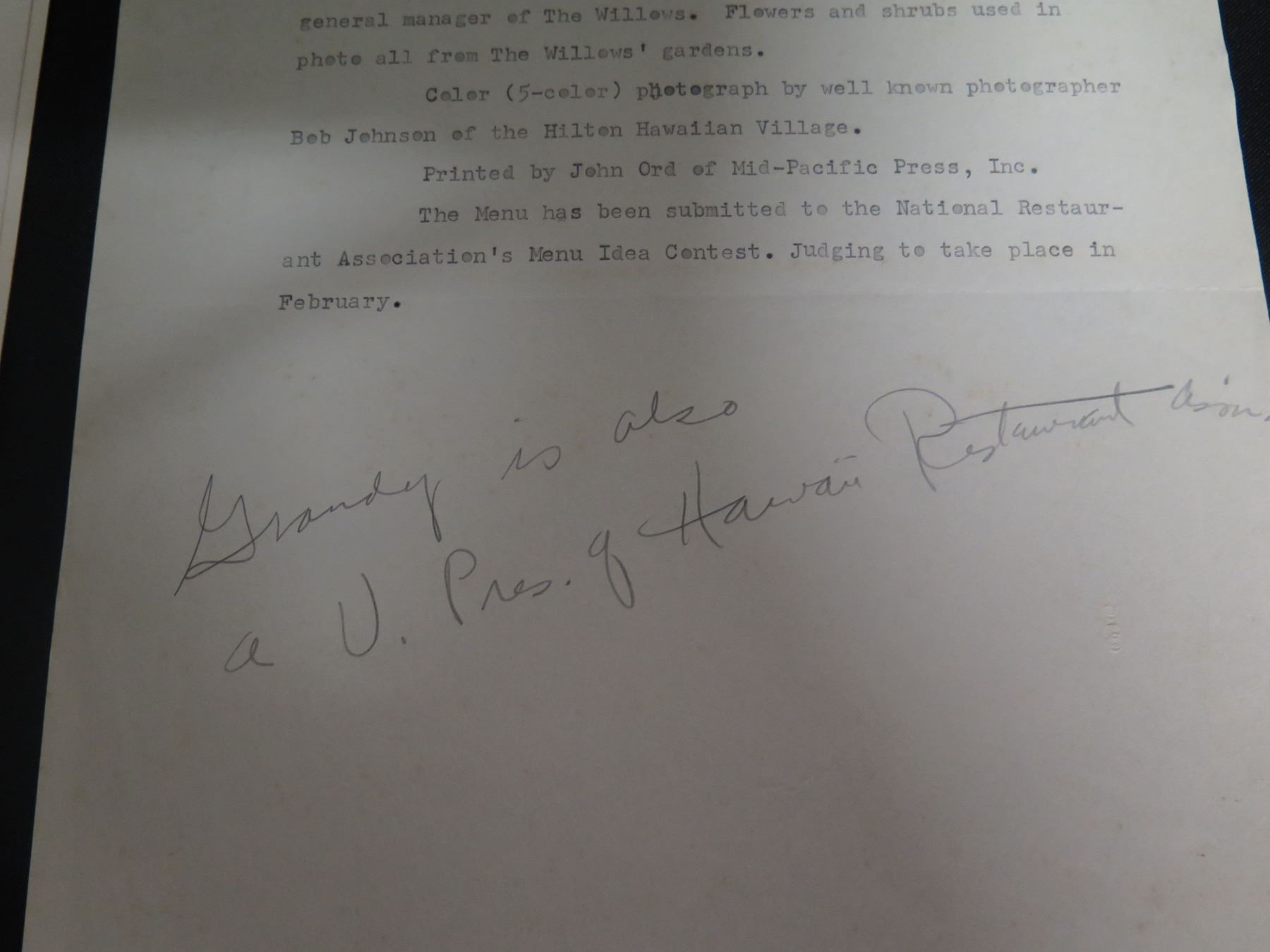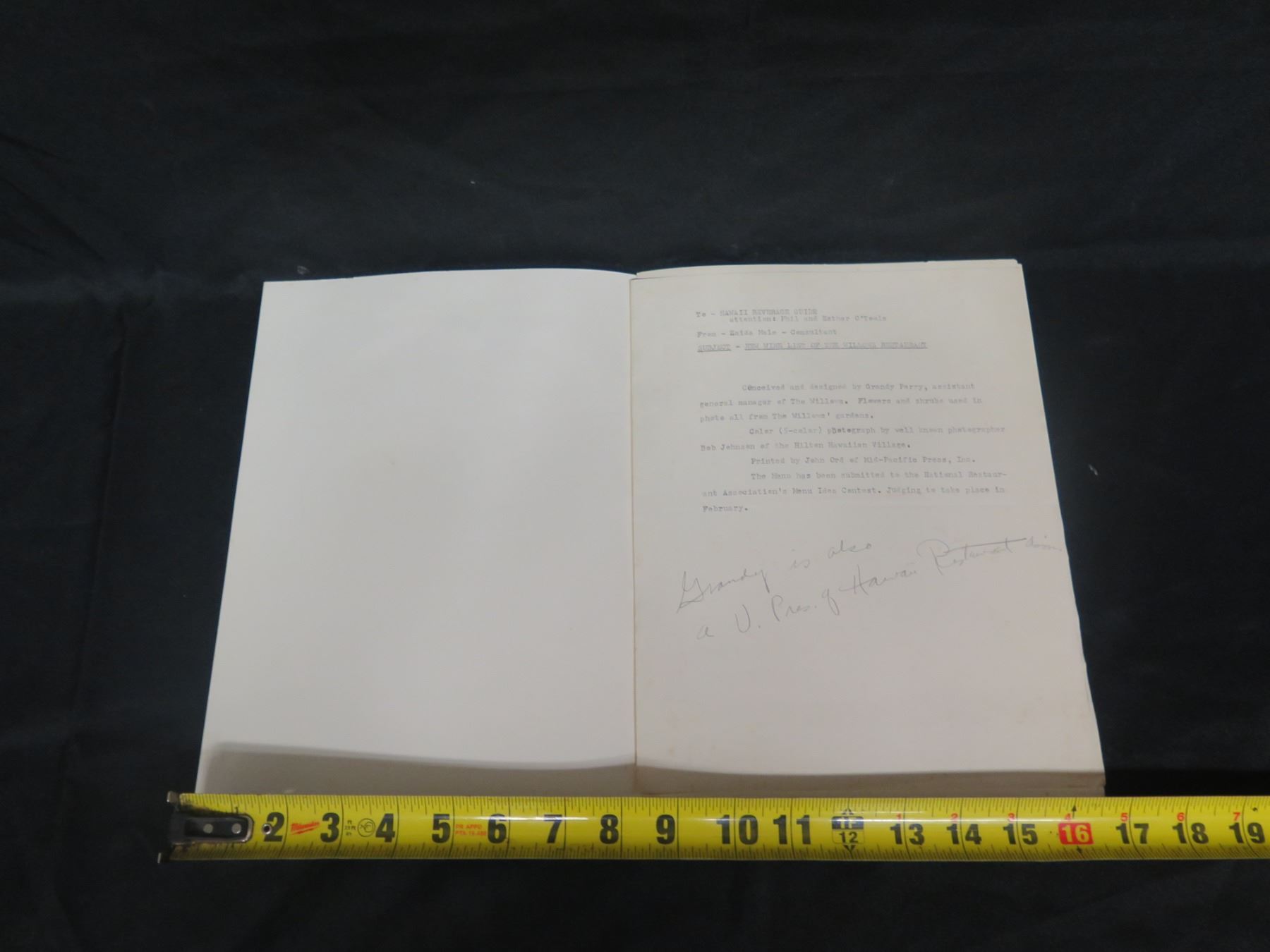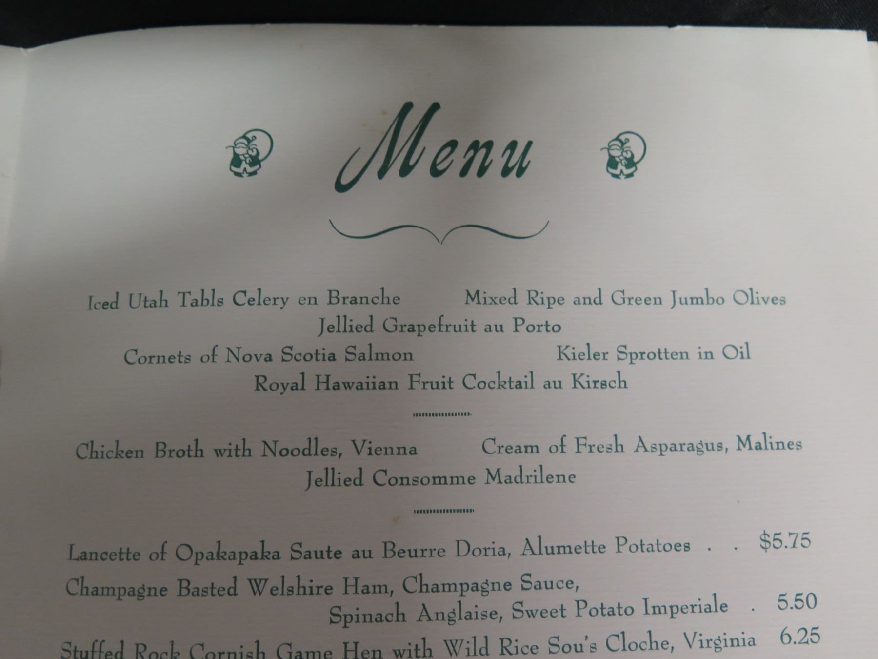 Royal Hawaiian Christmas Menu Dec 25, 1960 w/ Dinner Concert, Signed, 16"x11"