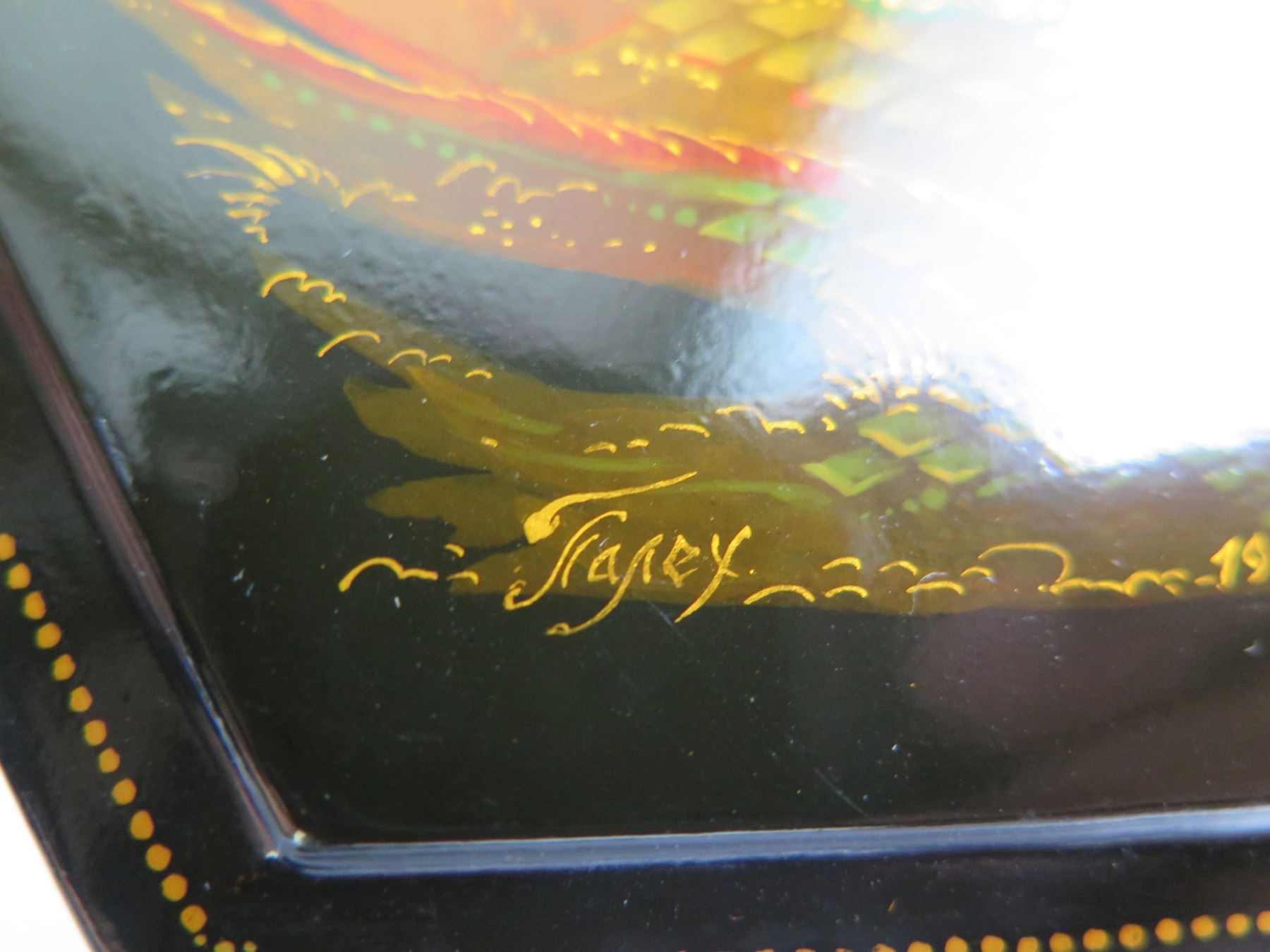 Russian Lacquer Jewelry Box, Hexagonal Hand Painted Signed, 6"W