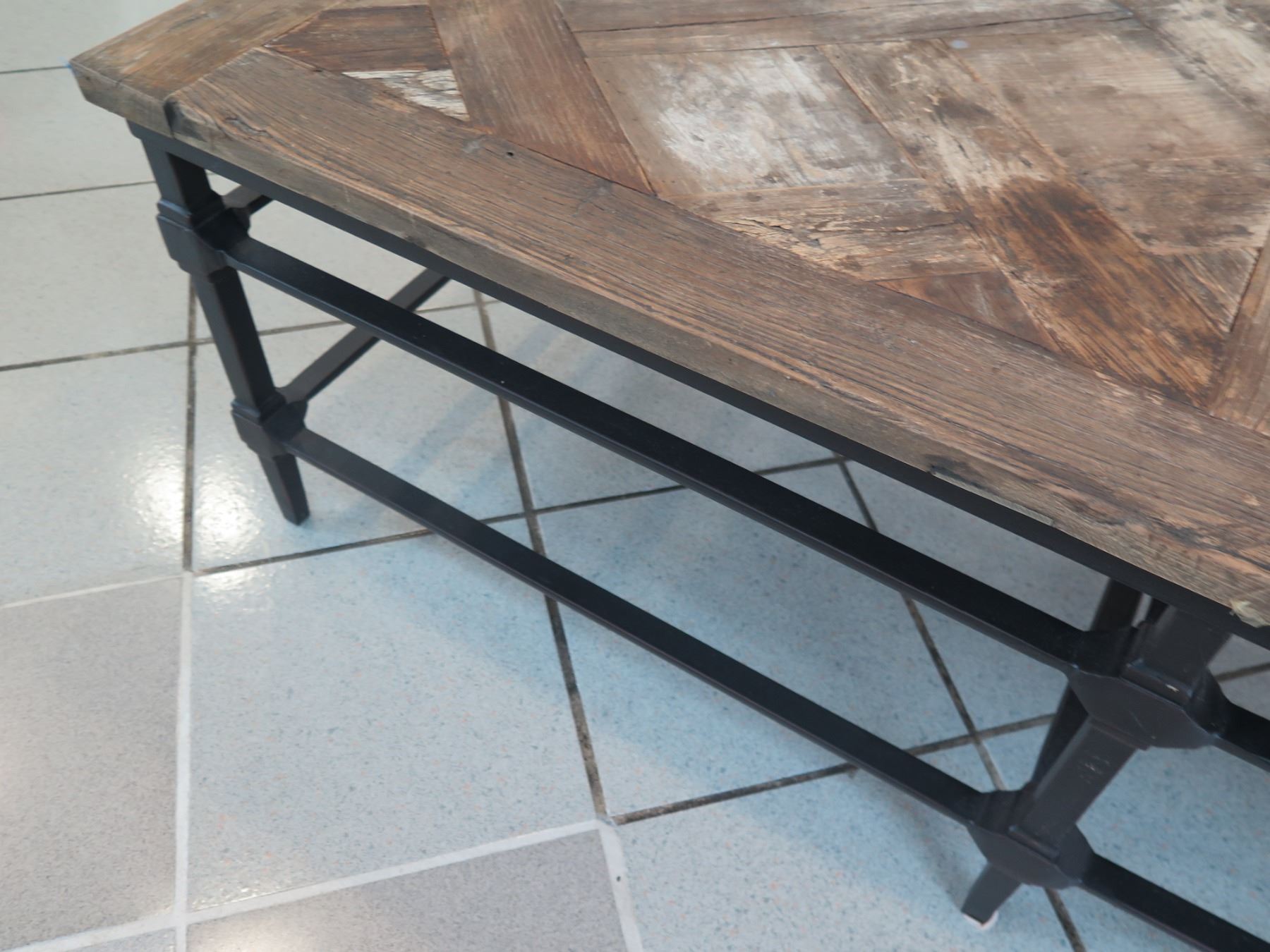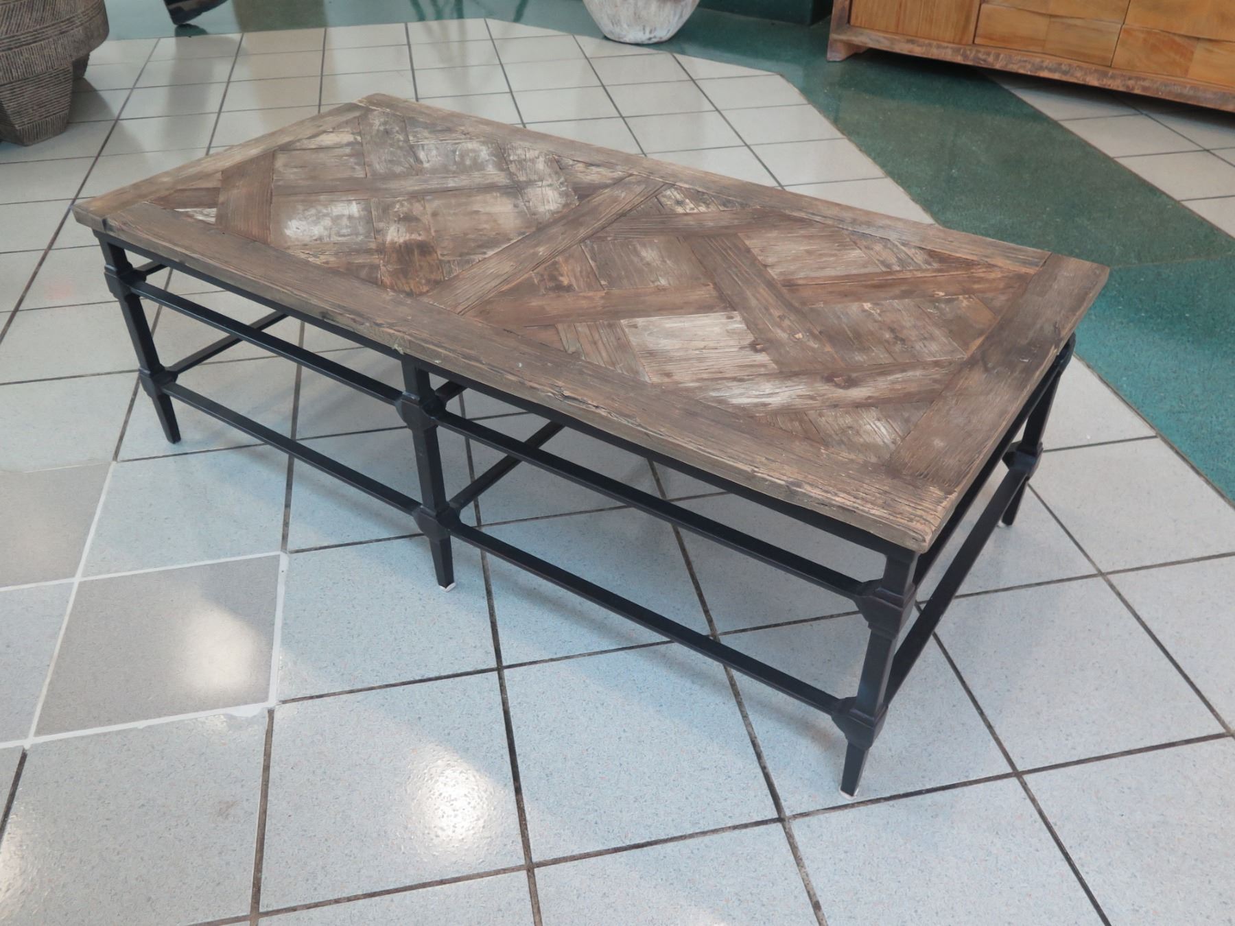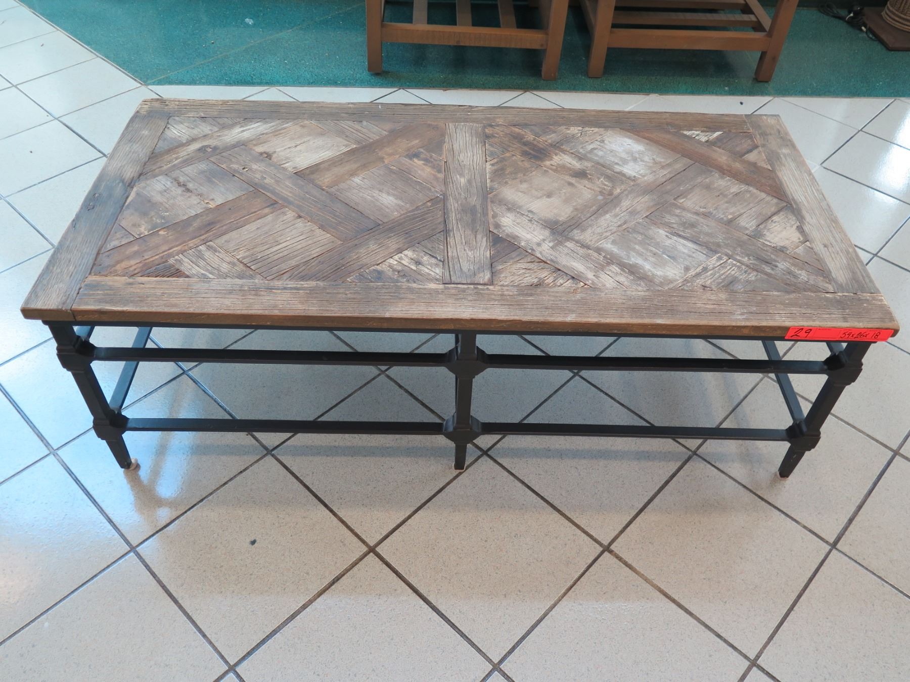 Rustic Natural Wood Coffee Table w/Cast Iron Base, Natural Finish 54" x 26" x 18"H