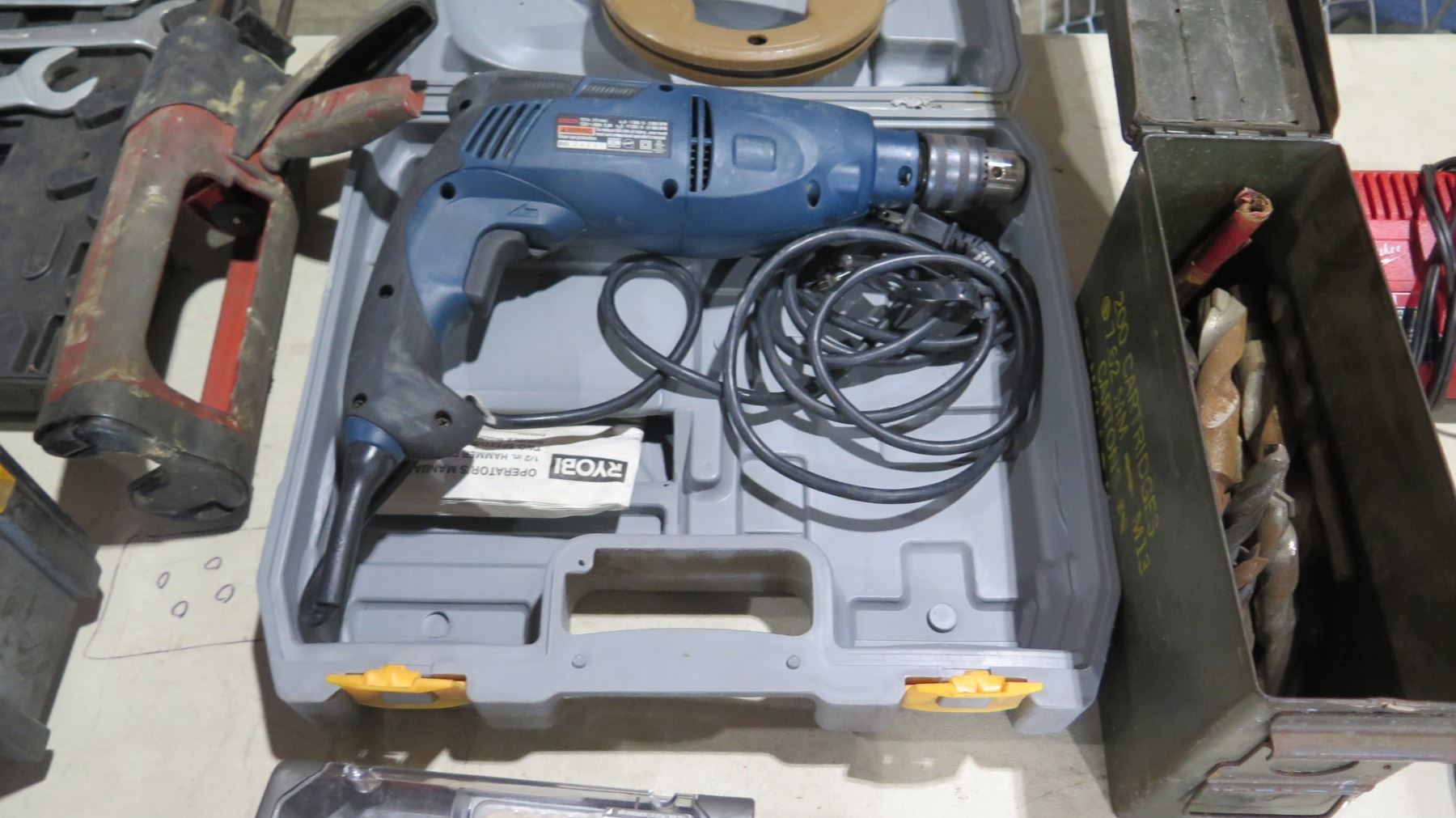 Ryobi D552H Variable Speed Hammer Drill, Tool Box, Makita Drill, Milwaukee Charger