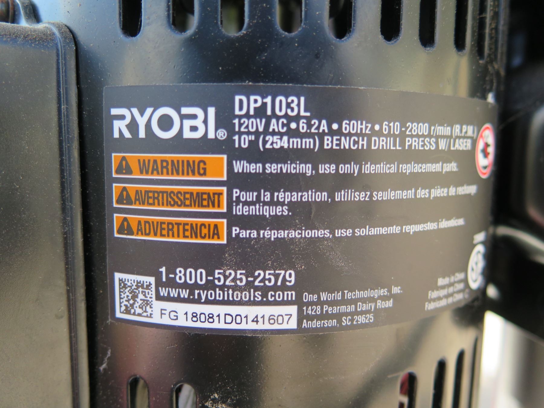 Ryobi DP103L Bench Drill Press w/ Laser