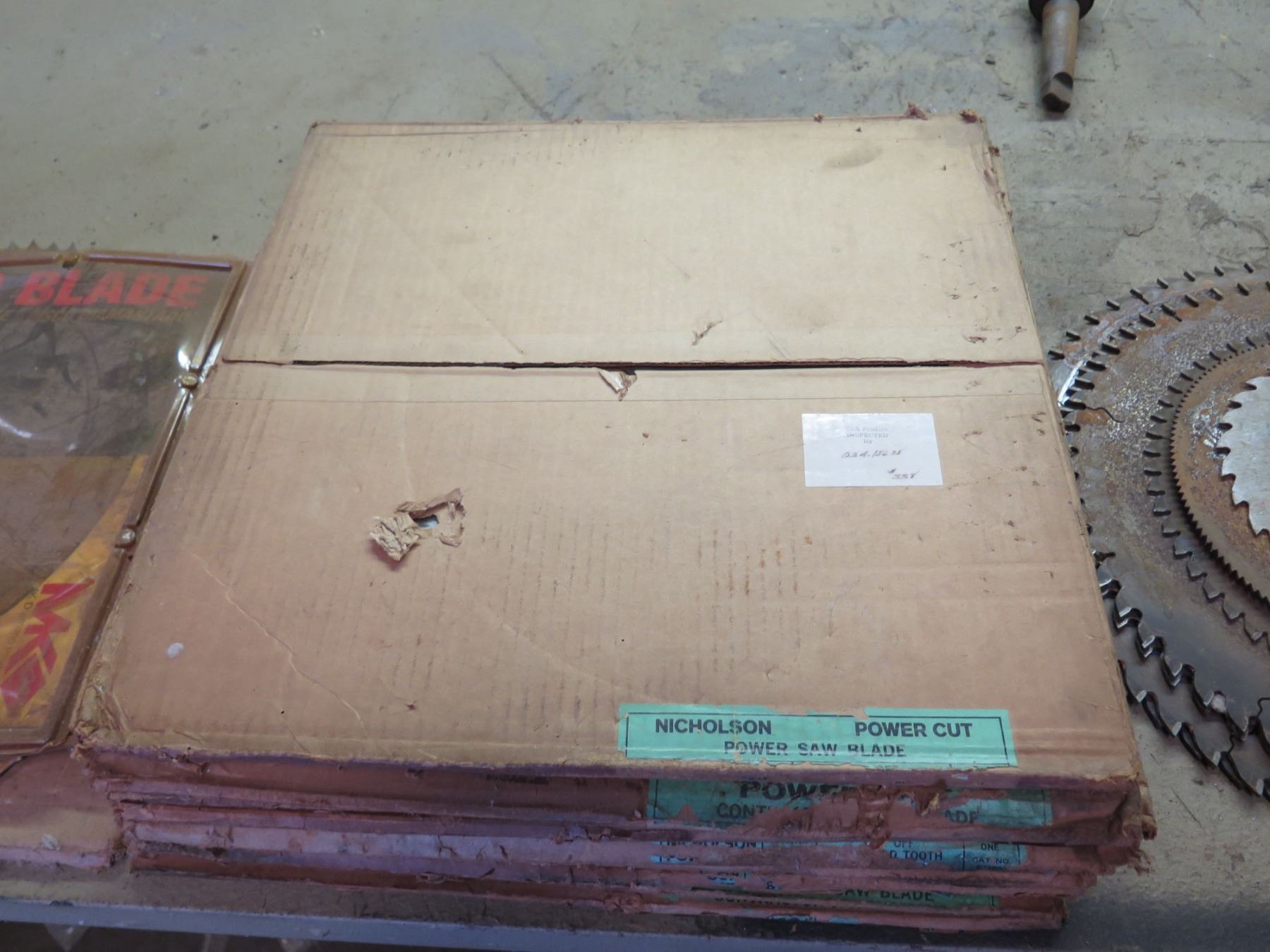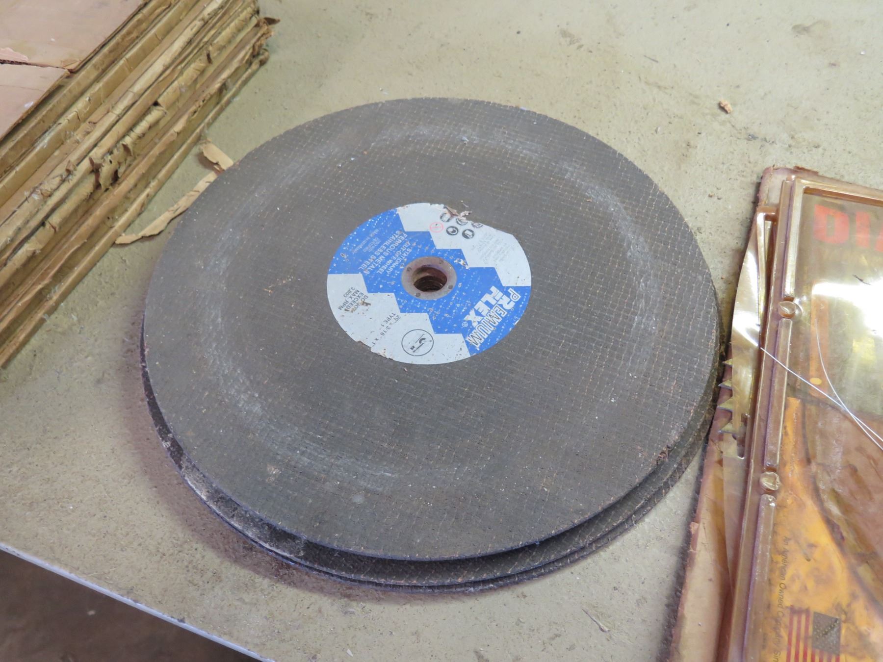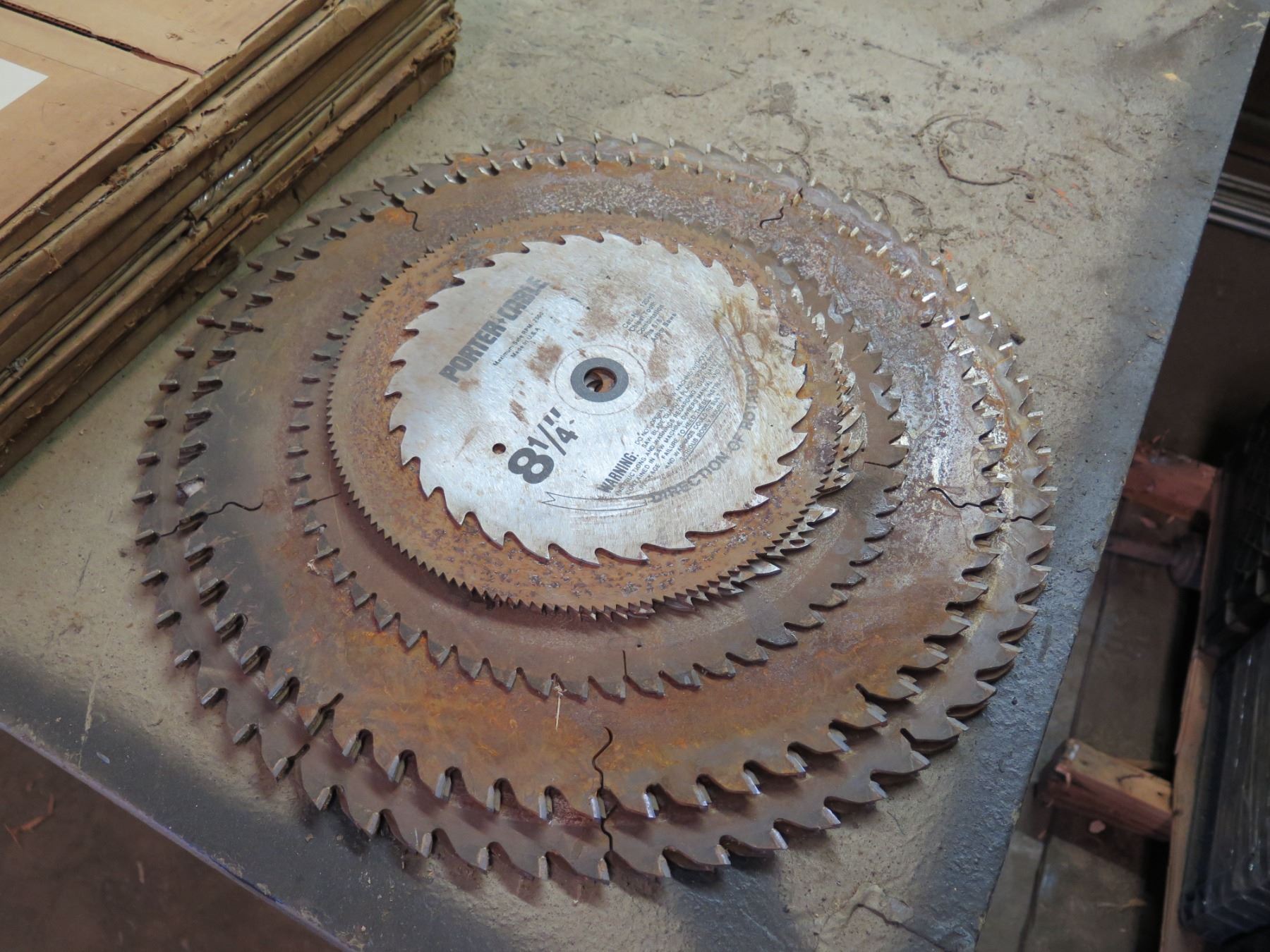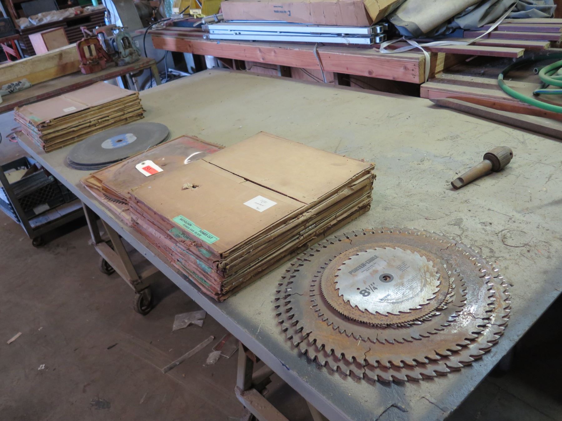 Rolling Table w/ Multiple Circular Saw Blades & Cutting Discs, Misc Sizes & Brands