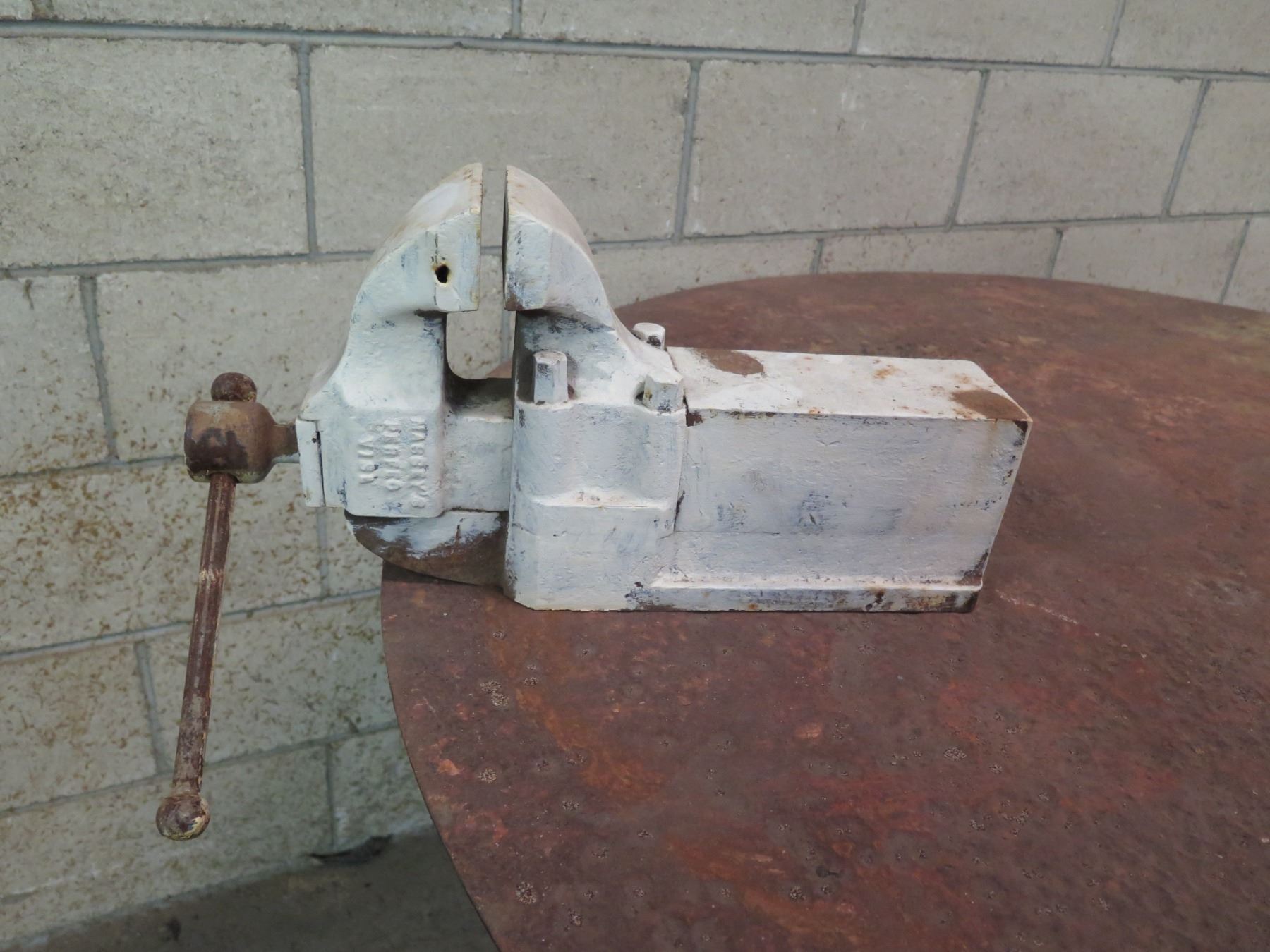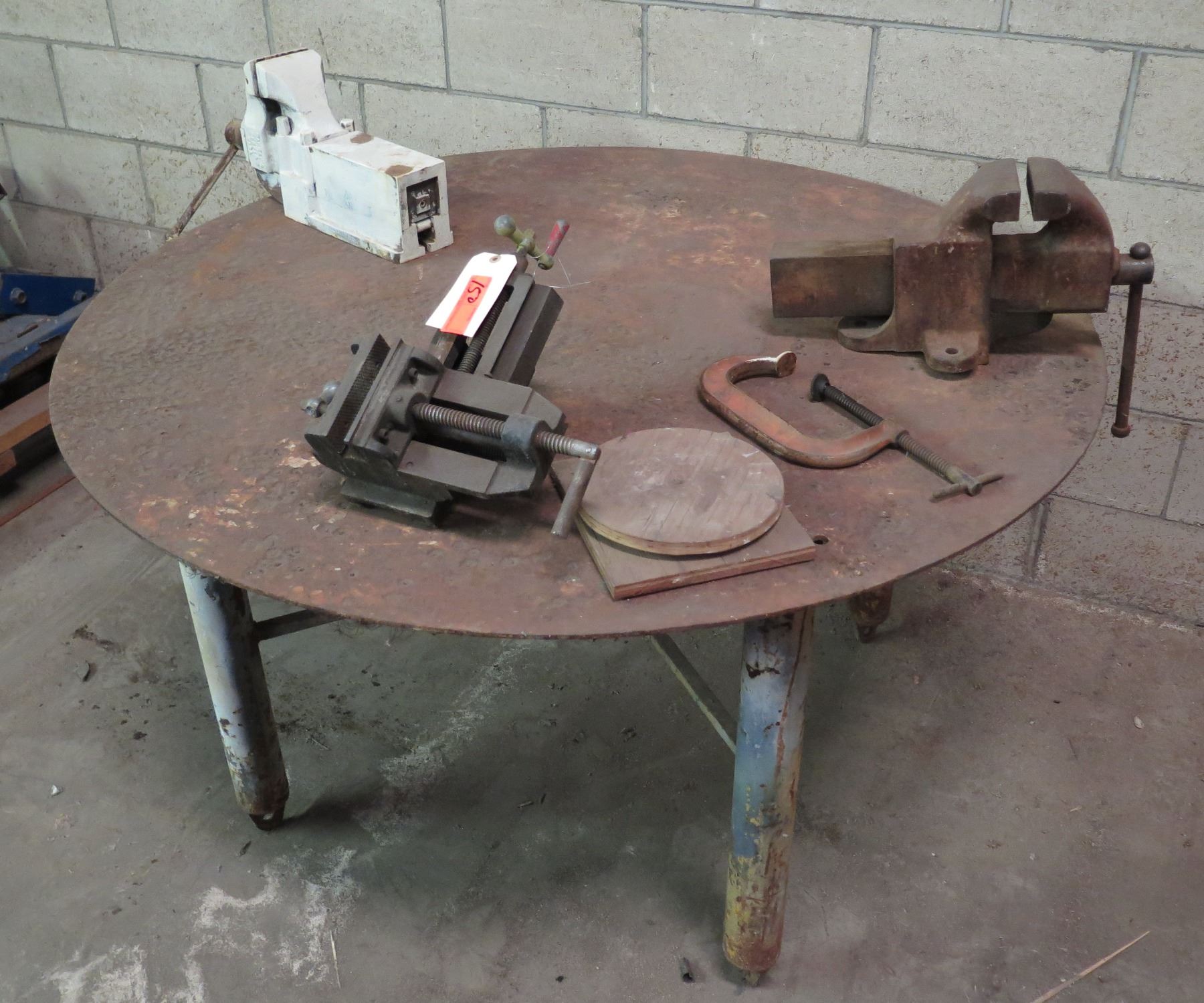 Round Metal Table 54"dia, 30"H, w/ Misc Clamps & Vises
