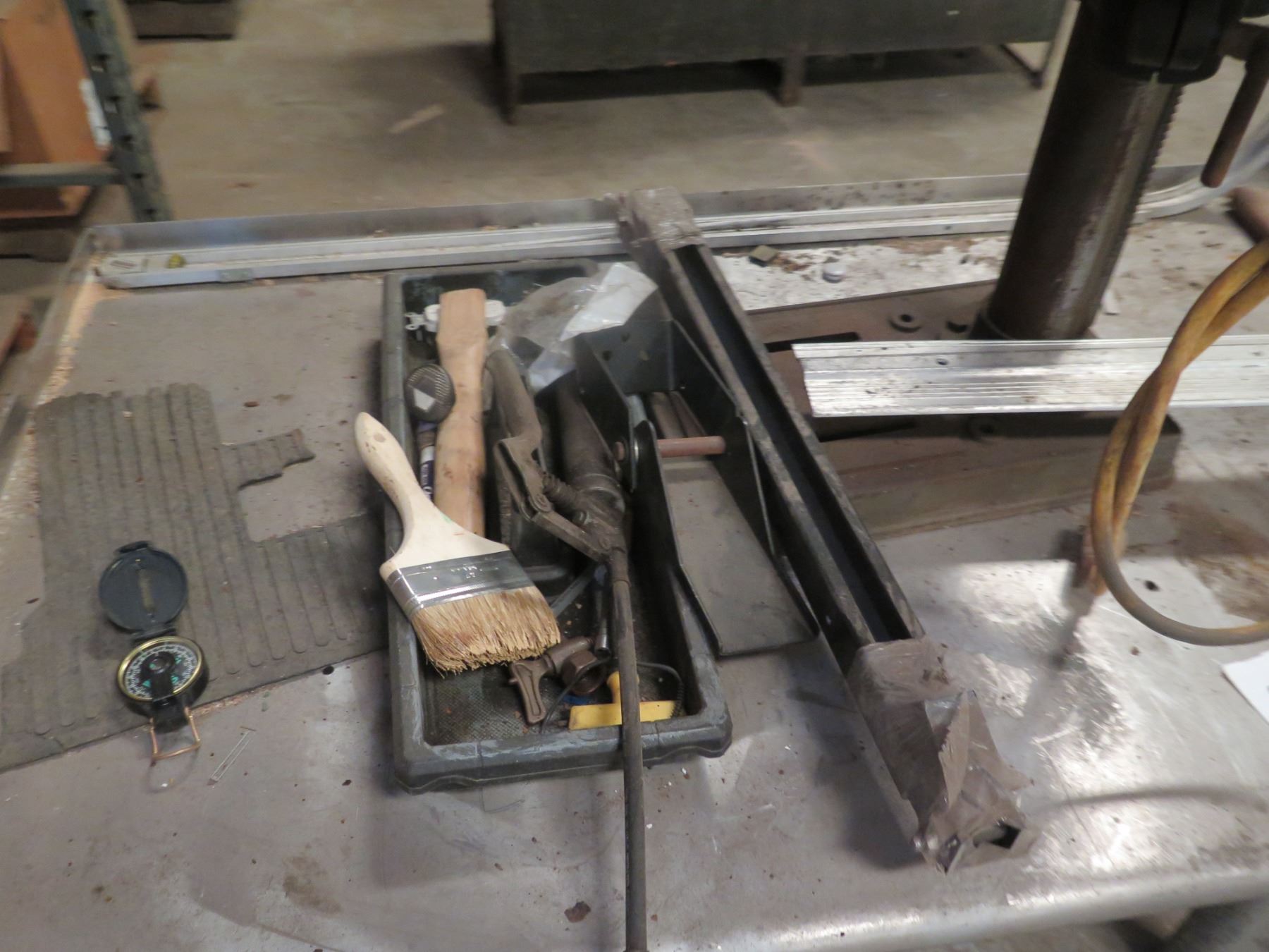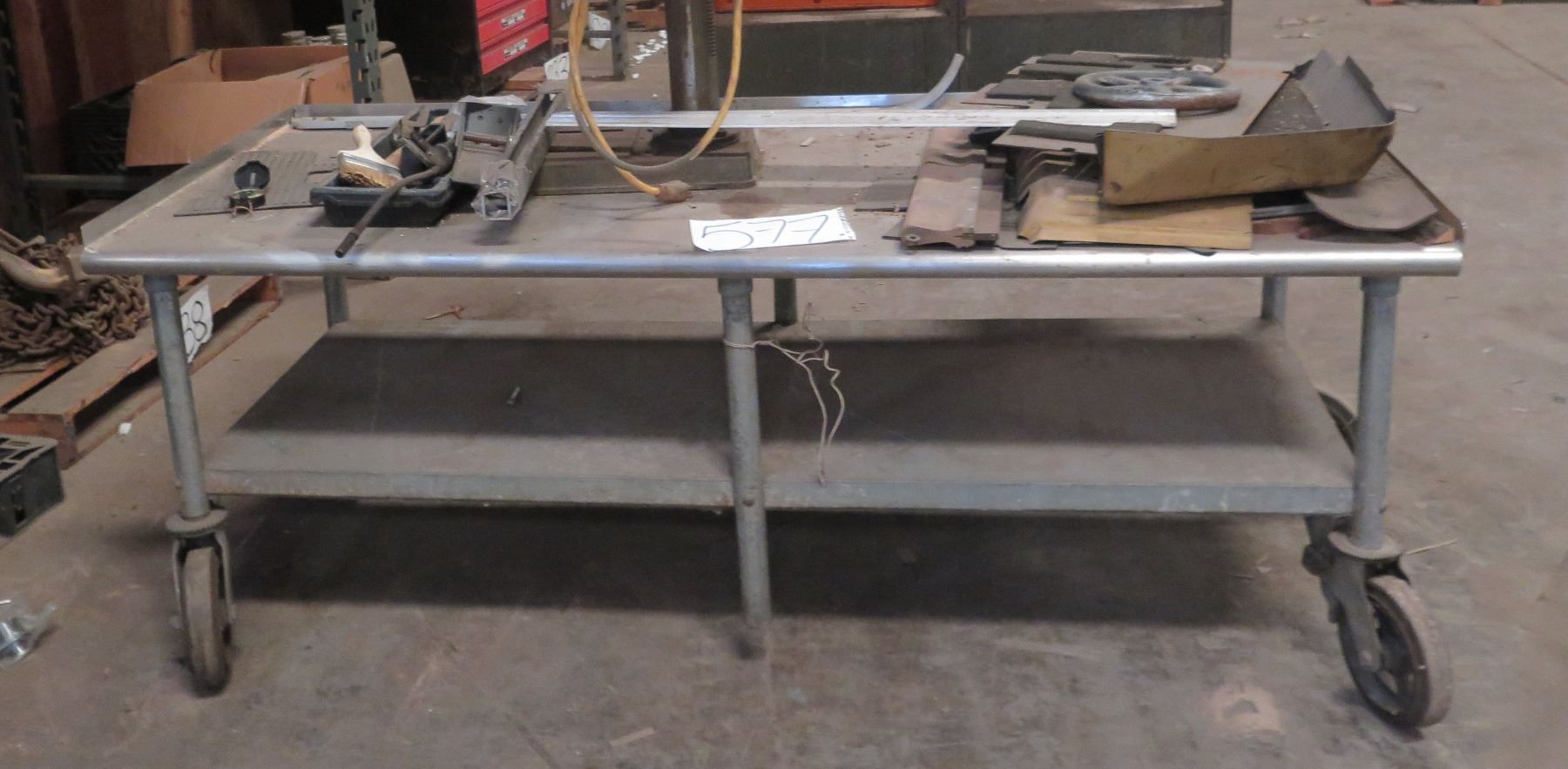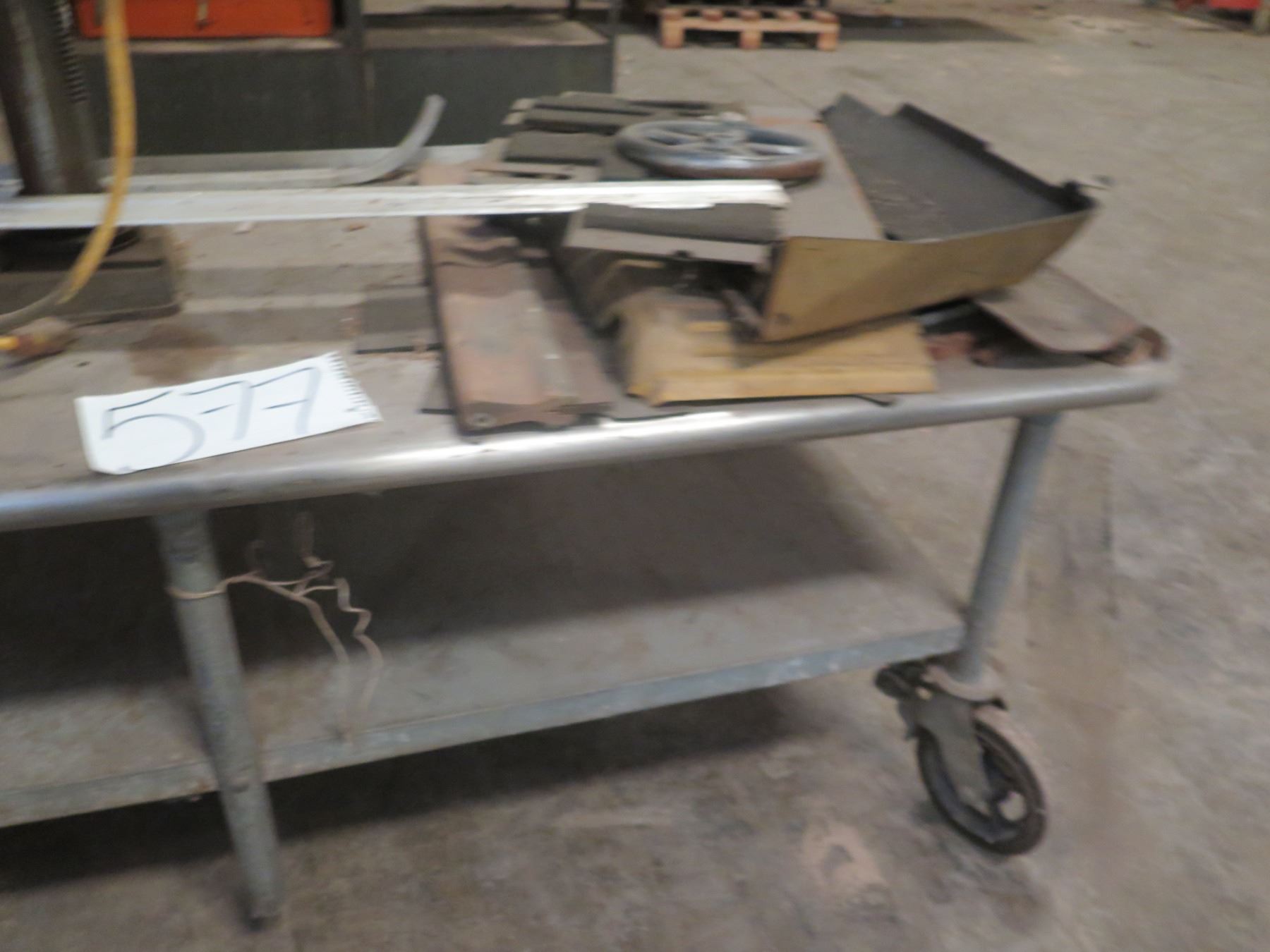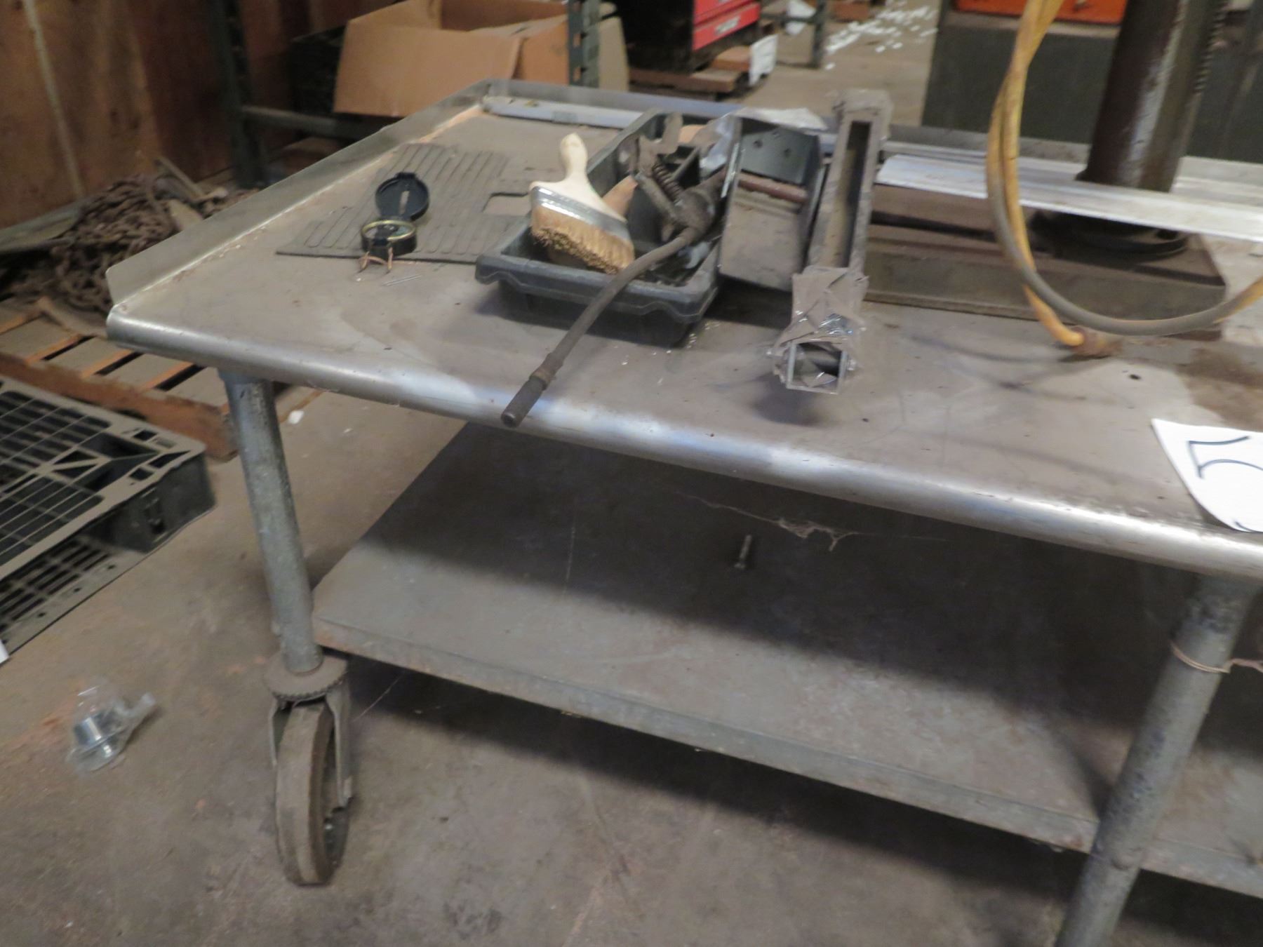 Metal Rolling Table w/ Undershelf & Contents: Press, Tools, etc