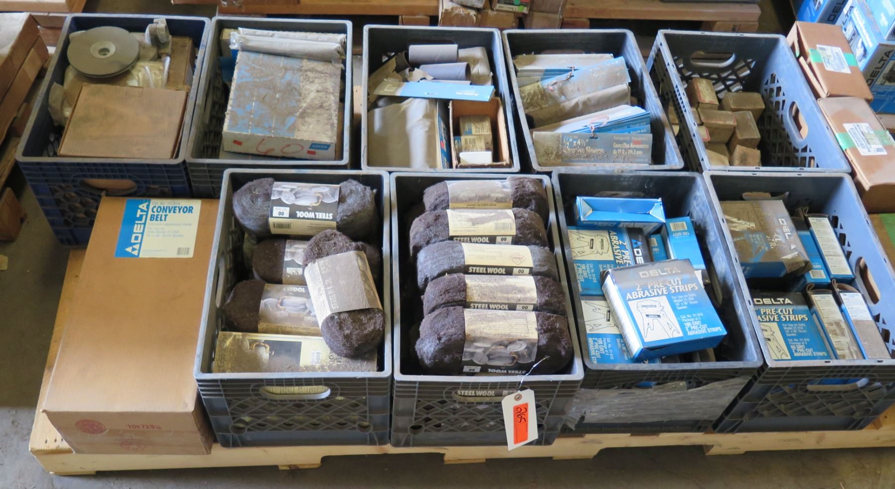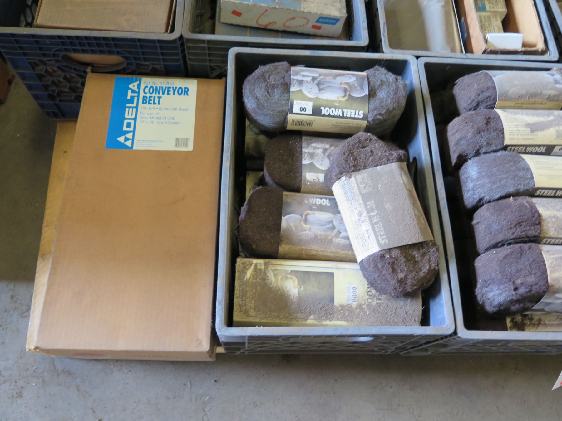 Contents of Pallet: Belts, Steel Wool, Discs, Hardware, etc
