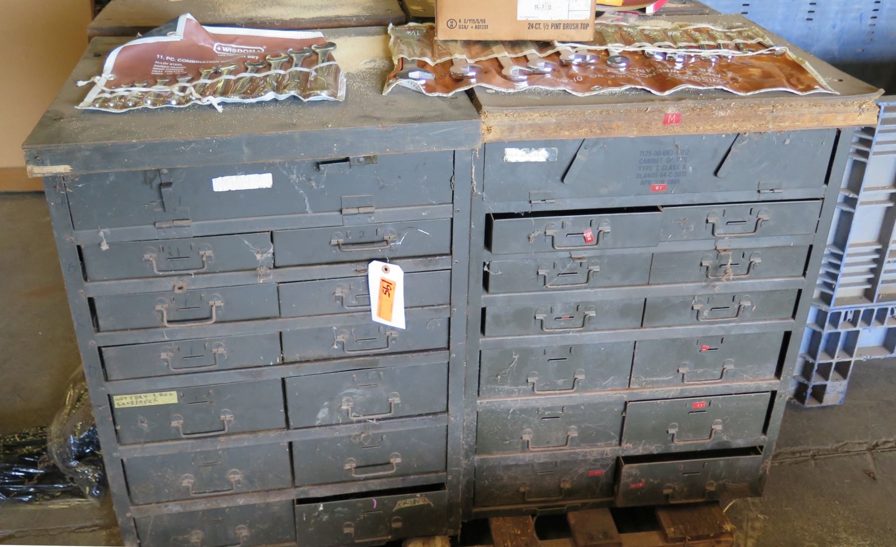 Qty 2 Multi-Drawer Cabinet Storage Units w/ Wrench Sets
