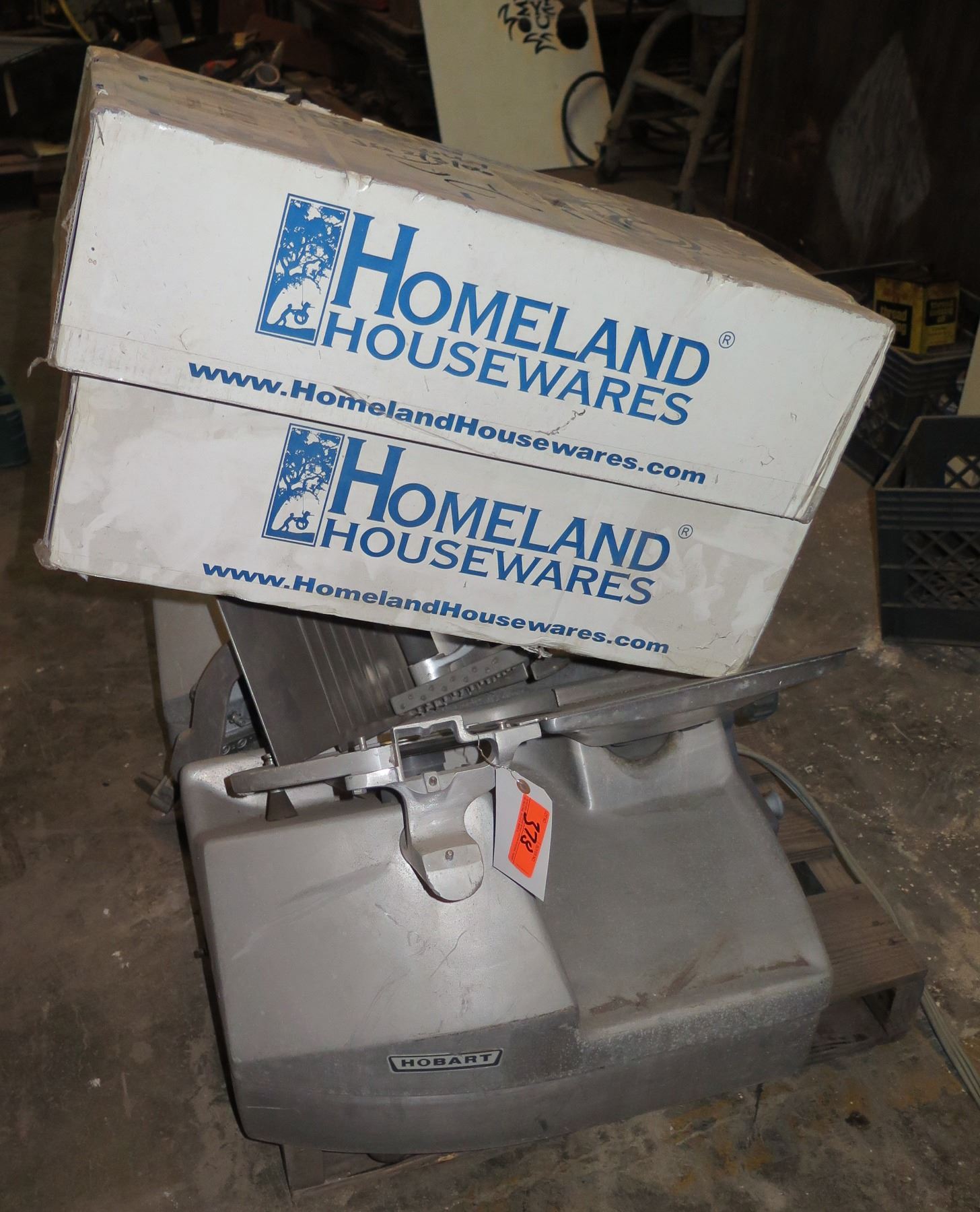 Contents of Pallet: 2 Hobart Slicers and "Homeland Housewares" Products