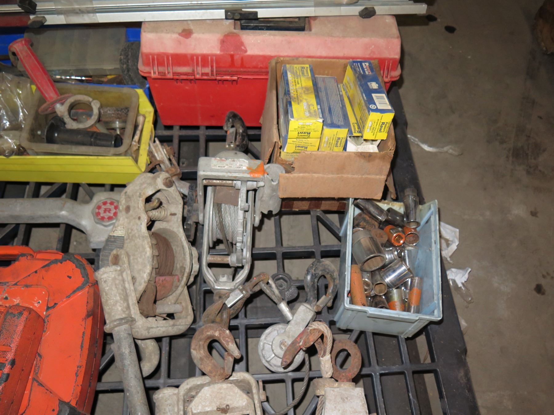 Contents of Pallet: Hand Tools, Hooks & Pulleys, Hardware, etc