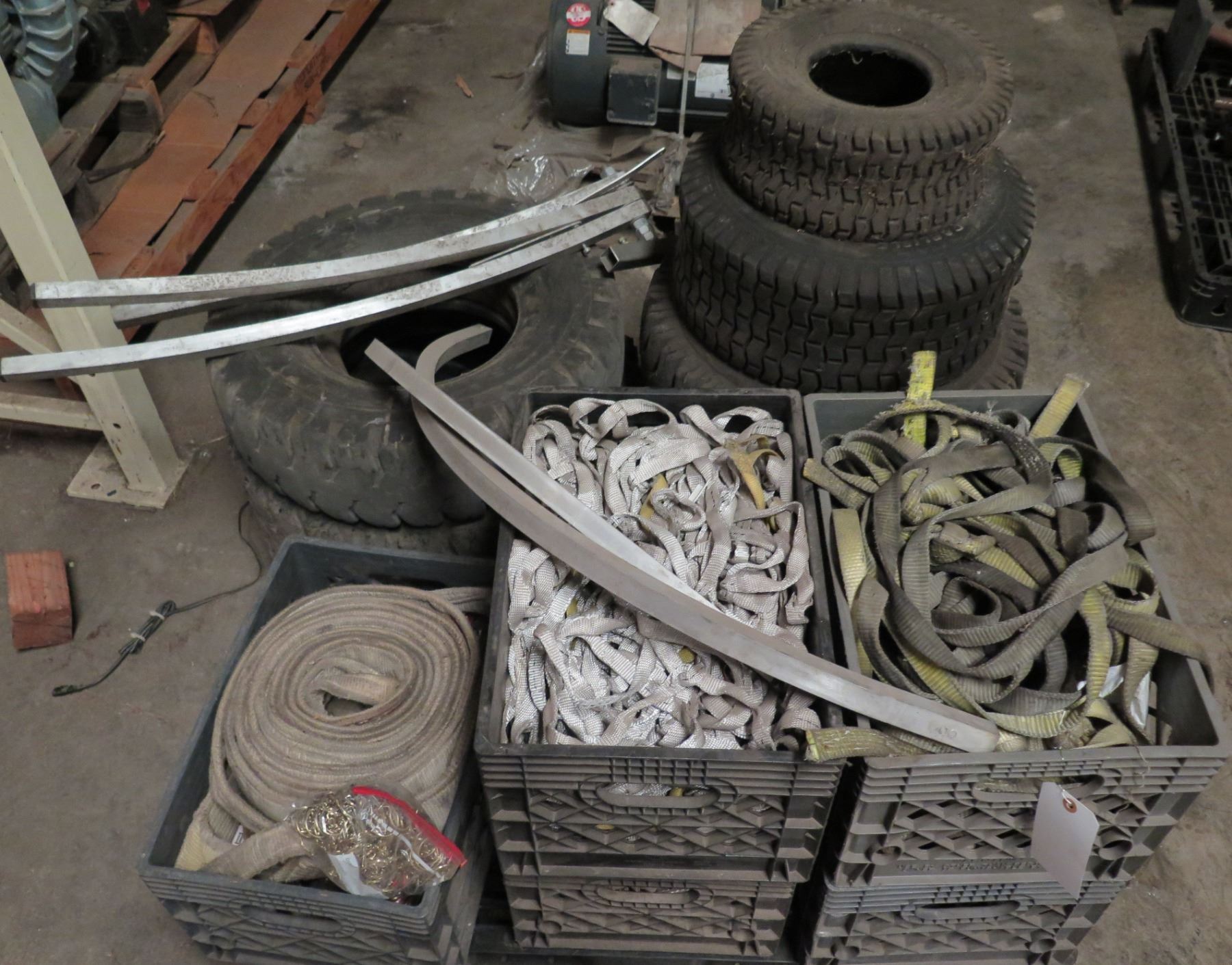 Contents of Pallet: Hose, Straps, Fittings & Tires, Misc Sizes