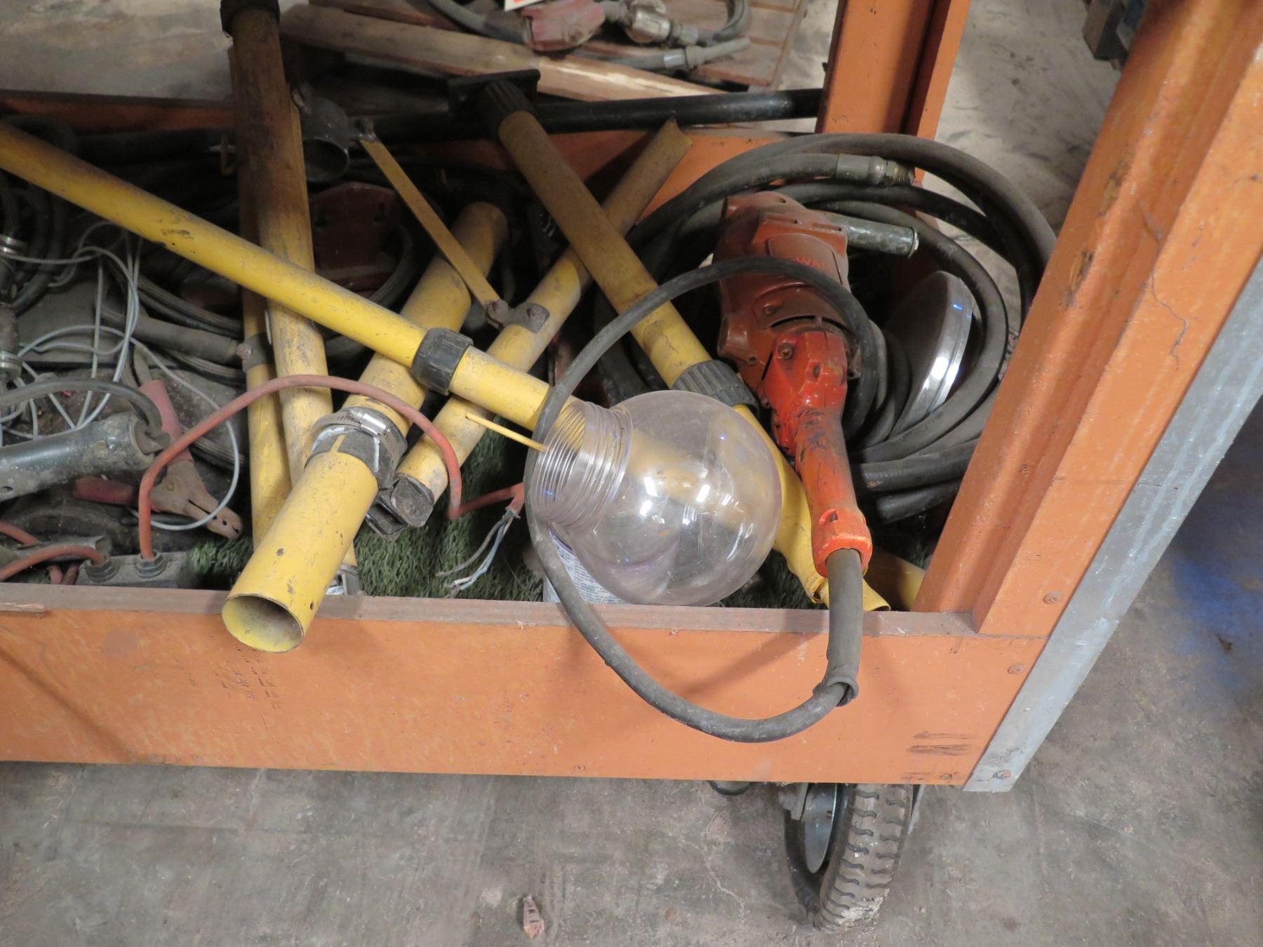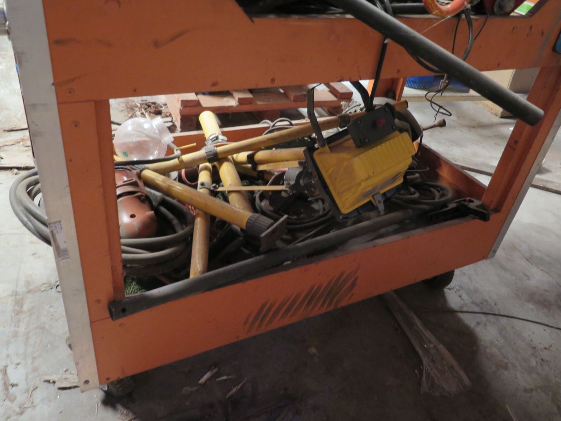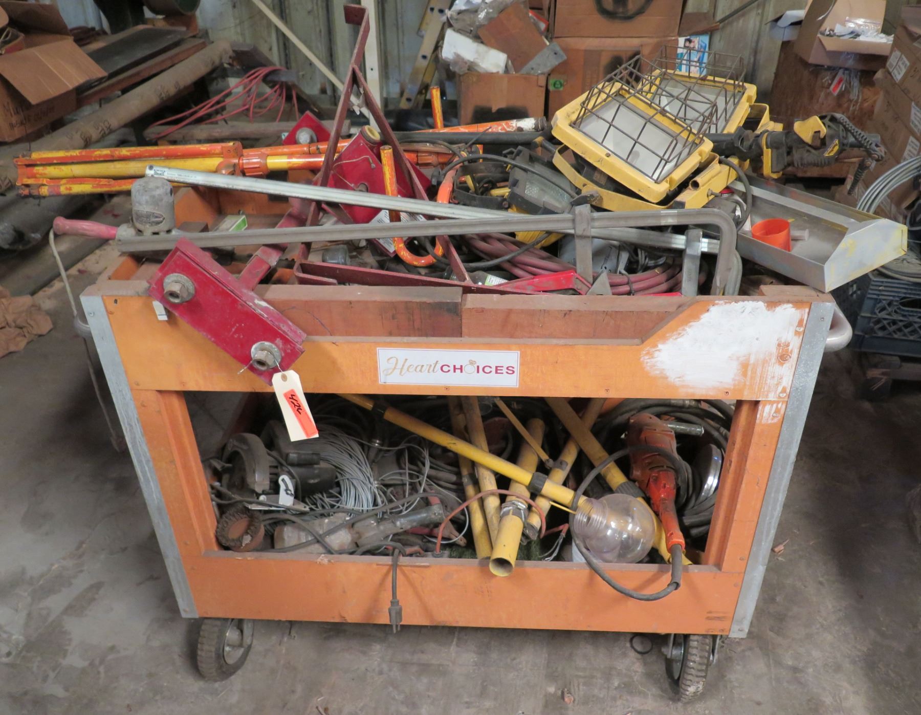 Rolling Cart & Contents: Lights, Stands, Cords, etc