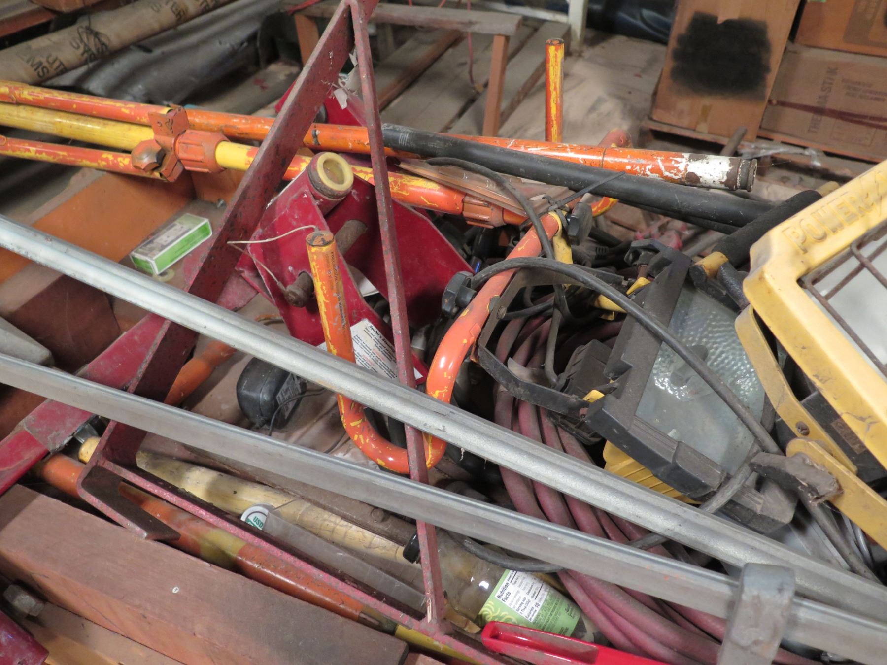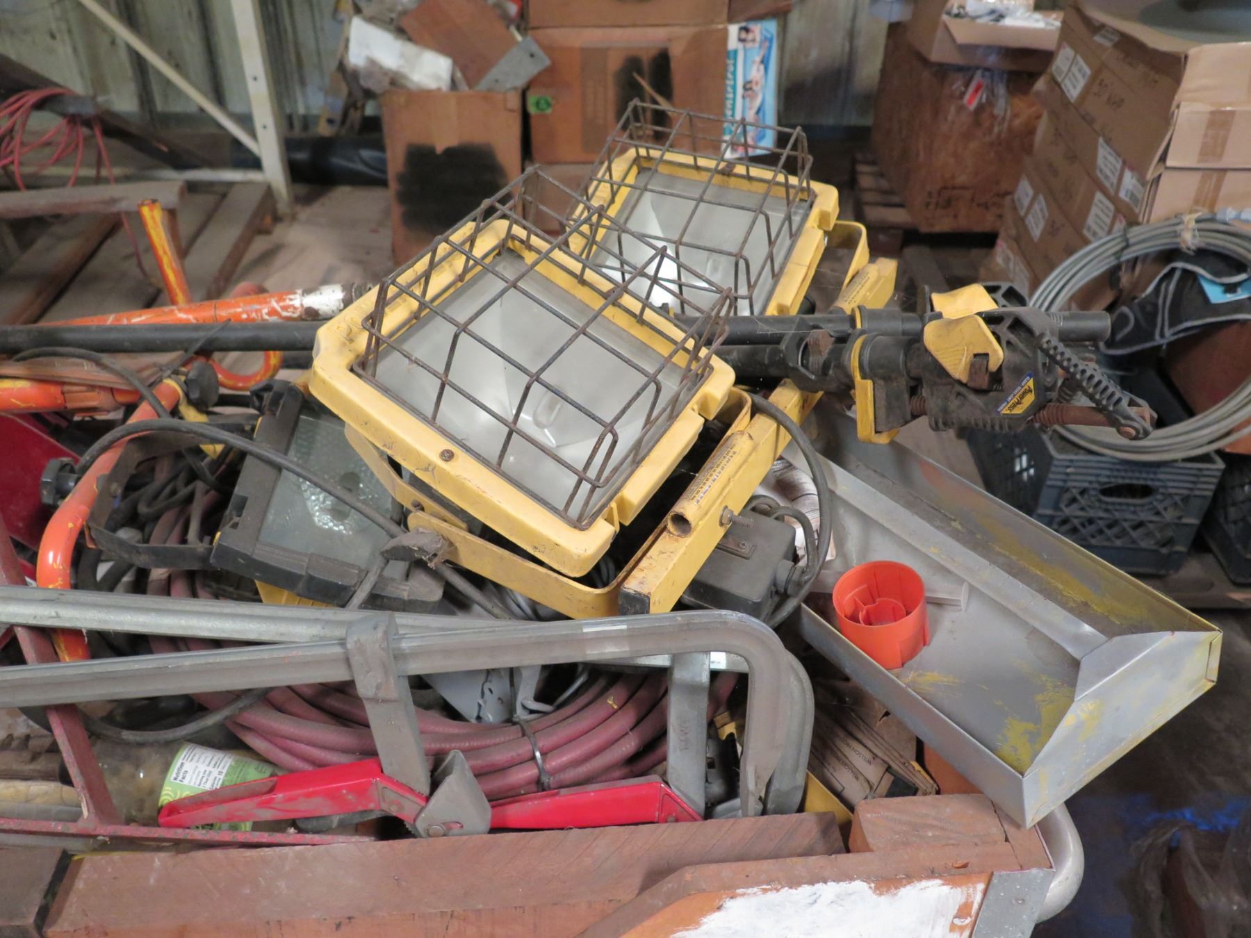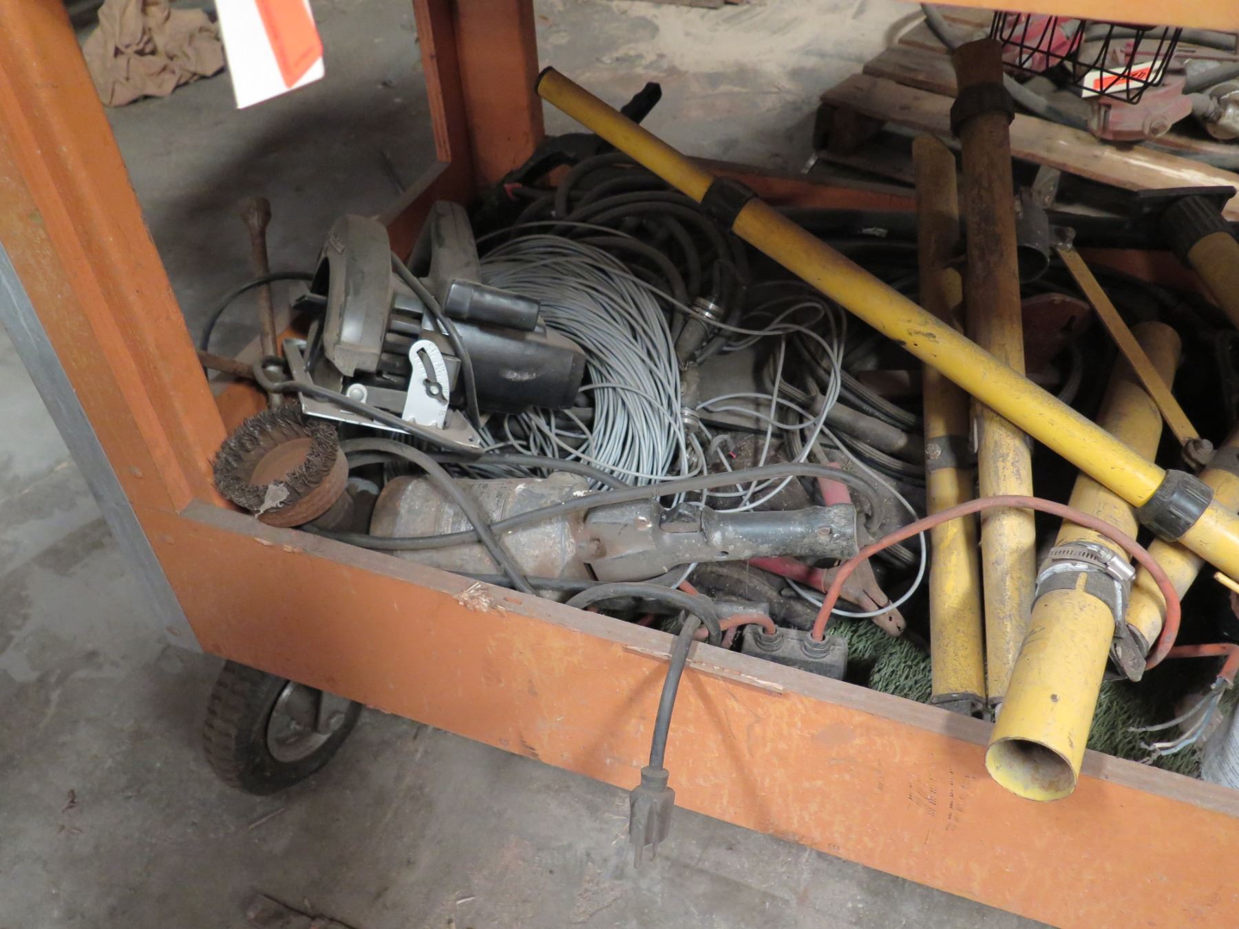 Rolling Cart & Contents: Lights, Stands, Cords, etc