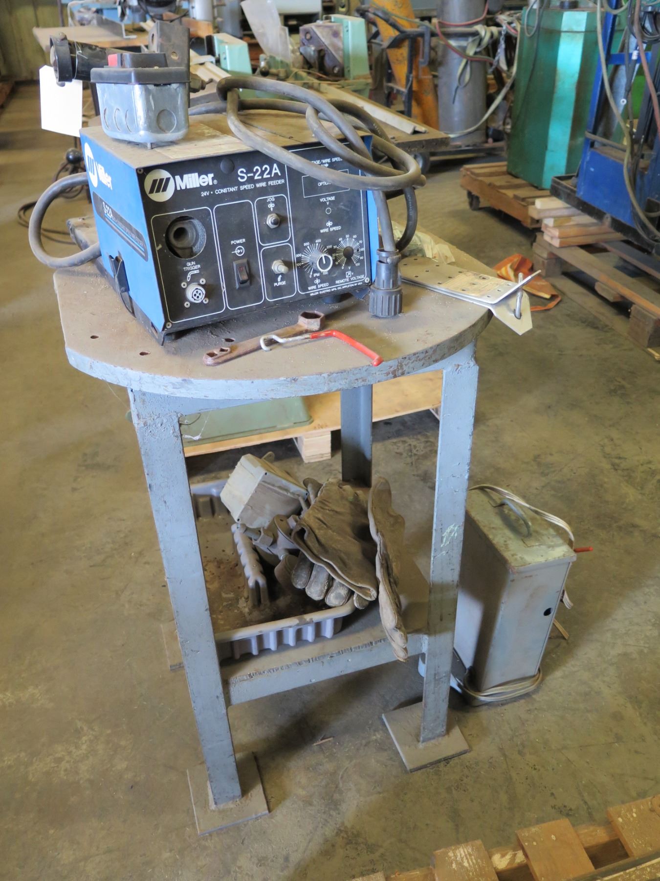 Miller S-22A Constant Speed Wire Feeder w/ WC-1 Weld Control on Stand