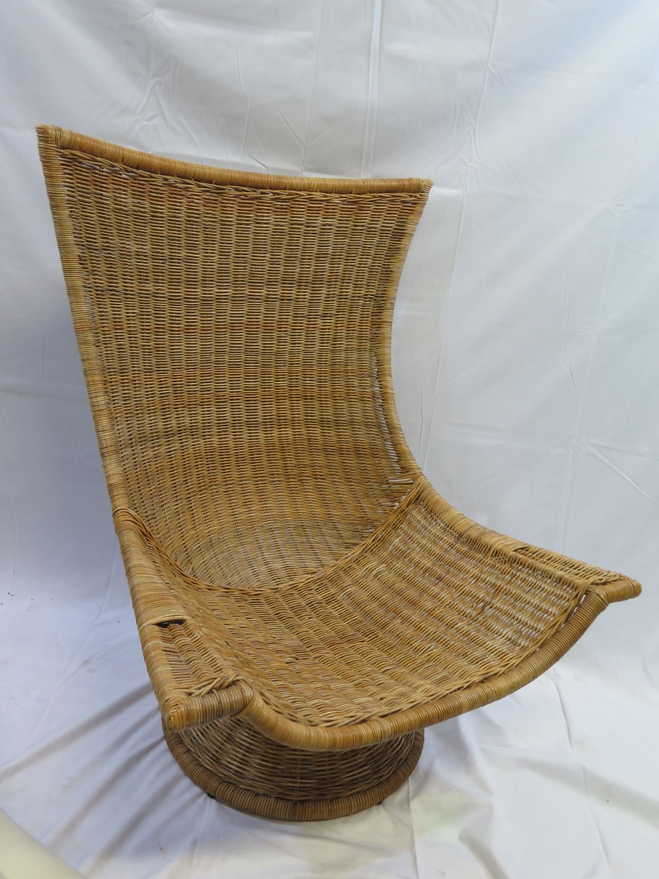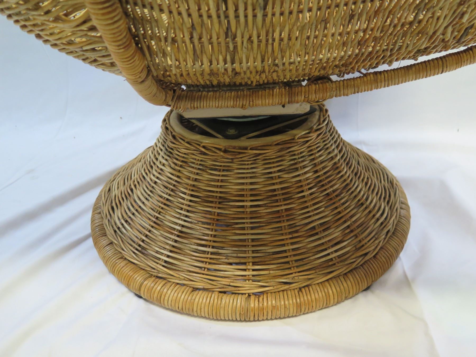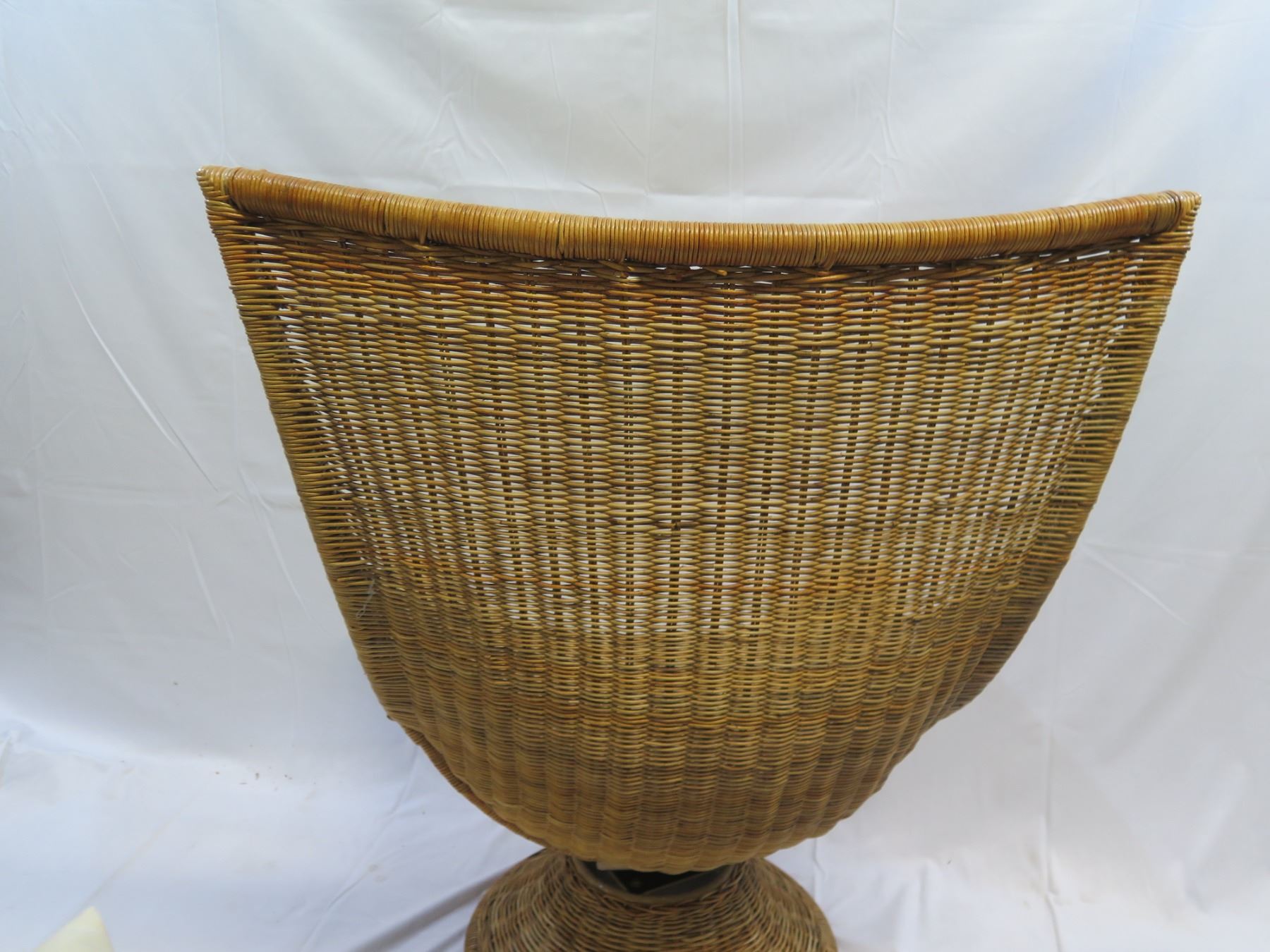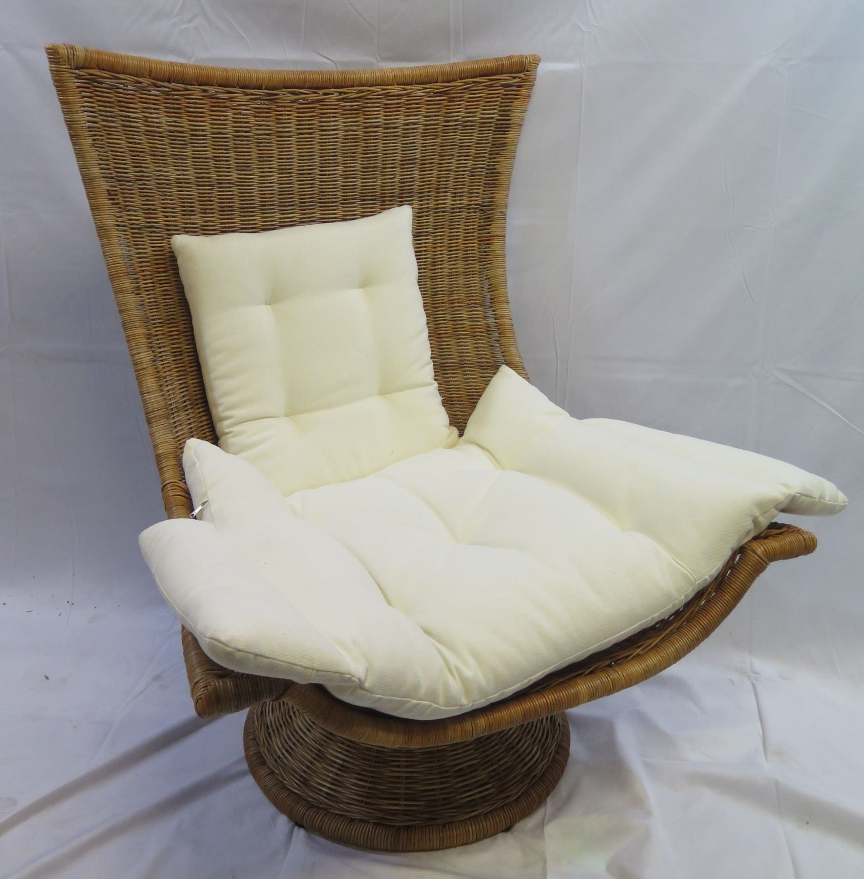 SELAMAT Healdsburg Wicker Swivel Chair w/ Pedestal Base & Throw Cushions 34"x26"x44"H (Retail $1995)