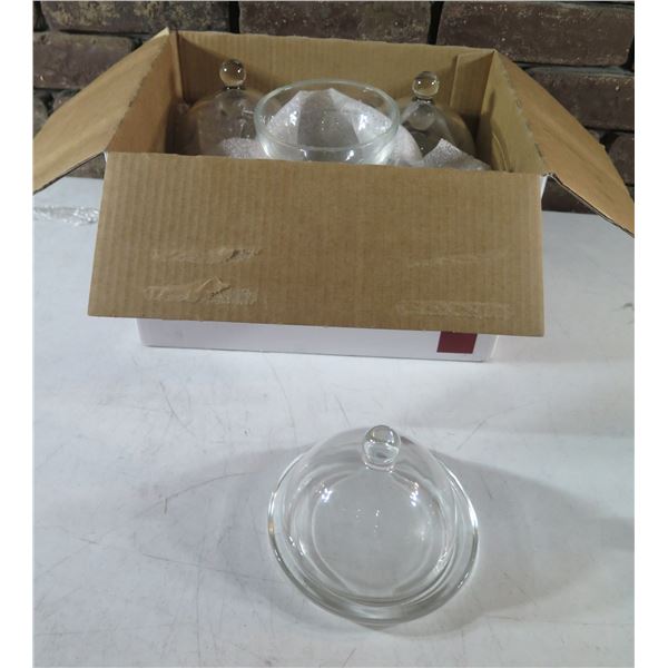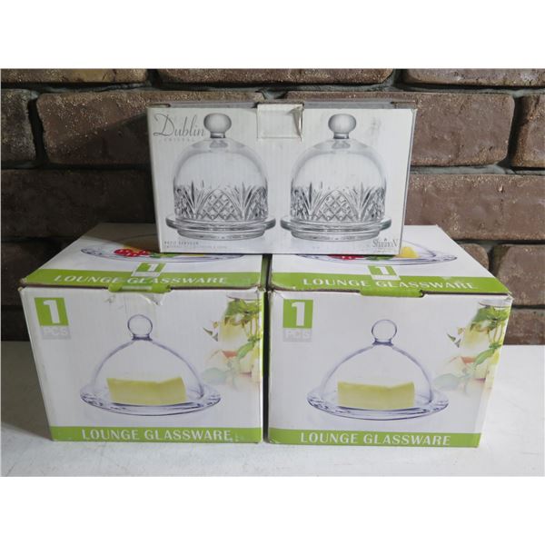 Qty 4 Lounge Glassware & Dublin Crystal Petite Server Domed Butter Dishes, Misc Sizes